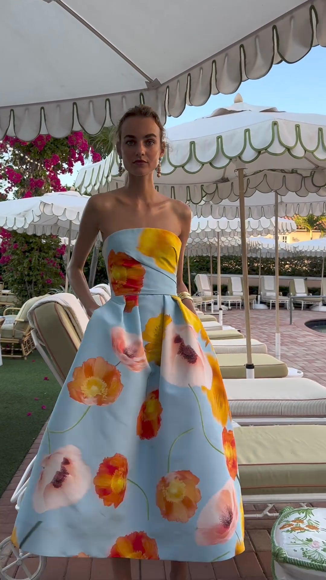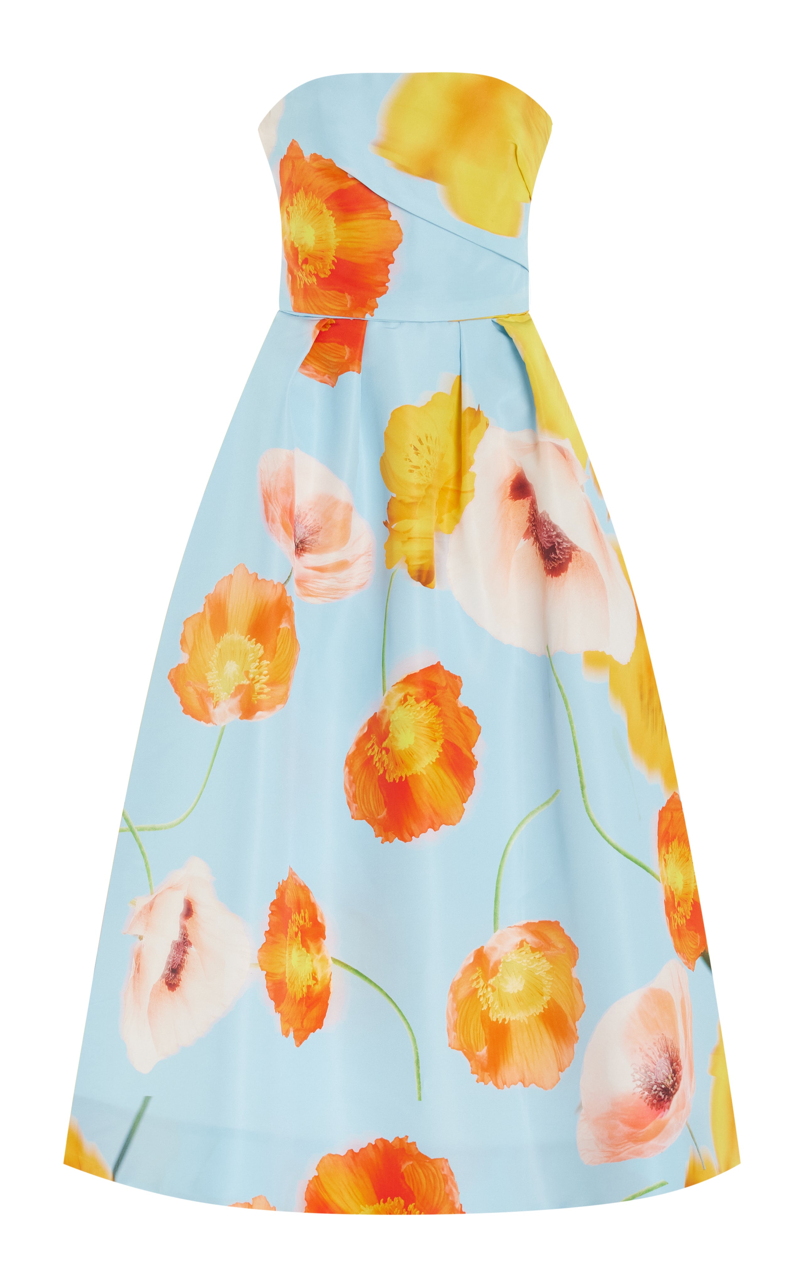 • Strapless bodice, A-line hem