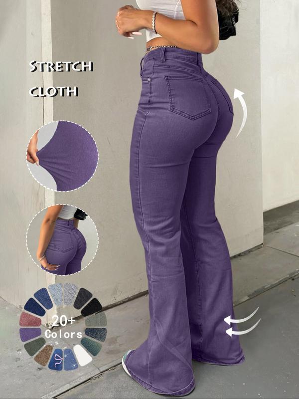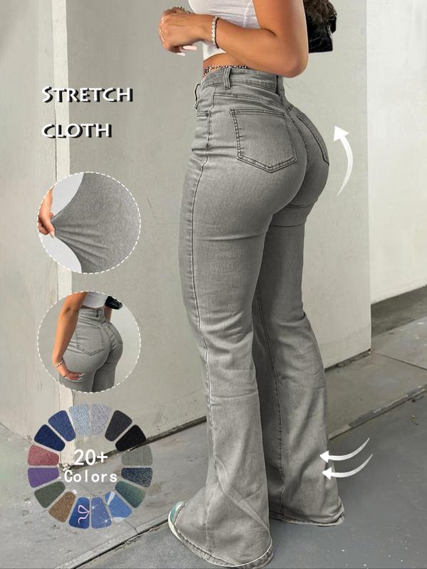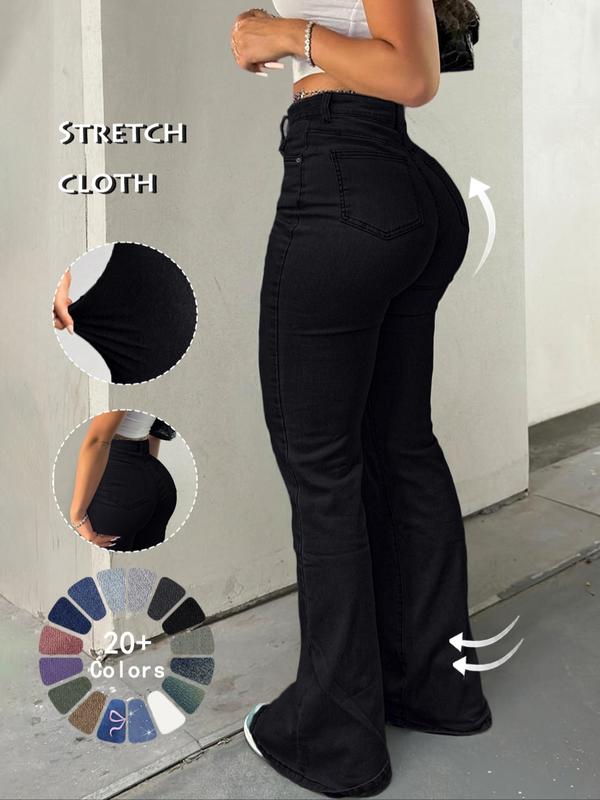 • Women's High Waist Flare Leg Jeans, Casual Button Fly Pocket Design Bell Bottom Denim, Women's Bottoms for Daily Wear, Kardashian Style, 000 Jeans, Fashionable And Versatile Women's Jeans, Suitable For Spring, Summer, Autumn And Winter, Tchic