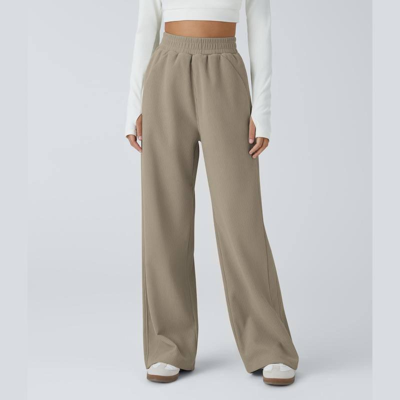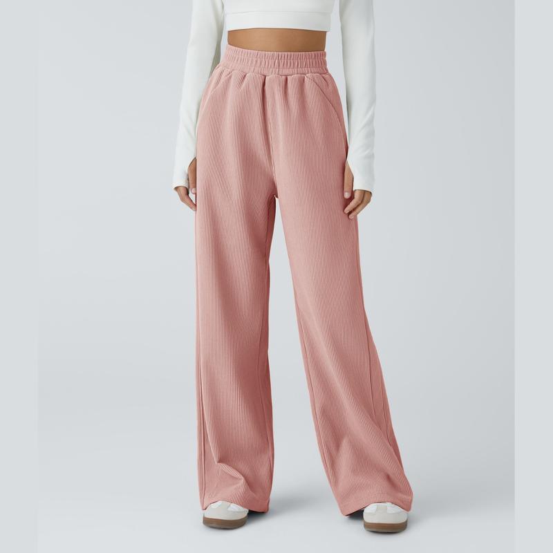 High Waisted Side Pocket Straight Leg Mop Corduroy Casual Pants