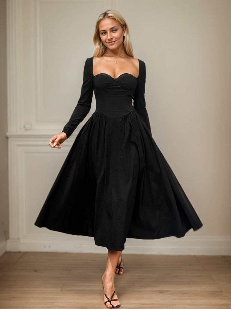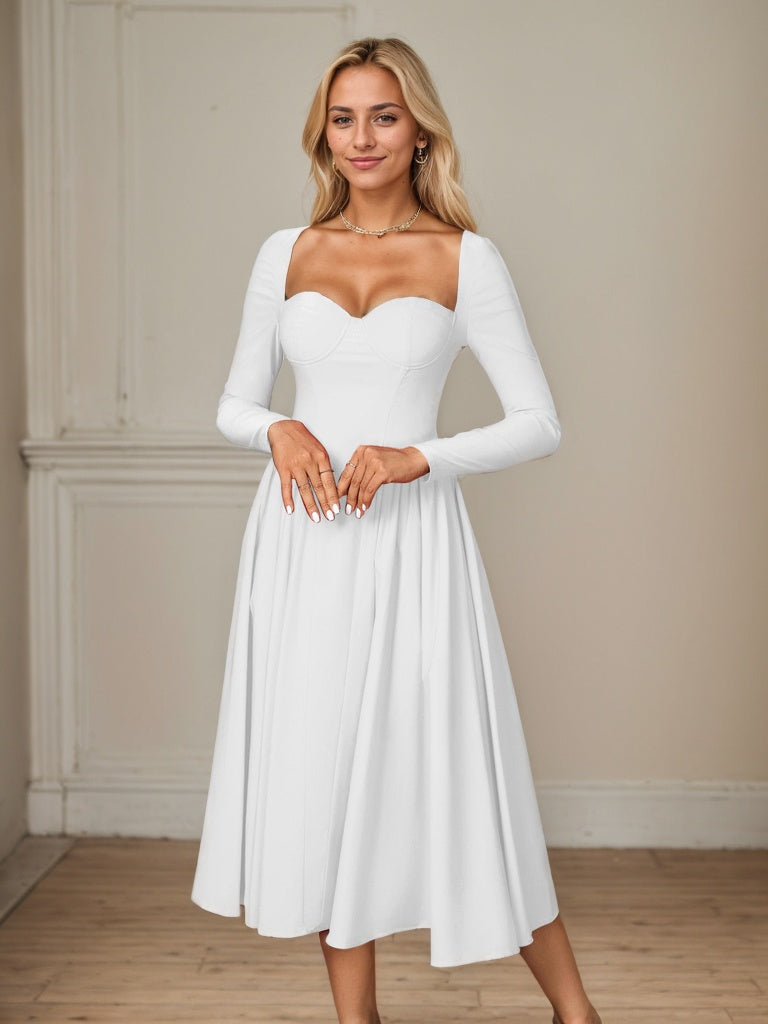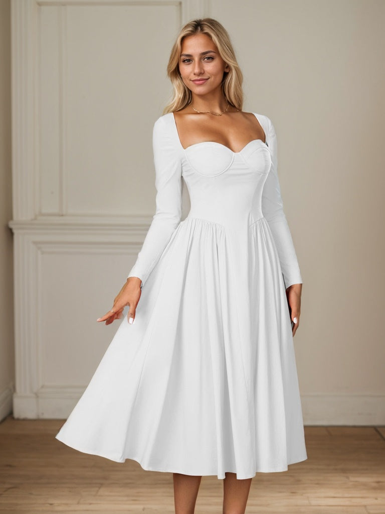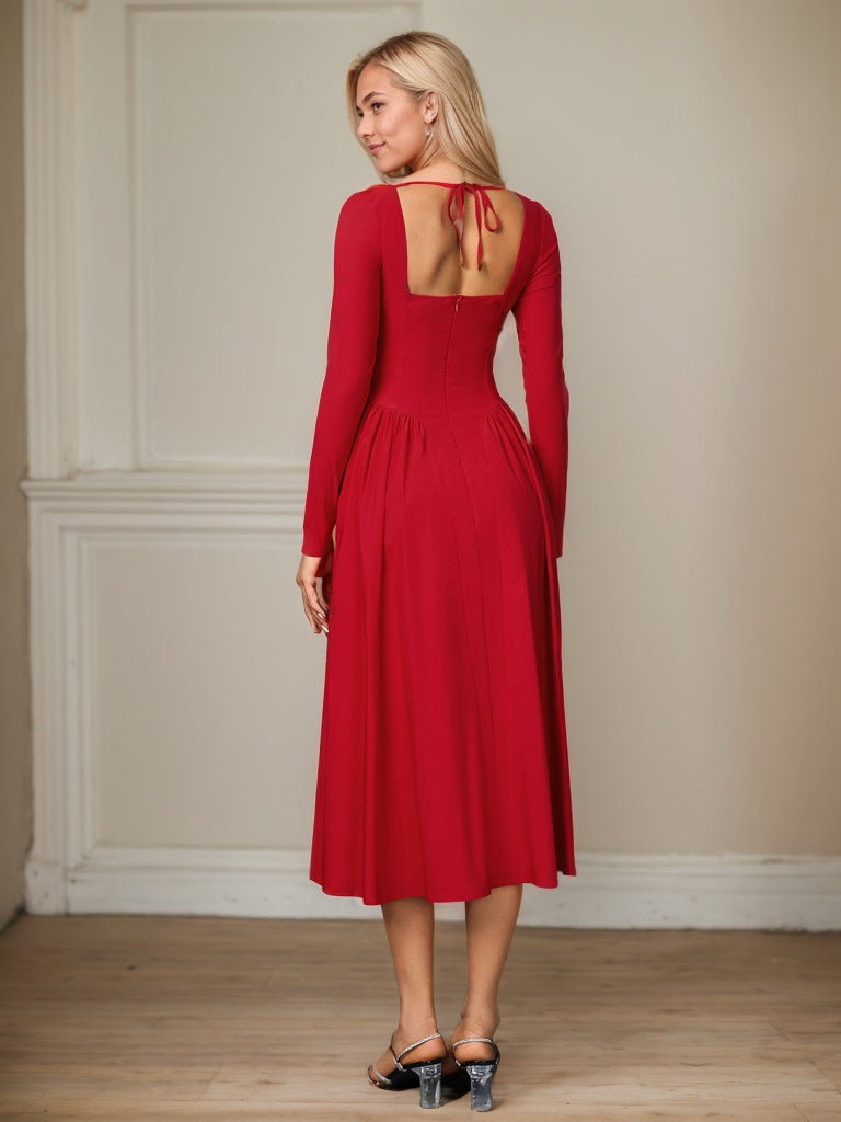 Long Sleeve Tie Back A-Line Midi Dress