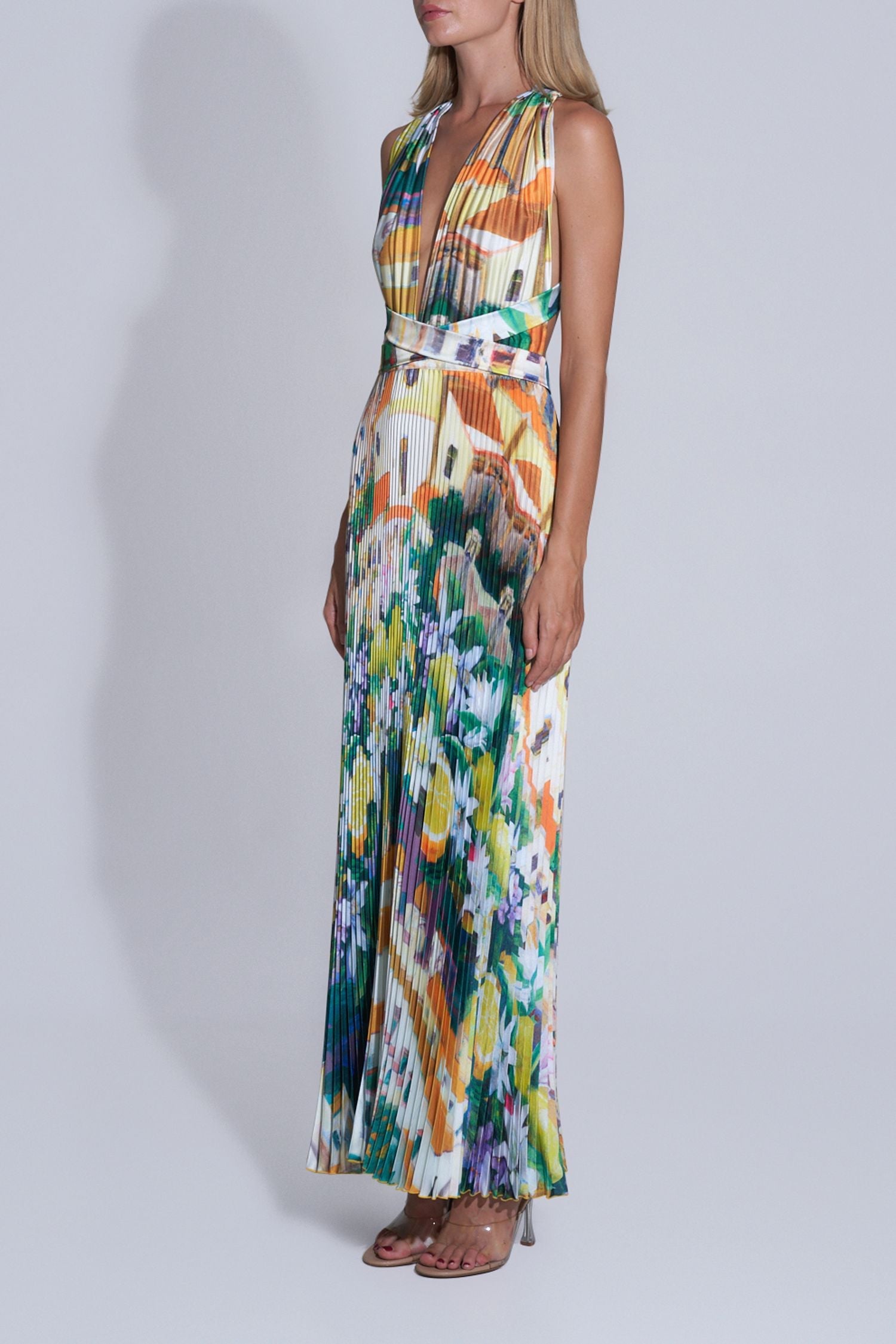 The�Moderniste�Gown�-�A contemporary silhouette�that�favours luxurious details.�Featuring�a plunging neckline and exquisite cross over back that�wraps around waistline.�This gown is sure to lend you an air of opulence.