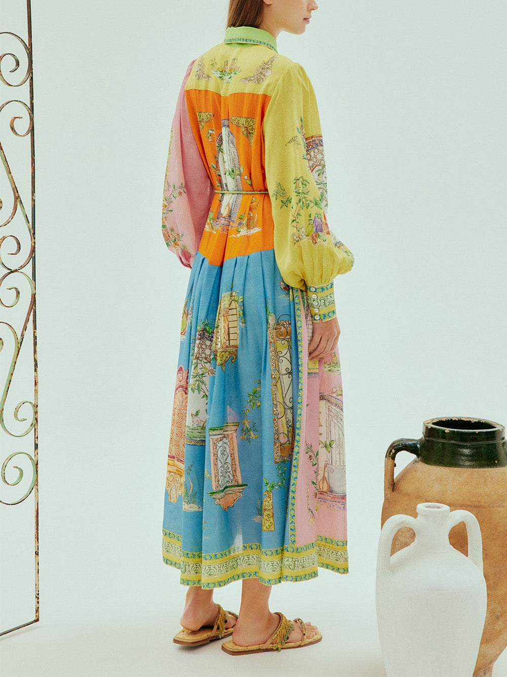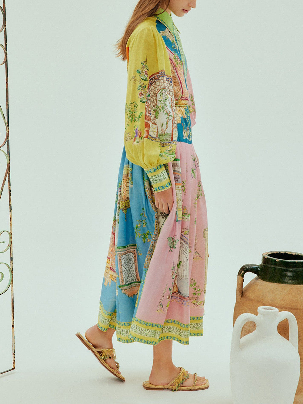 We present our sophisticated Monte Garden Print Button-Down Shirtdress, crafted from premium fabrics and finished with a stand-up collar and waistband for added sophistication.
