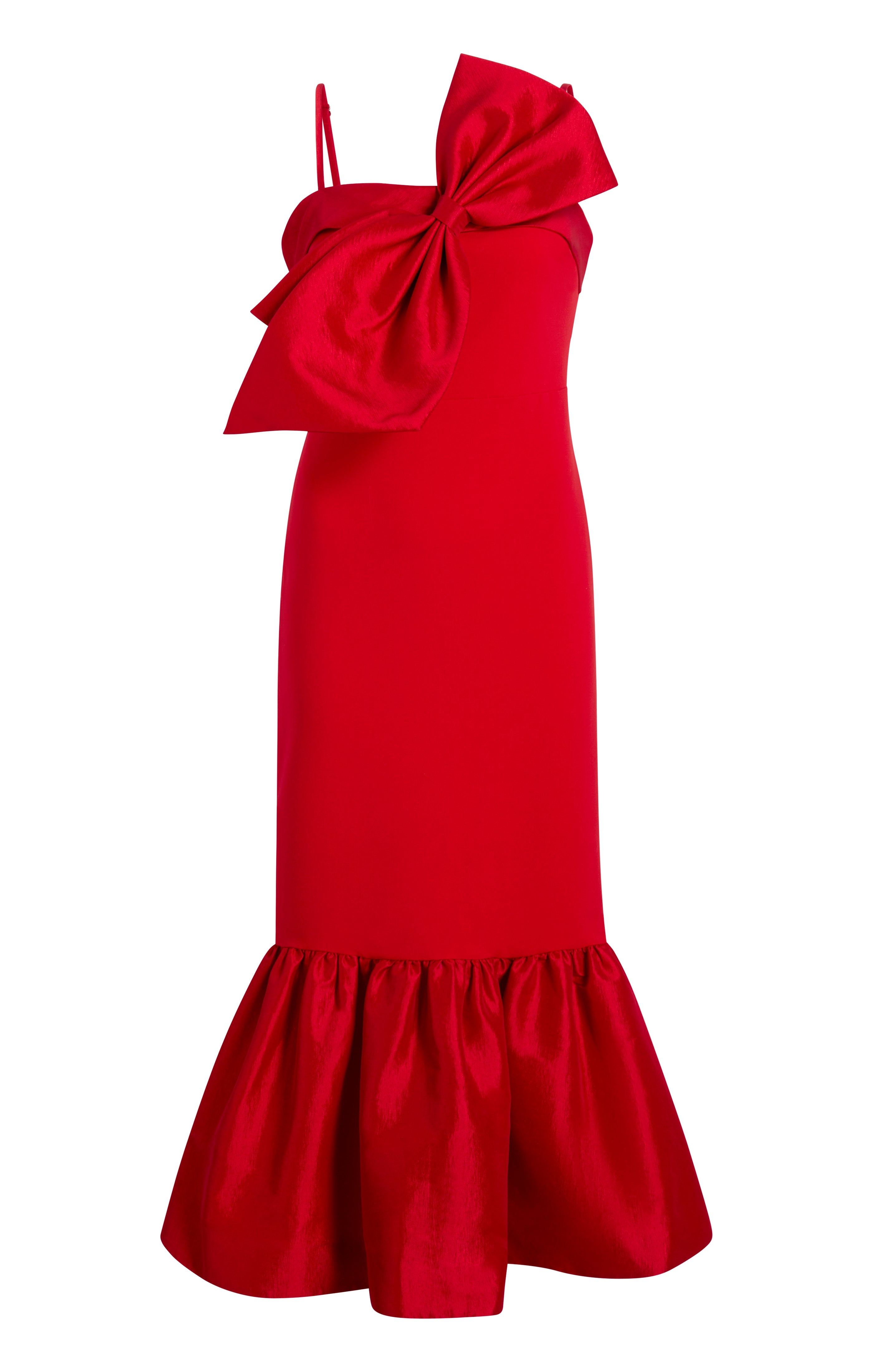 Indulge in effortless elegance with our Red Bow Midi Dress! Featuring a midi length and flattering trumpet silhouette, this dress will elevate any occasion. The delicate bow detail at the neckline adds a touch of charm, while the adjustable cami straps ensure a perfect fit. Made with our favorite stretch material, comfort and style are guaranteed. Dare to impress with this must-have dress!