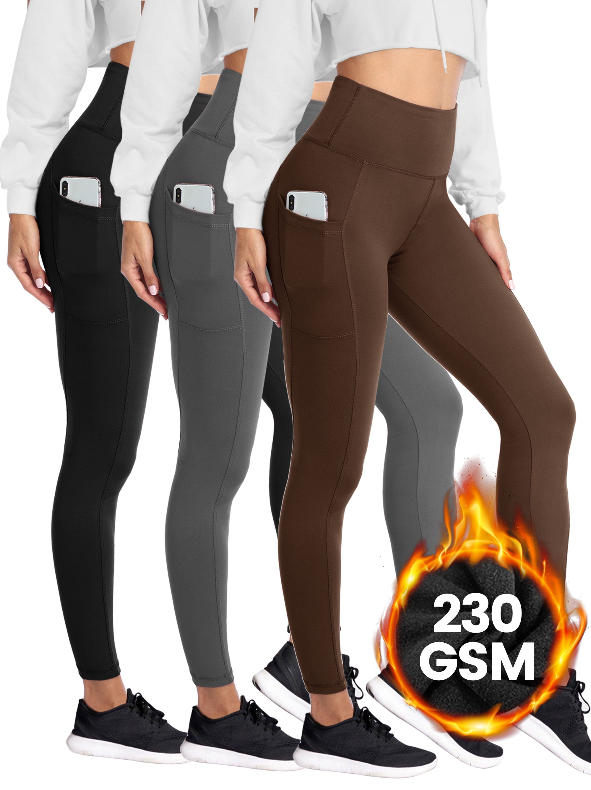 • SHOWITTY 1/3 Pack Fleece Lined Leggings with Pockets for Women - Plus Size High Waist Tummy Control Soft Women's Yoga Pants for Workout Running