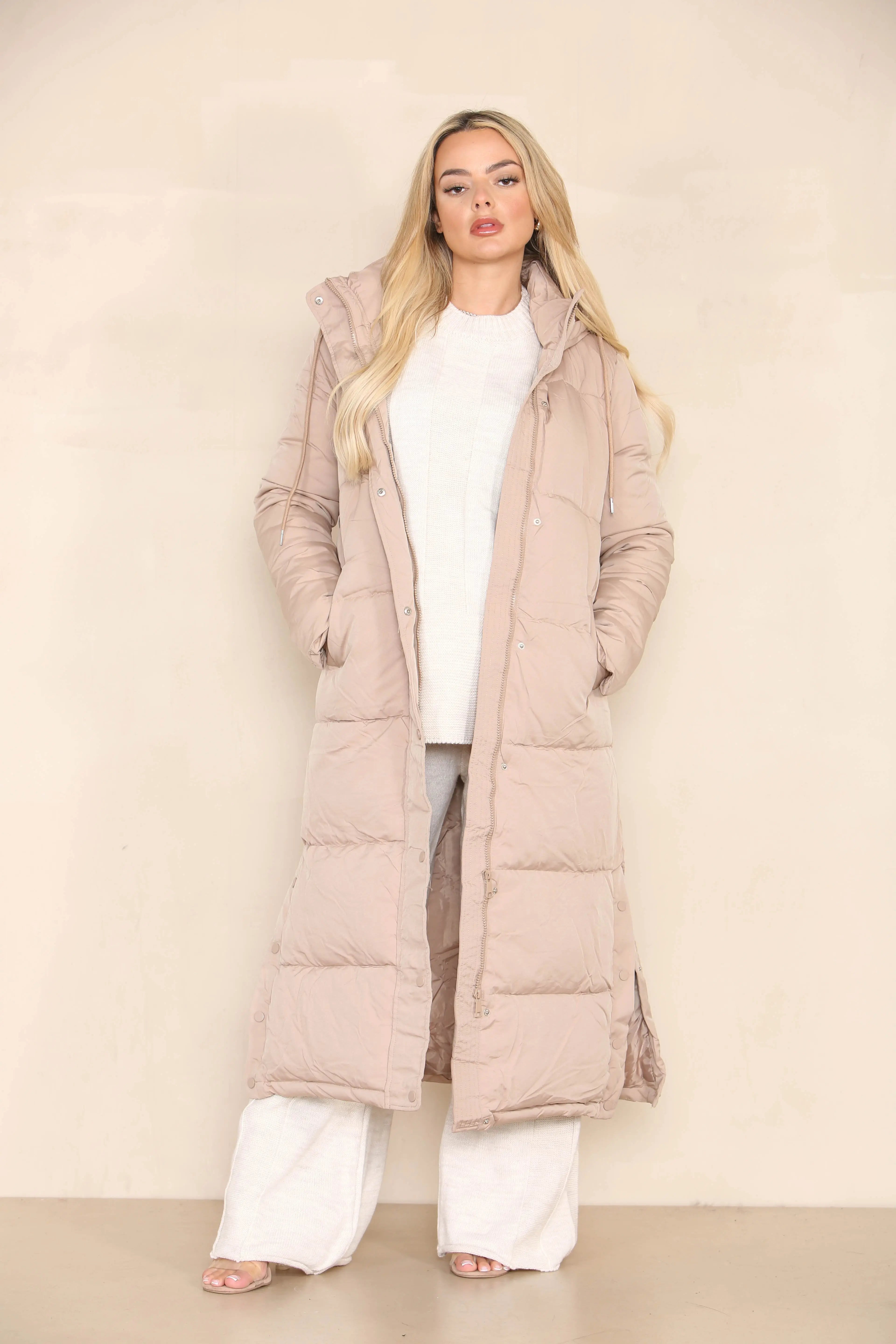 This exquisite coat features long, elegant sleeves and a cozy back hood adorned with a practical drawstring. Get ready to step out in confidence and comfort!