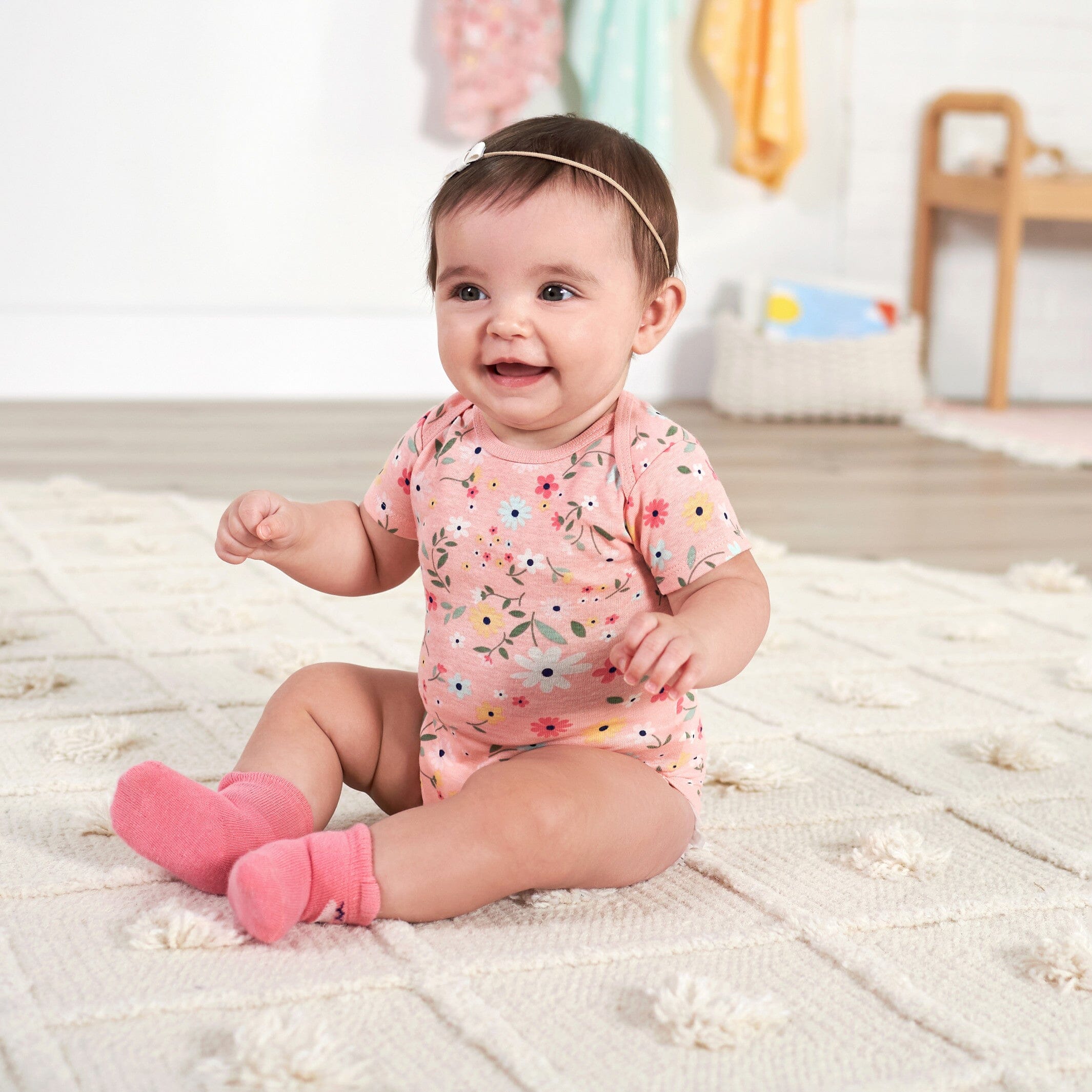 Get ready to mix and match! This Onesies® bodysuits, pull on pants, and caps set is essential to every baby’s wardrobe! Each piece is made with soft cotton, a gentle fabric that’s perfect for your baby’s sensitive skin. We use STANDARD 100 by OEKO-TEX® certification on products tested in an independent laboratory against a list of more than 400 harmful substances, including PFAS. Our bodysuits feature expandable lap shoulder necklines and high-positioned snaps for easy and quick diaper and wardrobe changes. The pants all feature a gentle elastic waistband for all day comfort and easy on & off. And each cap will keep your little one cozy & warm all day long. Each piece in this set is machine washable and machine dryable for your convenience. This pack includes three fox themed Onesies® bodysuits, three pairs of pants, and four caps.