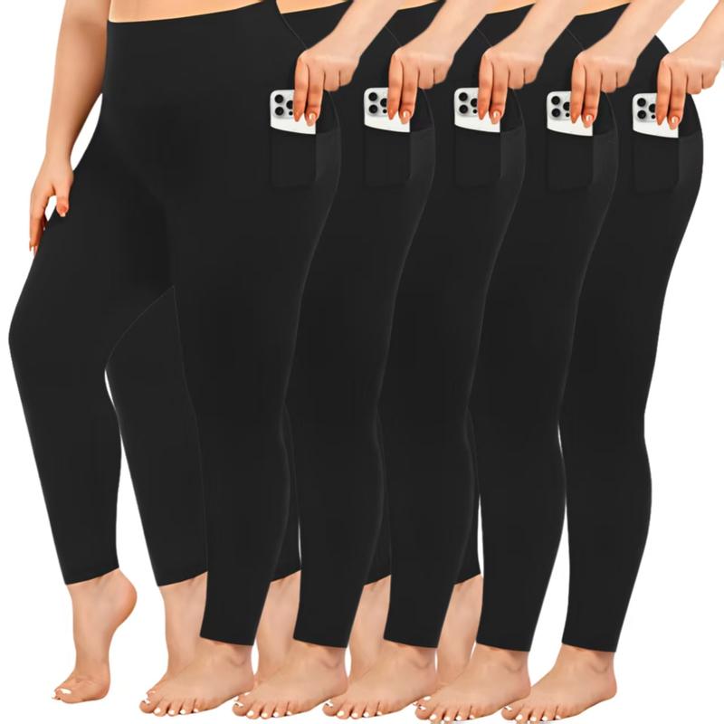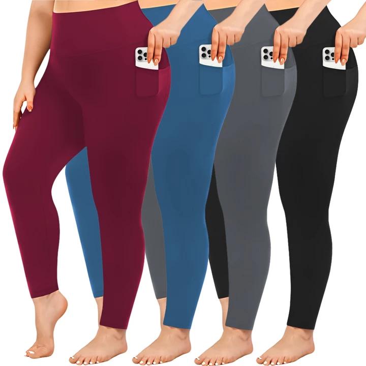 • 3/4/5 Pack Plus Size Leggings for Women with Pockets Stretchy XL-5XL Tummy Control High Waist Womens Leggings Workout Yoga Pants Gym Leggings in Various Colors