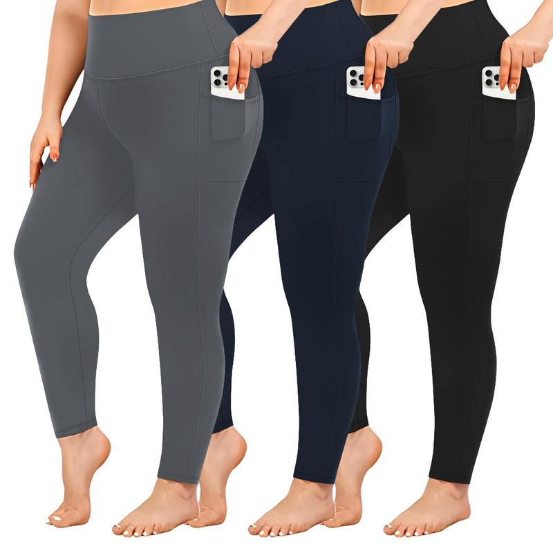 3/4/5 Pack Plus Size Leggings for Women with Pockets Stretchy XL-5XL Tummy Control High Waist Womens Leggings Workout Yoga Pants Gym Leggings in Various Colors