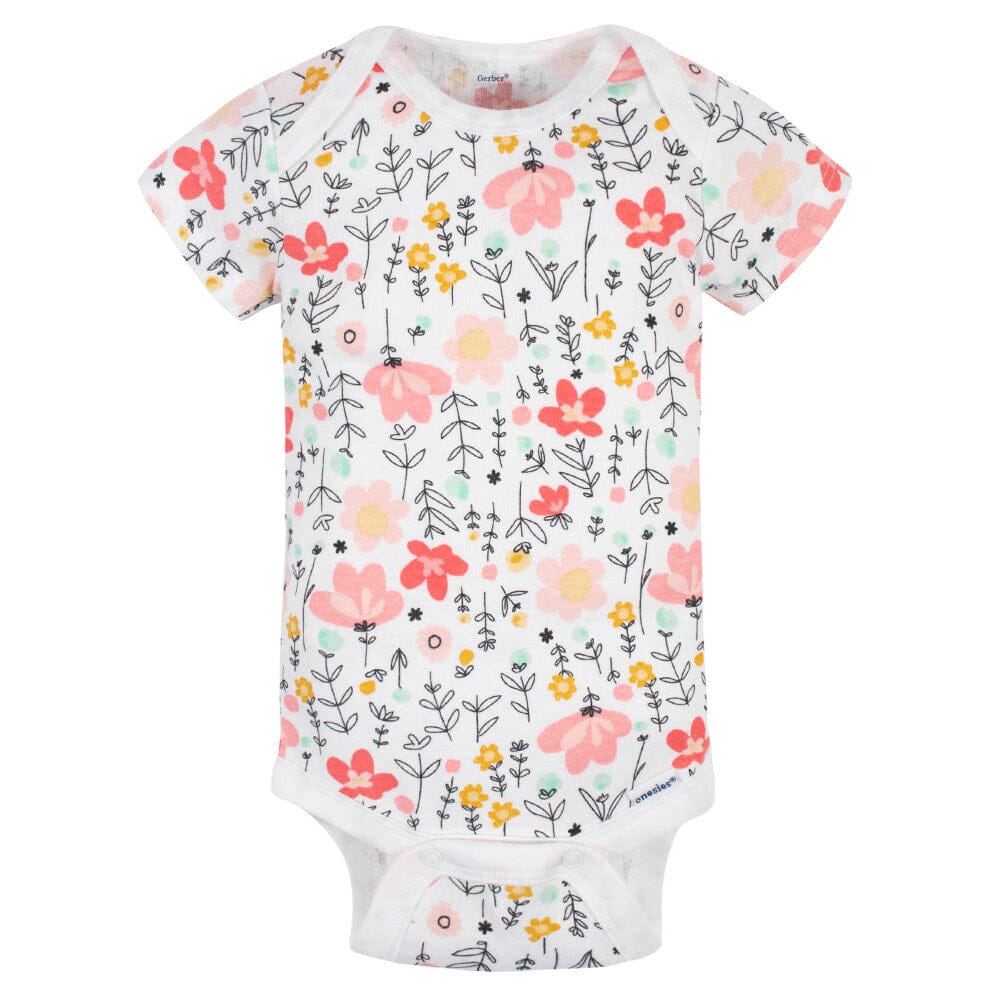Our baby Onesies® bodysuits and pants sets are perfect to mix and match! Each piece is made with soft fabric made with cotton that’s gentle on your baby’s skin. Our essentials have been independently certified with STANDARD 100 by OEKO-TEX® so that you don’t have to worry about harmful substances in your baby’s wardrobe. This set includes three baby girl bodysuits and two pairs of baby girl pants with a pink floral theme. Each piece is machine washable and dryable.