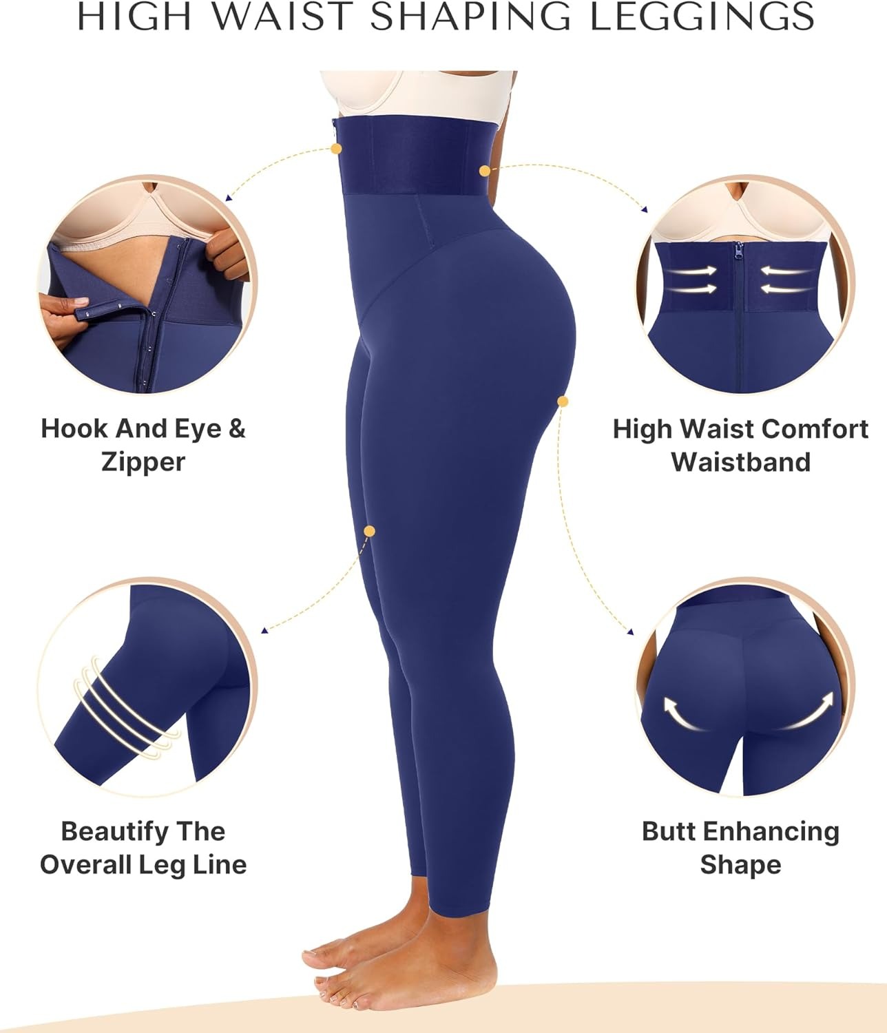 The Bare Essentials™ AirSlim® ElasticFuse Waistband Shaping Leggings combine optimal comfort and support in an innovative high-rise design. Featuring a unique hook & zipper combo closure and a patchwork elastic waistband, this legging will keep everything in place in style!
