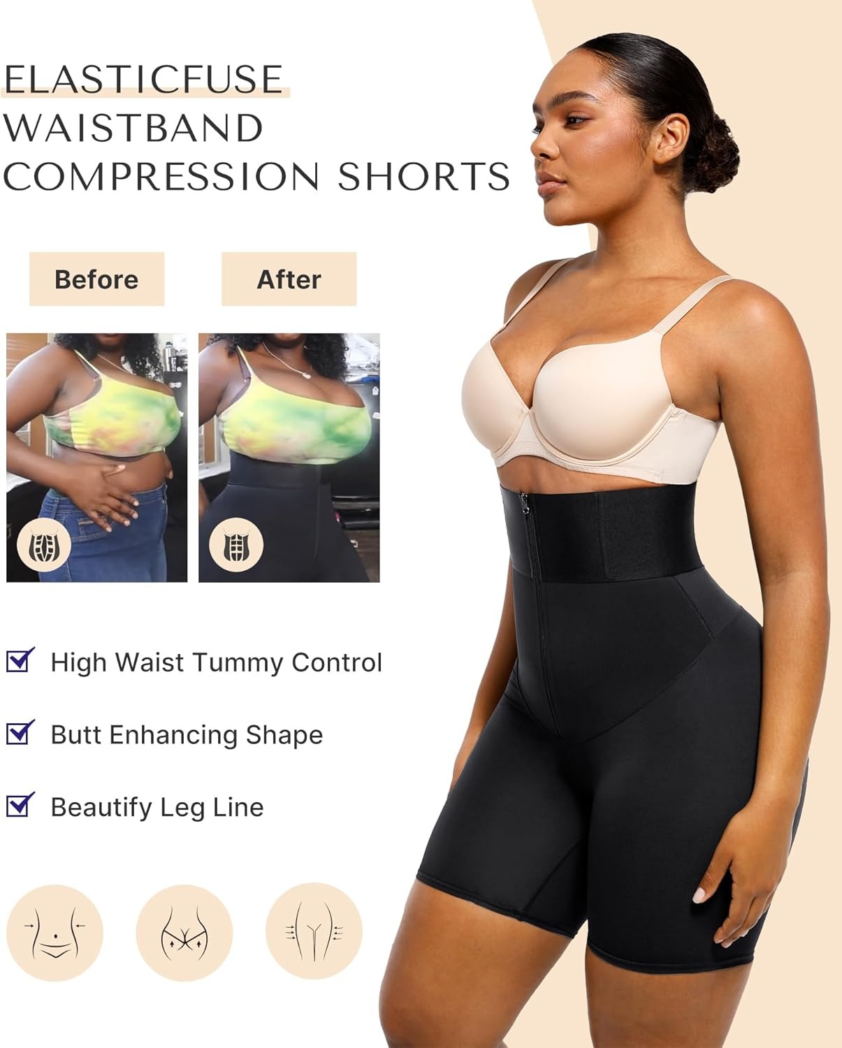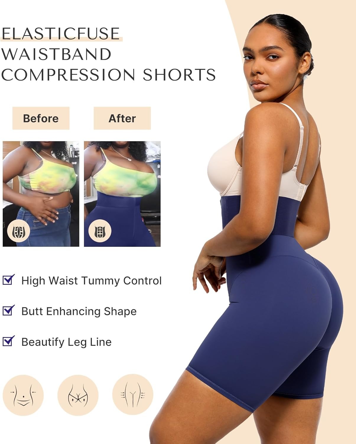 • Patchwork waistband offers firm control and powerful elasticity to shape your tummy.