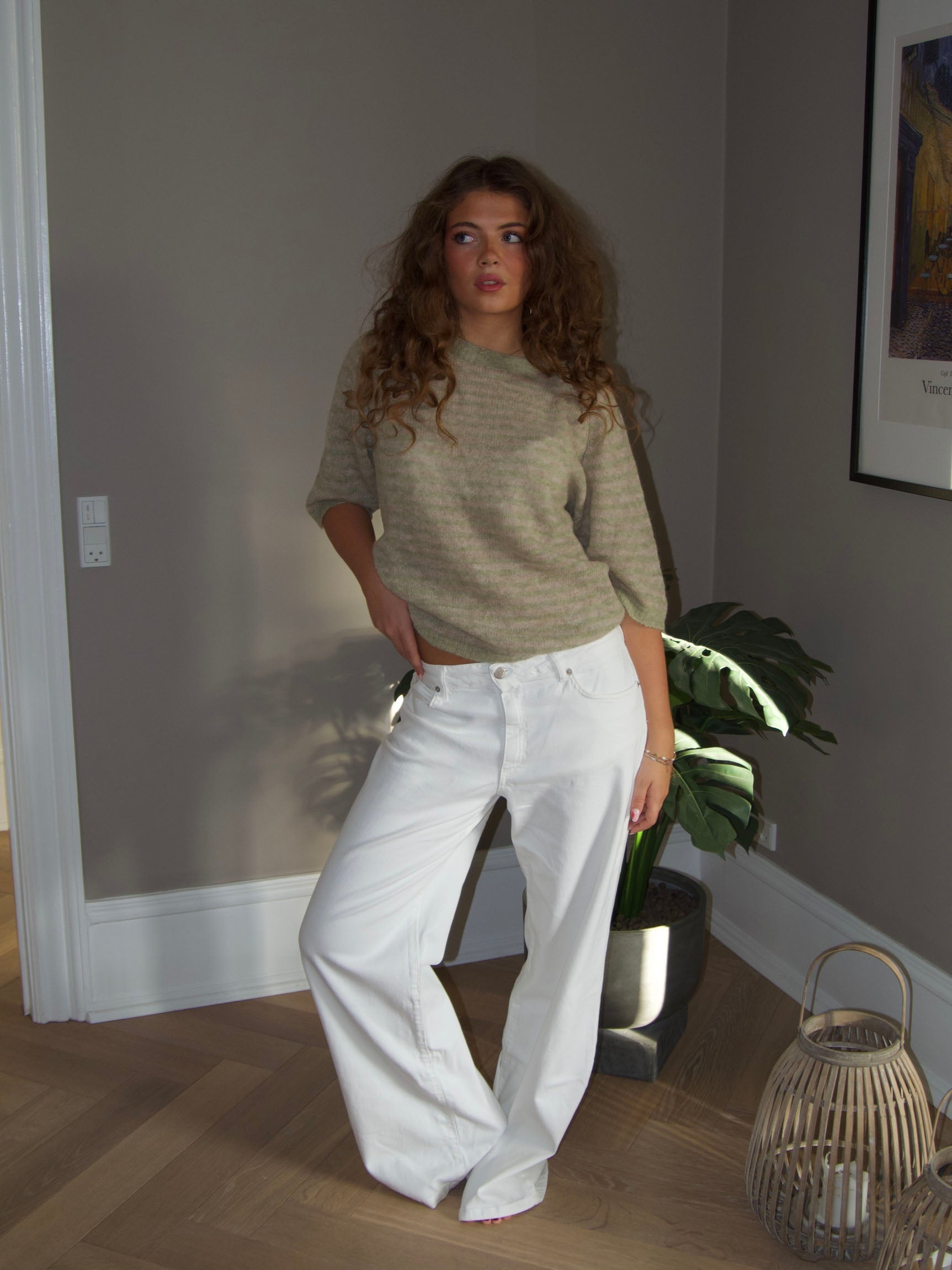 Note: The size of this model may vary depending on the wash the product has undergone during production. The white jeans might seem a bit bigger in size.