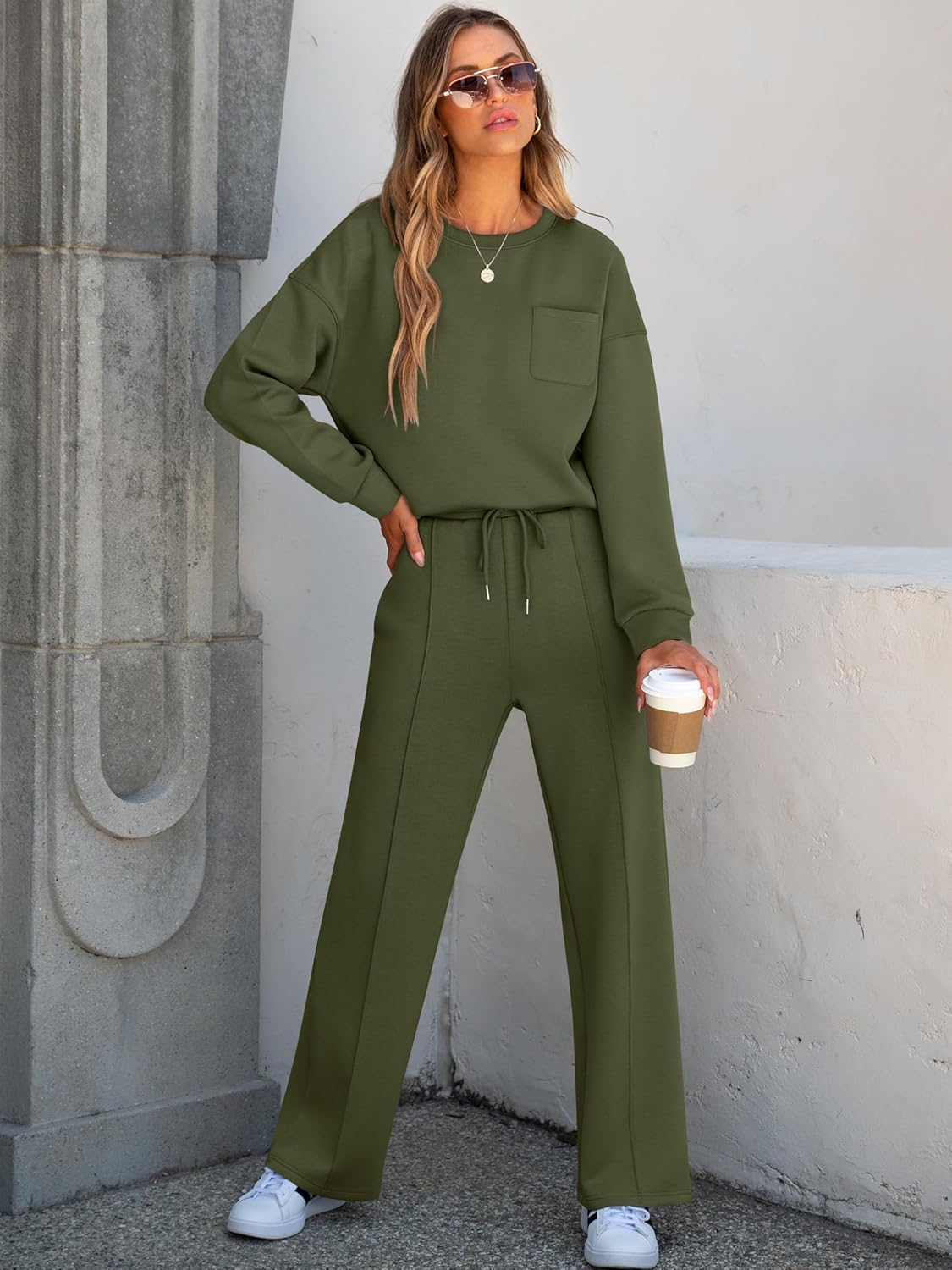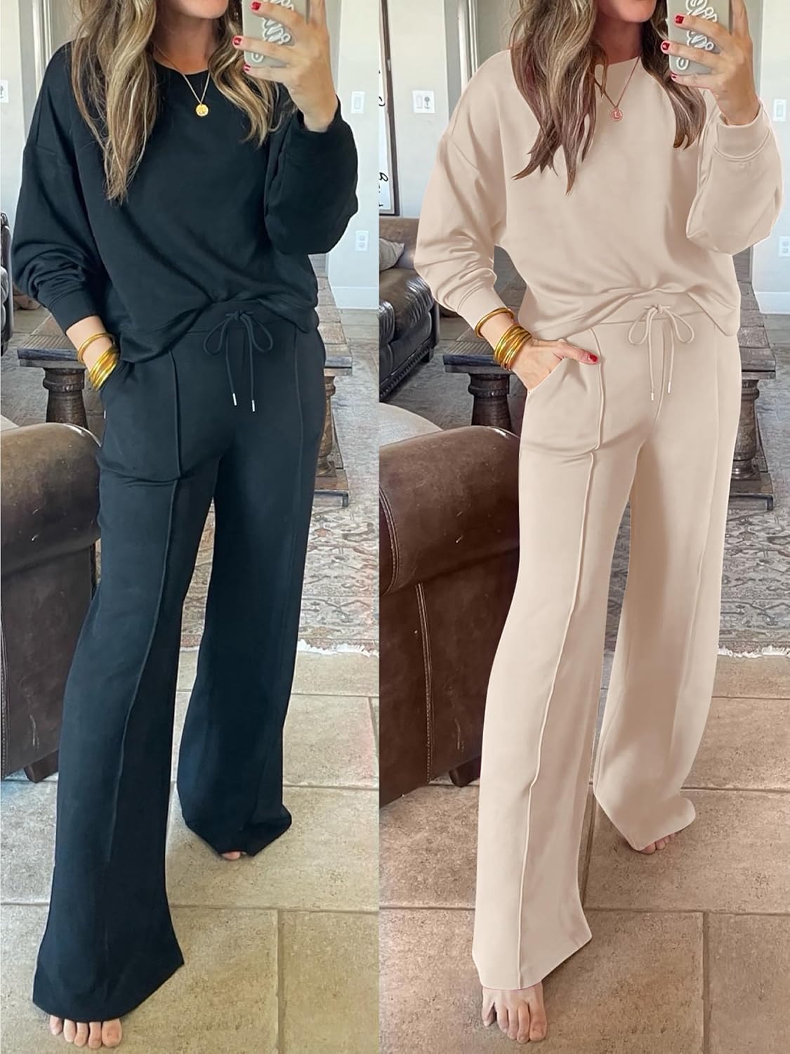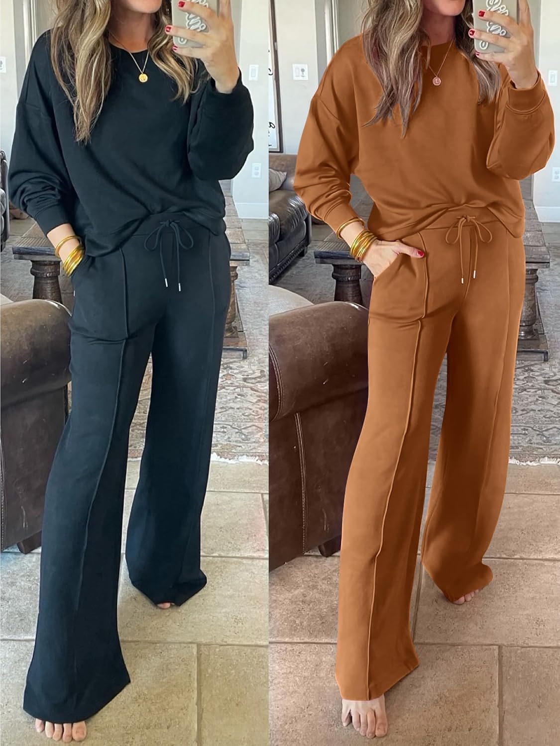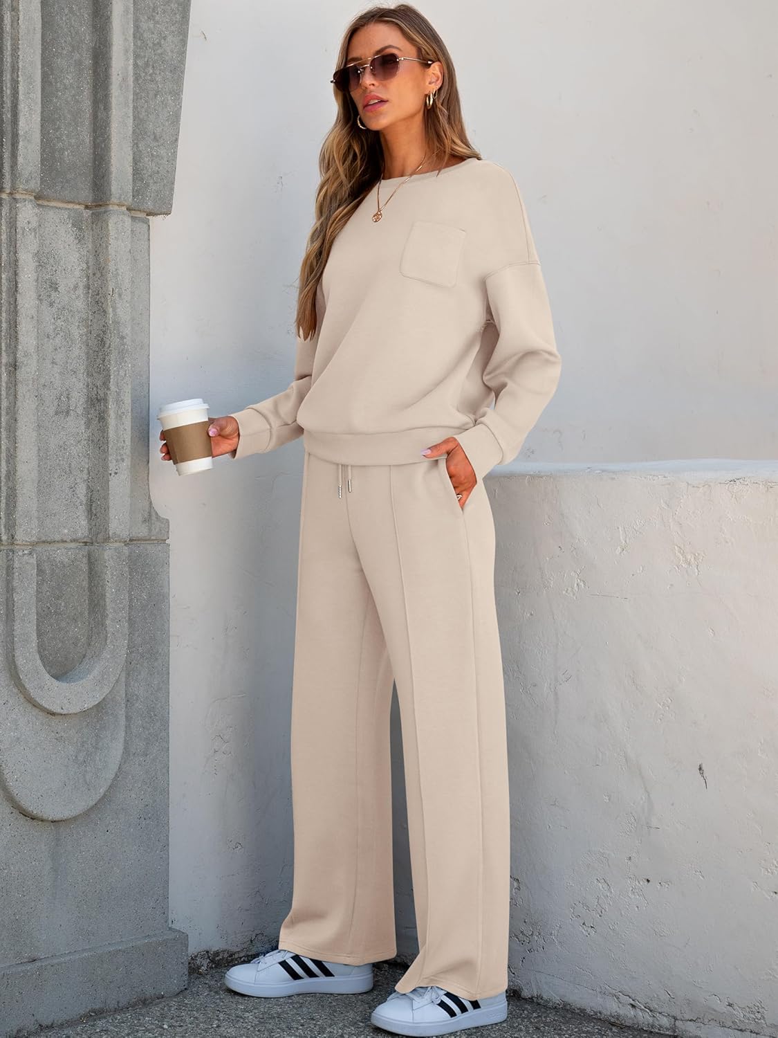 • Women 2 Piece Set Long Sleeve Sweatsuit Sweatpants Tracksuit Sweat Casual Matching 2024 Travel Fall Trendy Outfits