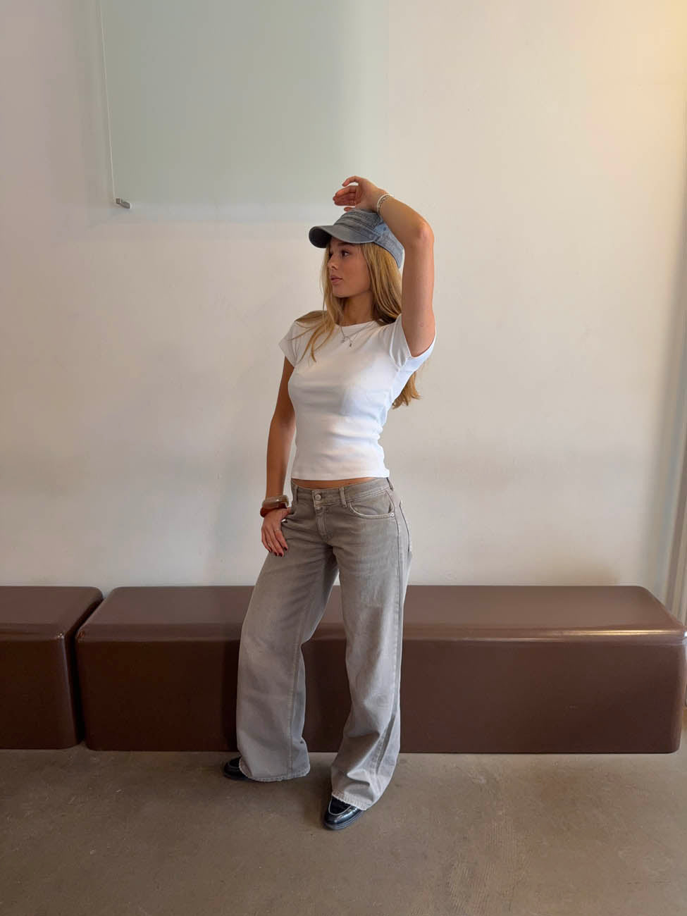 These loose, low-waisted jeans combine relaxed comfort with a modern, minimalist look. The straight fit and lightweight, flexible fabric create a flattering drape, while the raw hems add a subtle, cool touch.