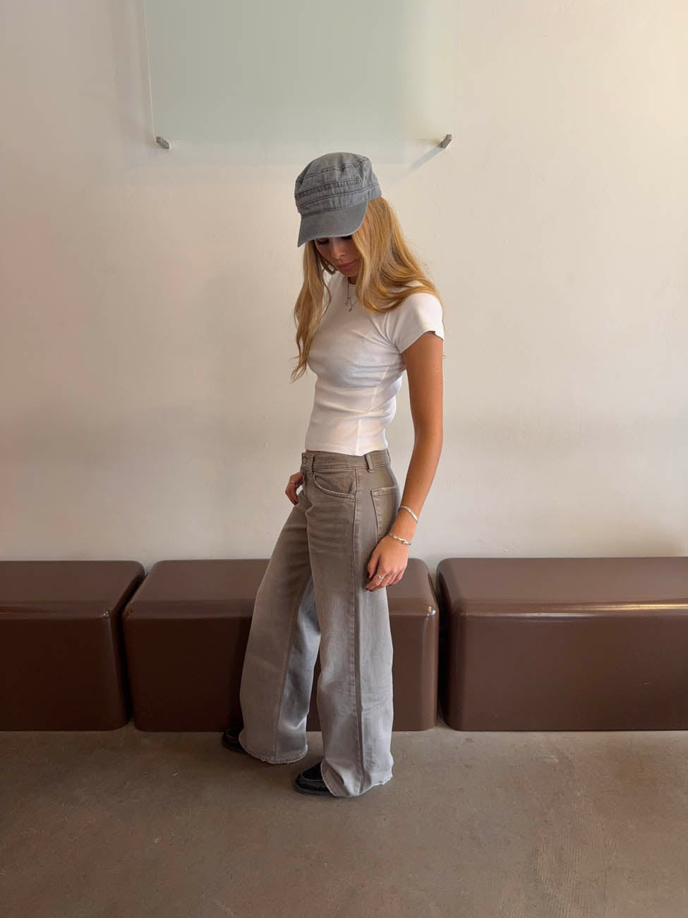 Designed with classic details such as belt loops and pockets, these jeans are versatile and easy to style. The neutral sage-green tone pairs beautifully with both light and dark shades – ideal for everything from casual everyday wear to more polished looks.