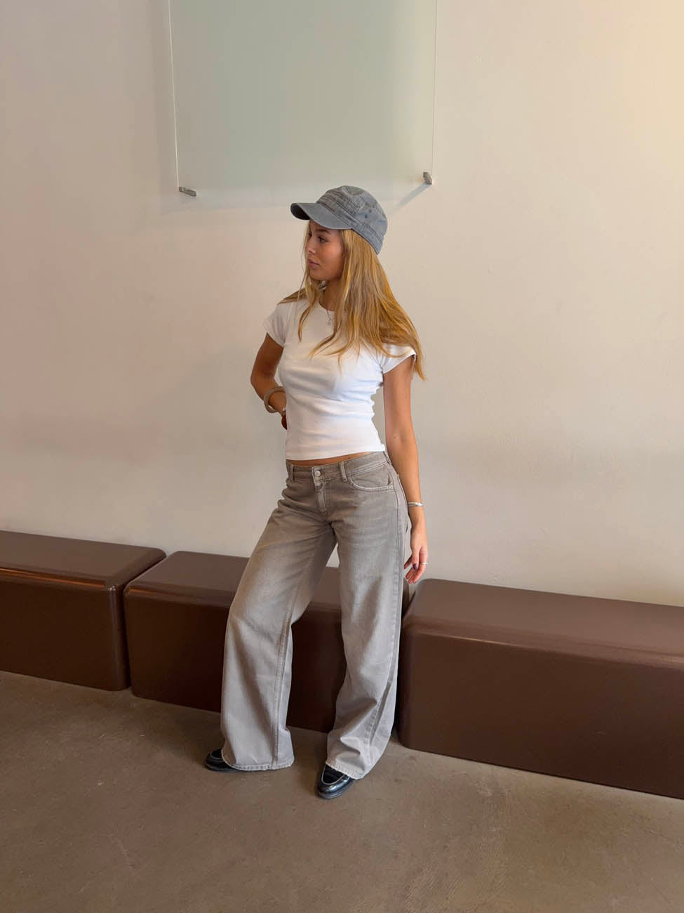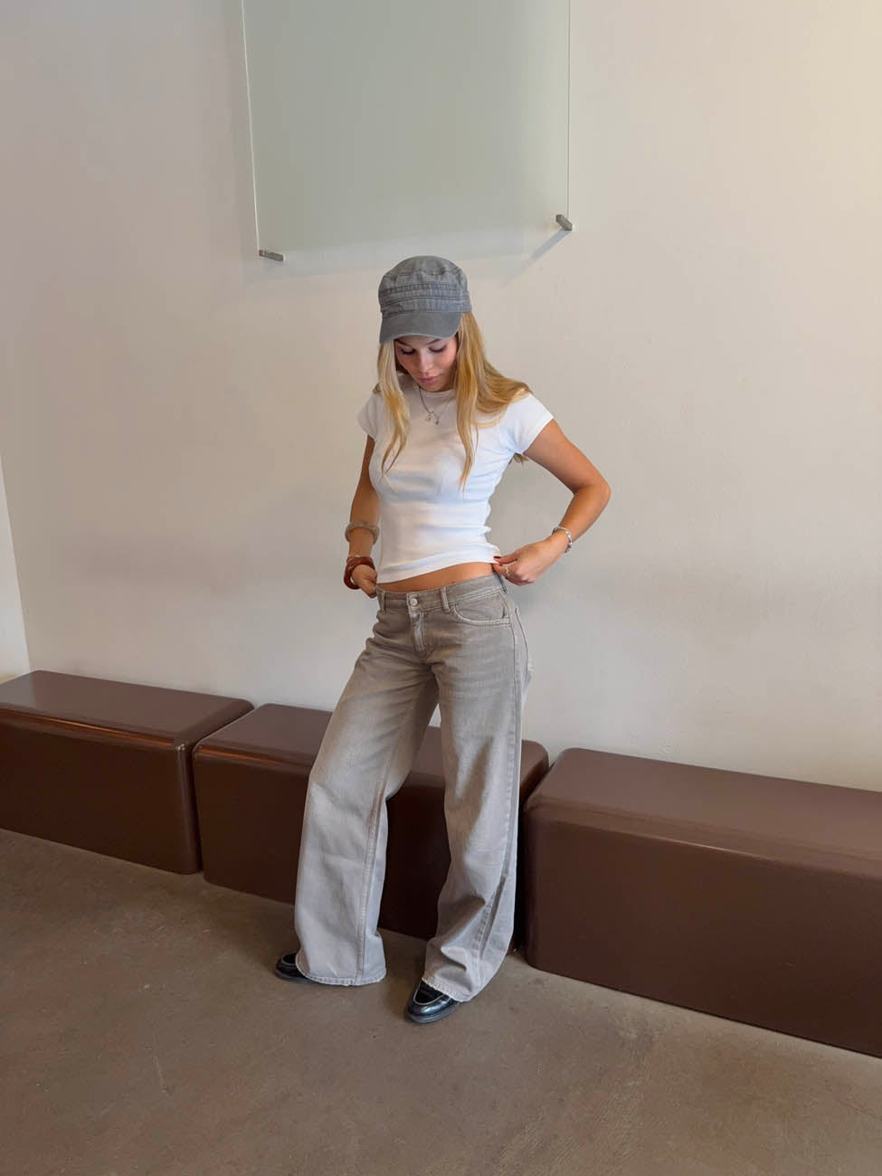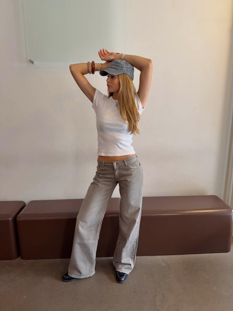 These loose, low-waisted jeans combine relaxed comfort with a modern, minimalist look. The straight fit and lightweight, flexible fabric create a flattering drape, while the raw hems add a subtle, cool touch.