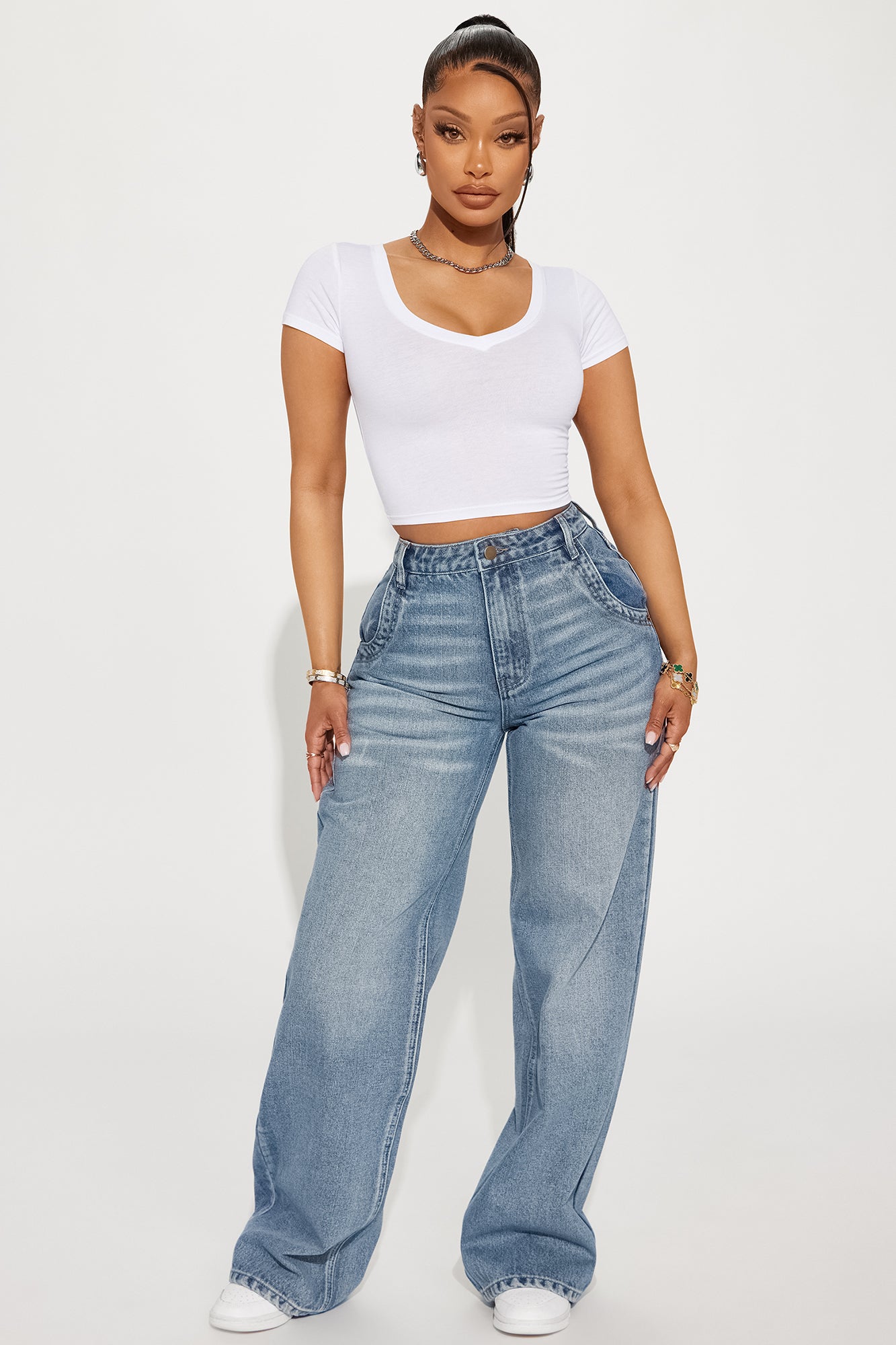 Available In Light Wash And Vintage Wash.Wide Leg JeanDrop Waist11" Rise32.5" InseamNon StretchDisclaimer: Due To The Specialized Wash Process, Each Garment Is Unique.90% Cotton 10% PolyesterImported