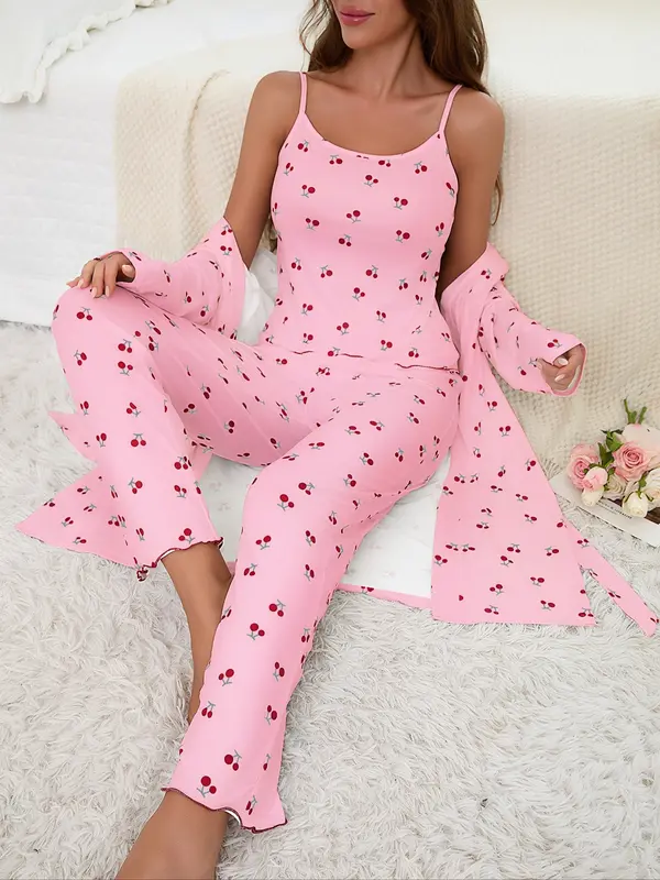 【Charming Print】: With its unique cherry fruit pattemthis set brings a playful and delicious ambiance to yournight.