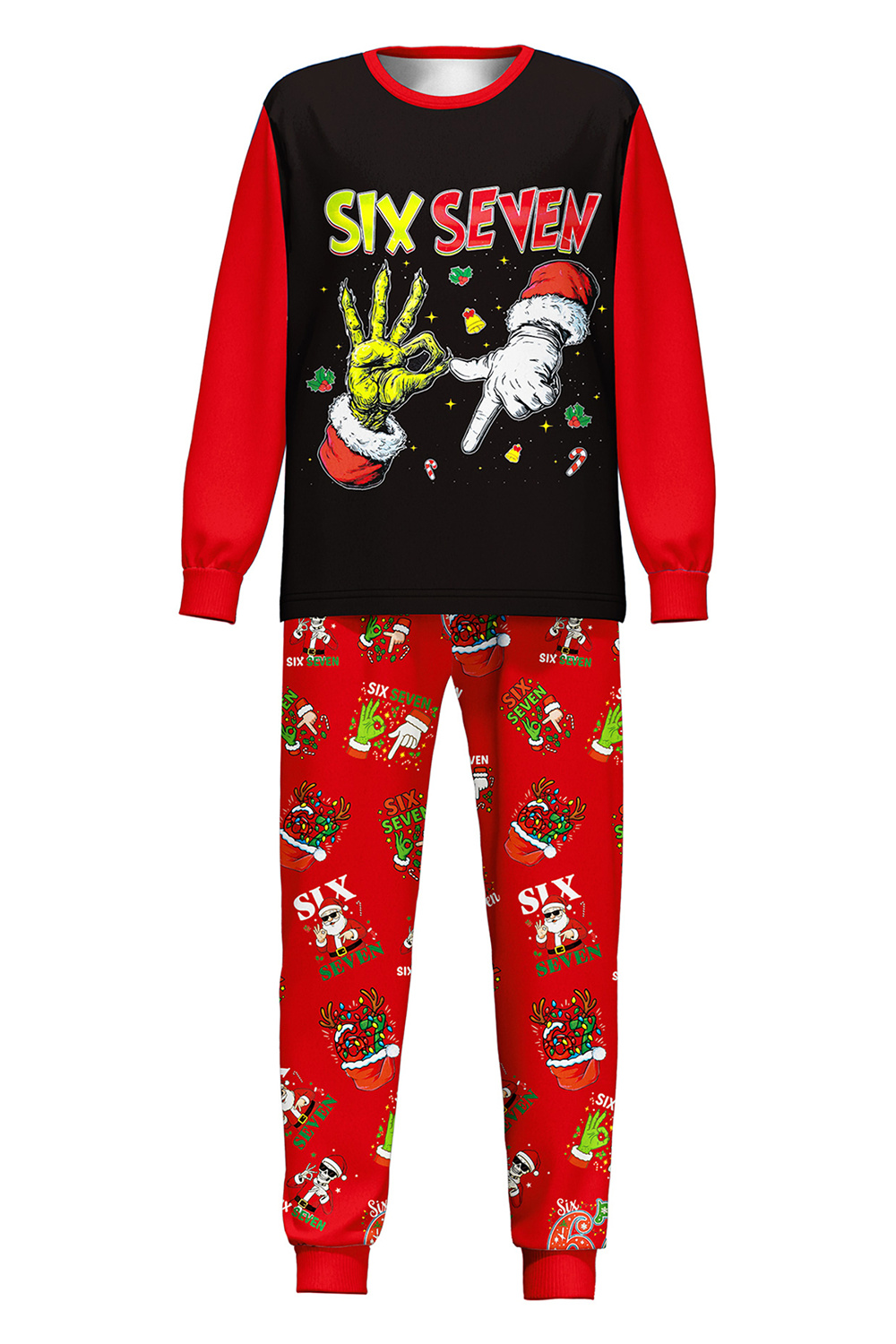 Our SIX SEVEN Christmas pajamas with the epic Santa vs. monster hand battle are the ultimate holiday vibe. Limited stock – grab this conversation-starting set before it's gone! Watch their face light up! These unique SIX SEVEN pajamas make the ultimate holiday gift.