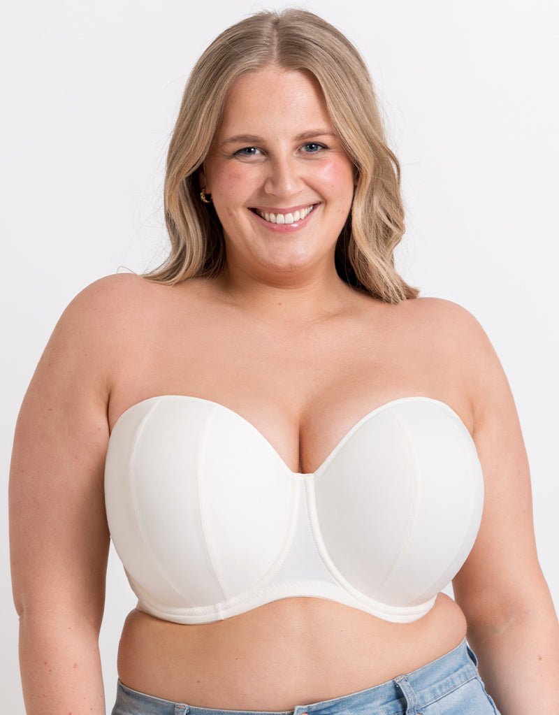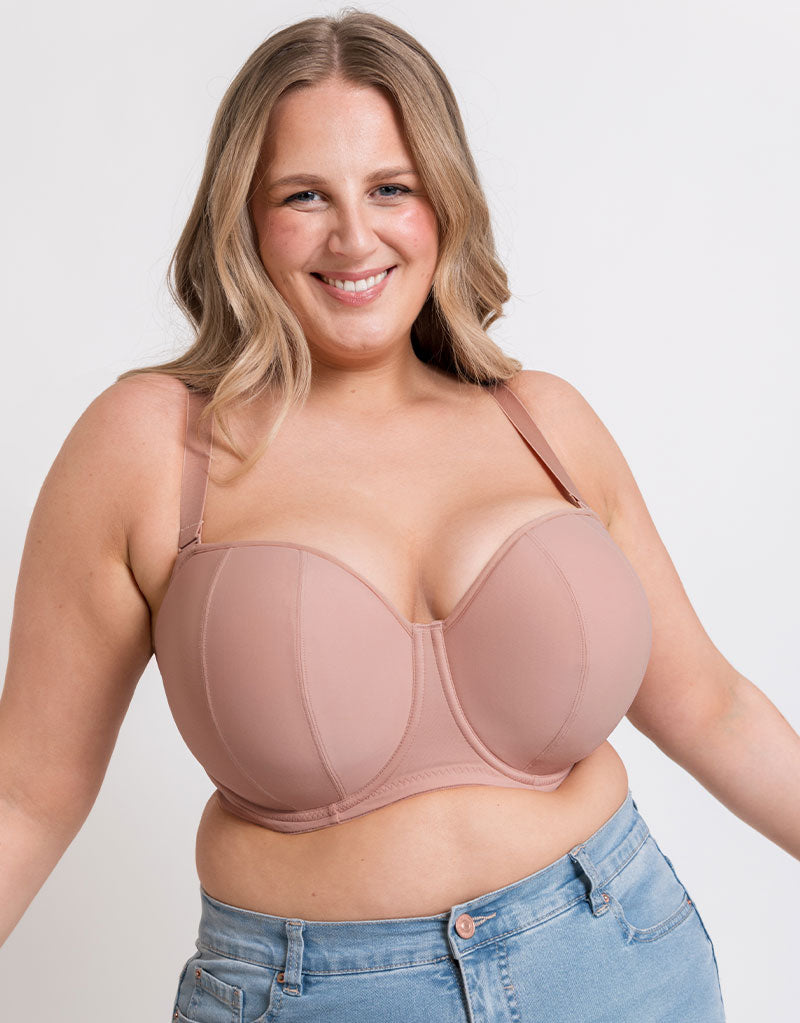 Our best-selling Luxe strapless has had a makeover and this season, less is more. No pinstripes or bows, just the best supporting seamed cups that offer incredible uplift, rounded shape and support, proving it is the best strapless bra for big boobs! The 4 hook and eye fastening back band hugs your curves without the worry of slipping. The 'Best Supporting Act' really does go to... our Luxe Strapless Bra!