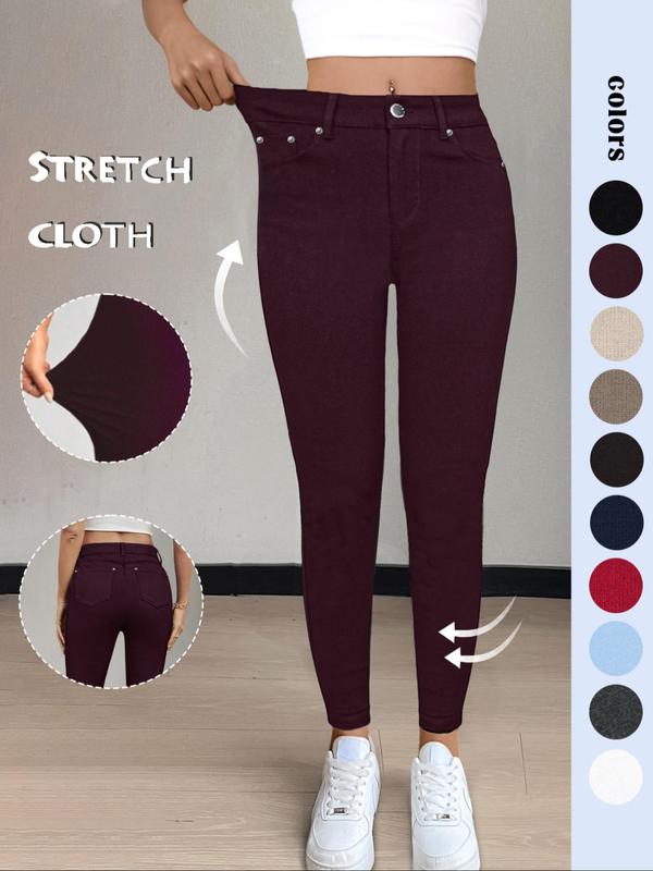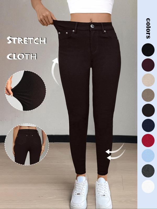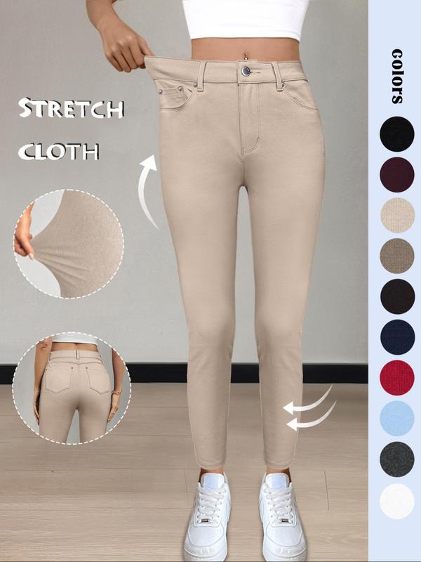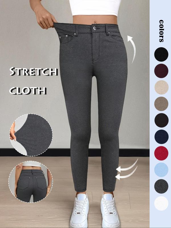 • Women's Plain Pocket Button Leggings, Casual Comfy Skinny Pants for Yoga Gym Workout, Ladies Bottoms for Fall & Winter,T-Chic