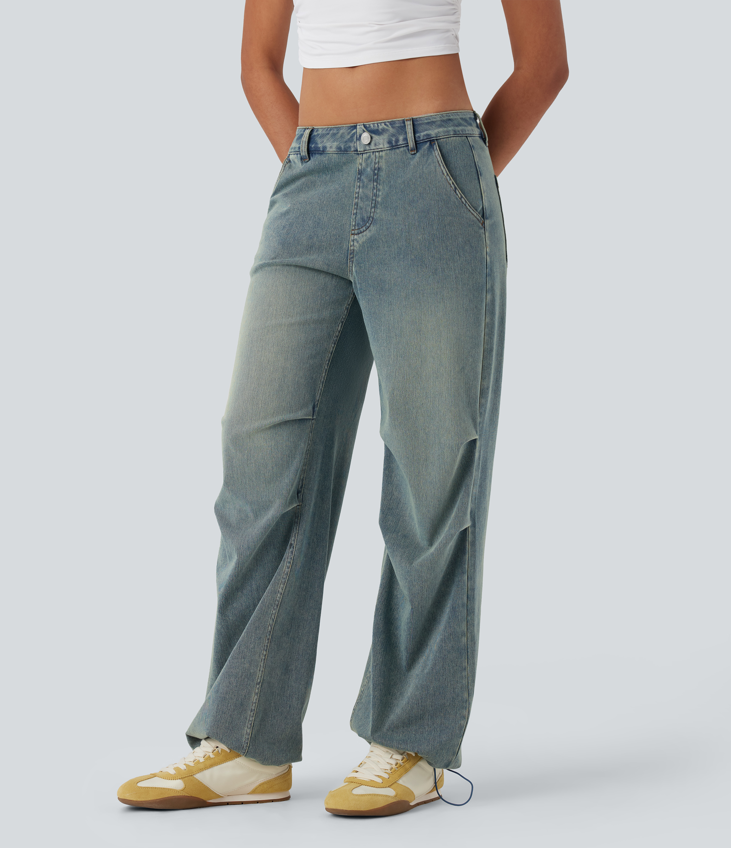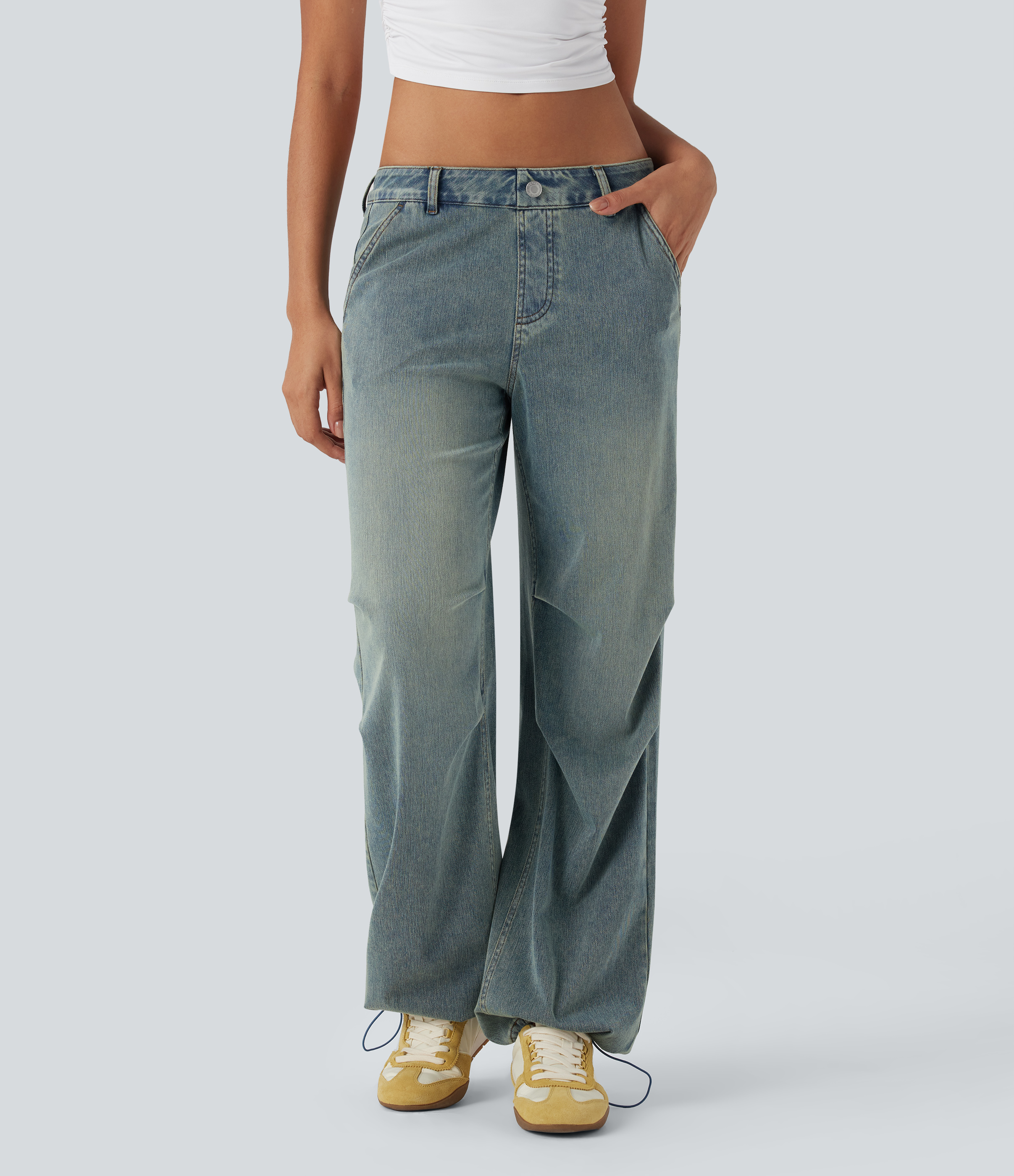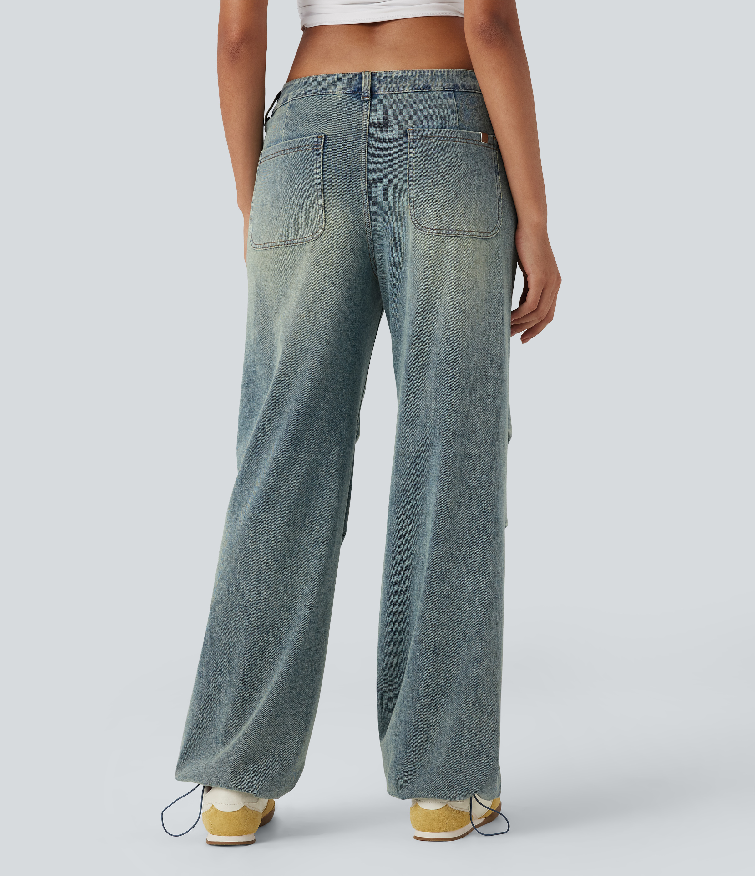 • Halara FlexTM Low Rise Adjustable Drawcord Stretchy Knit Casual Parachute Jeans with Multiple Pockets