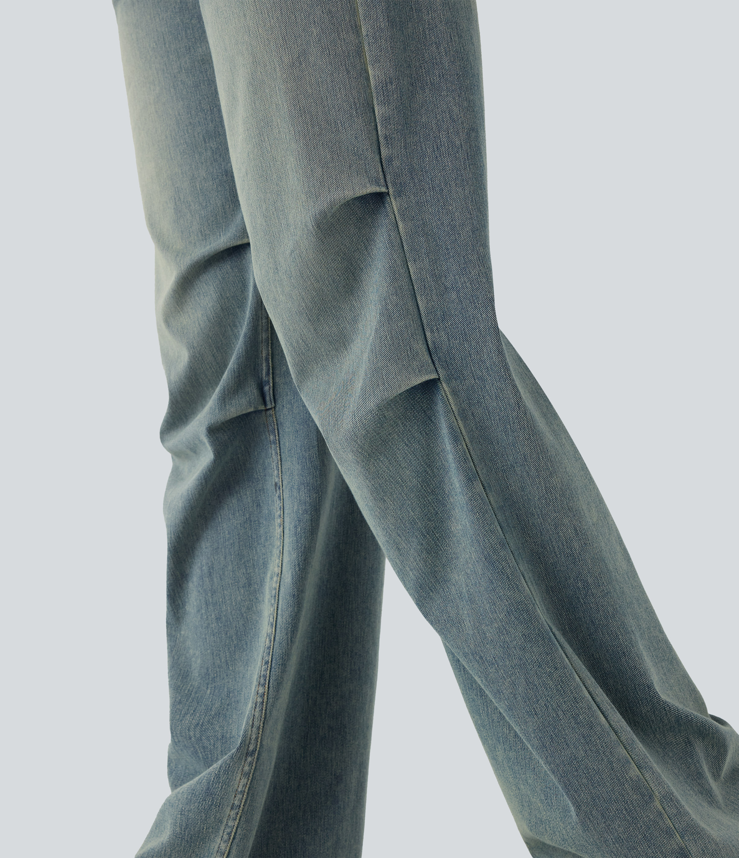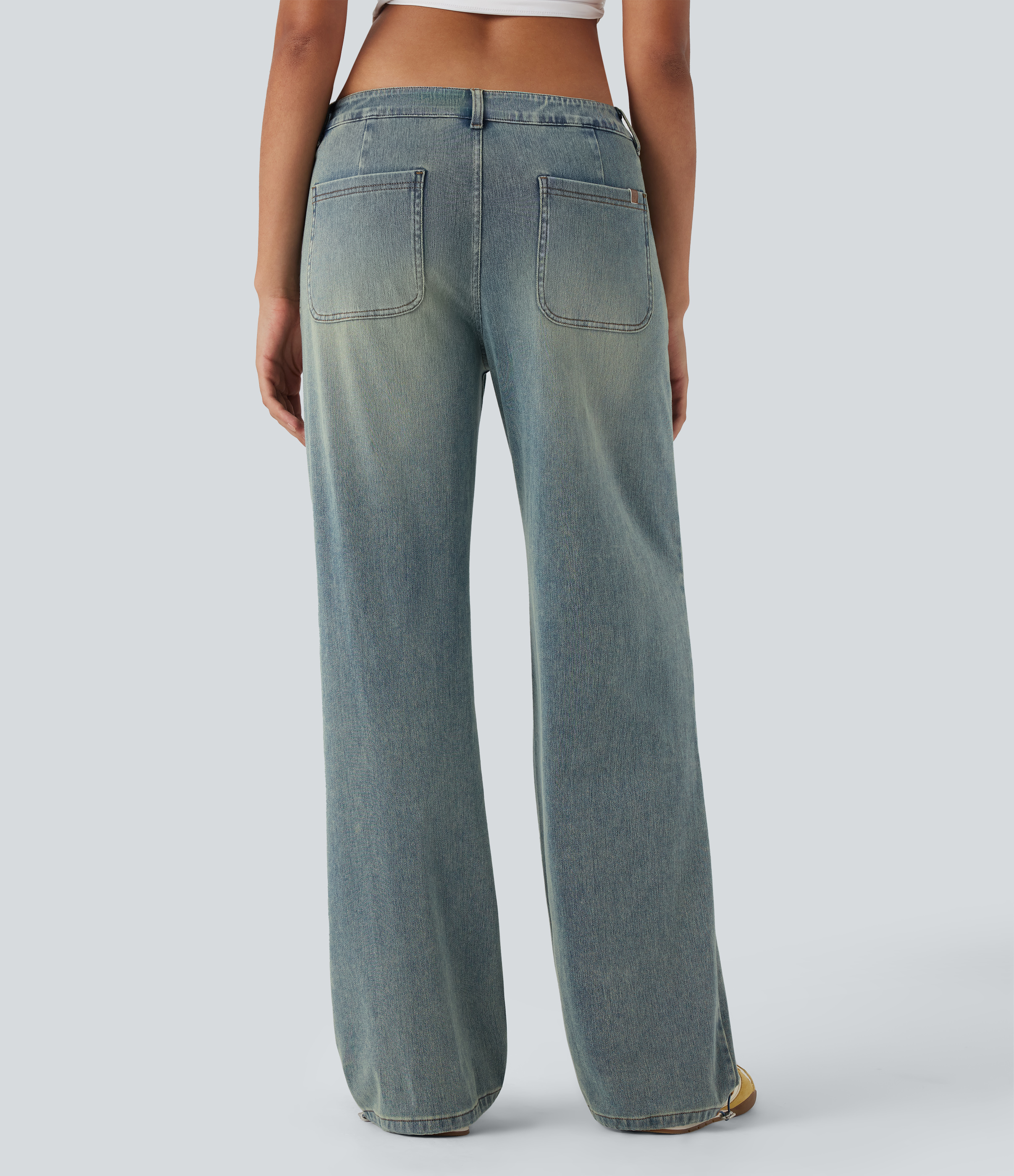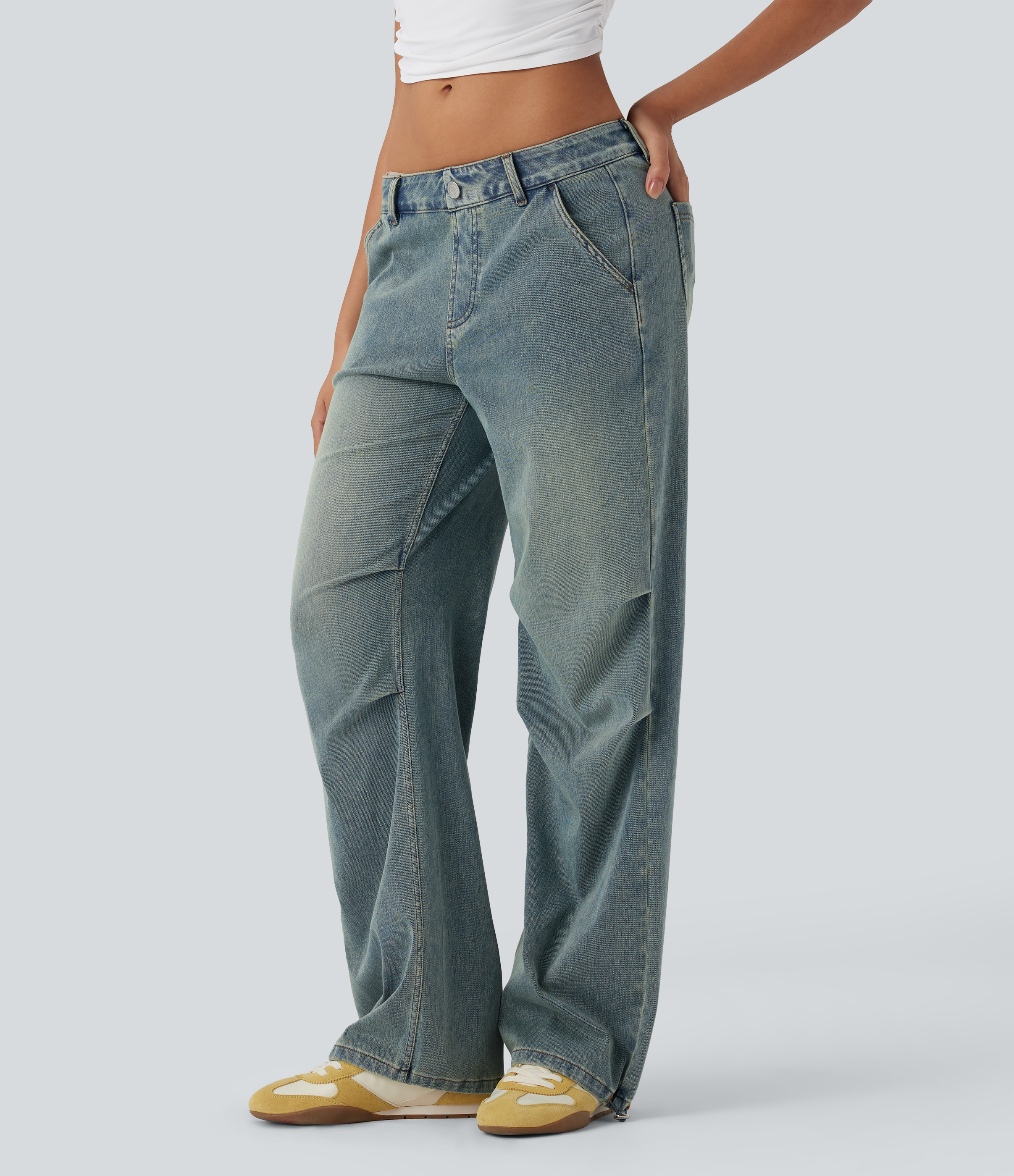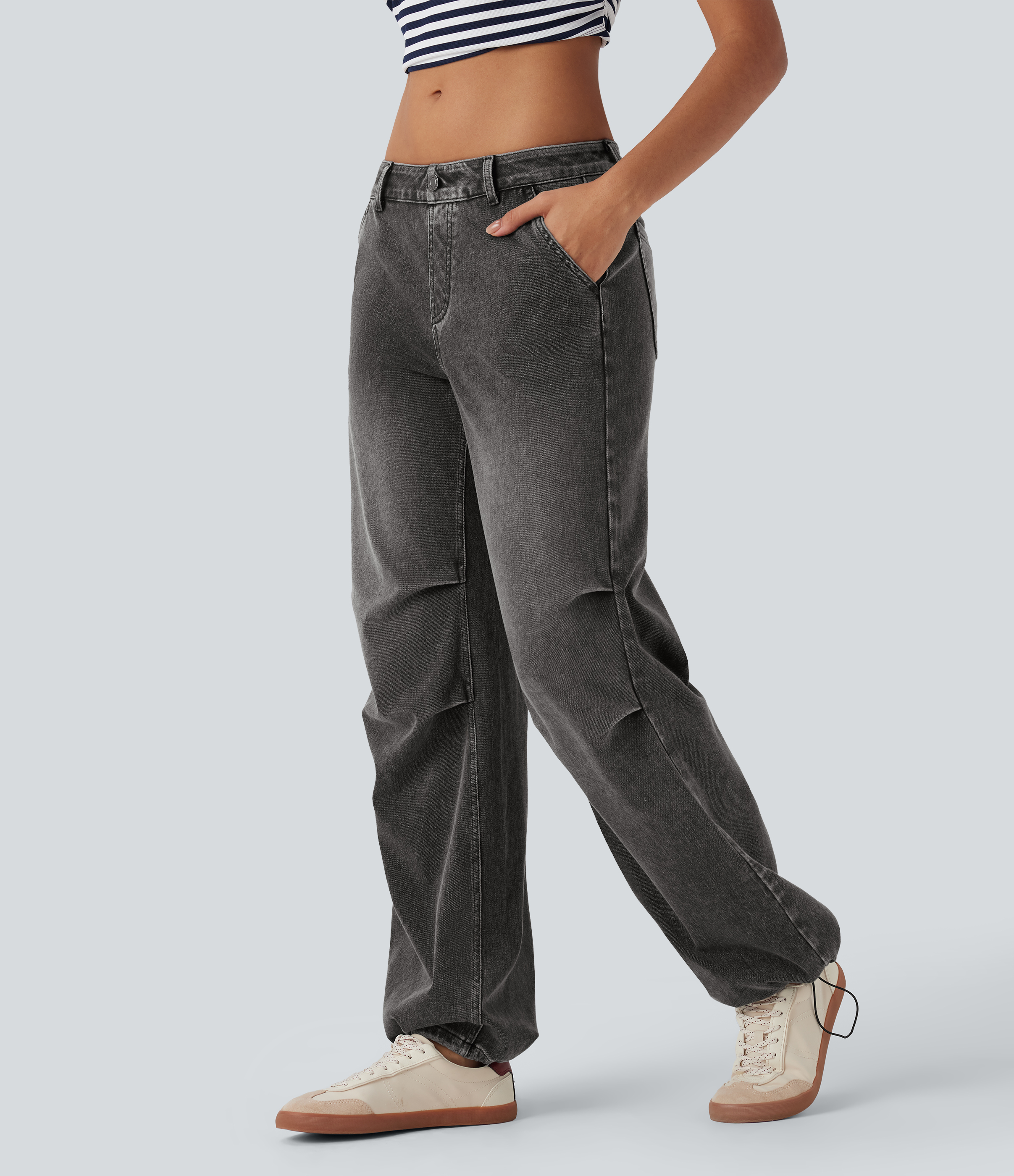 • Halara FlexTM Low Rise Adjustable Drawcord Stretchy Knit Casual Parachute Jeans with Multiple Pockets