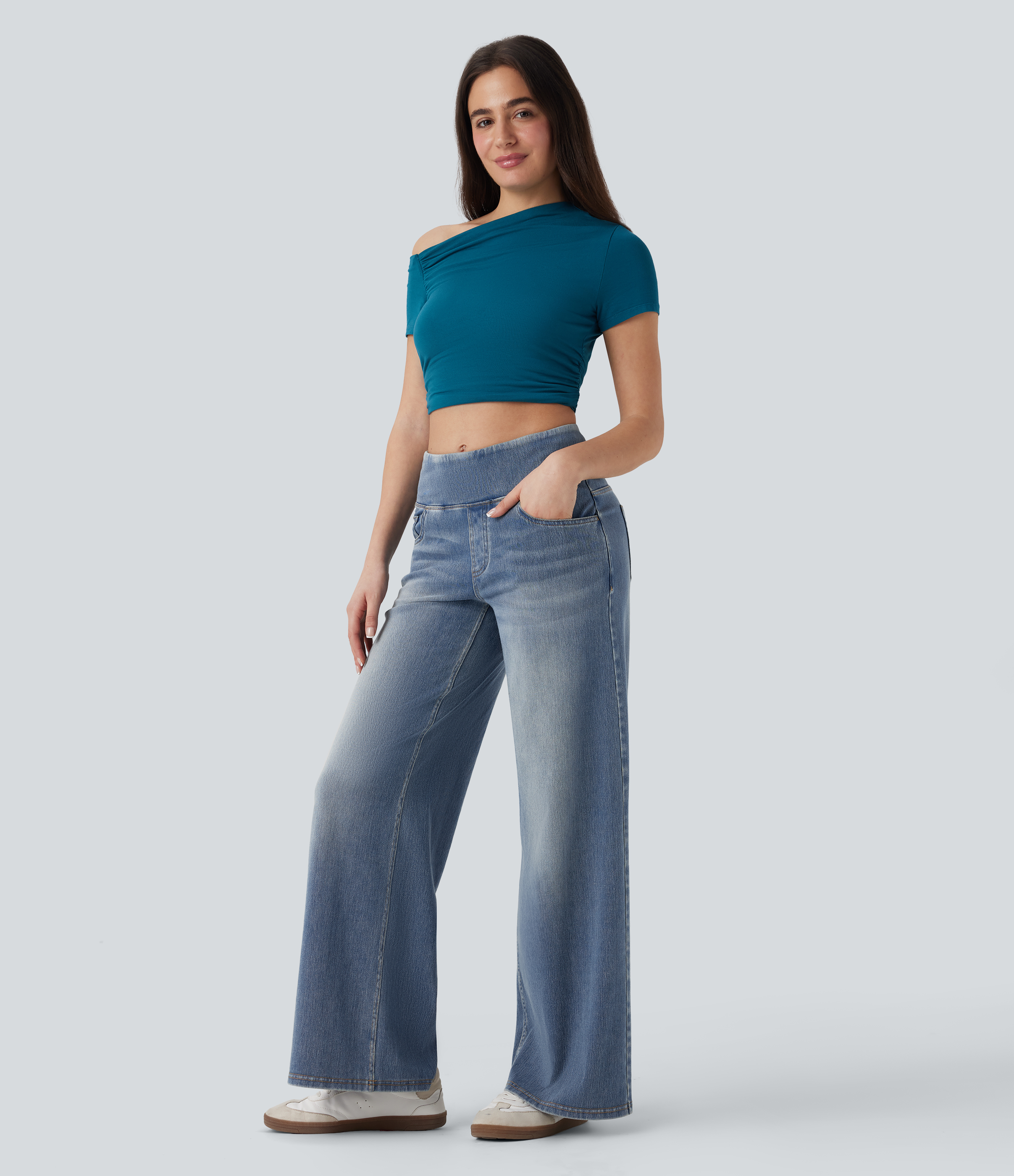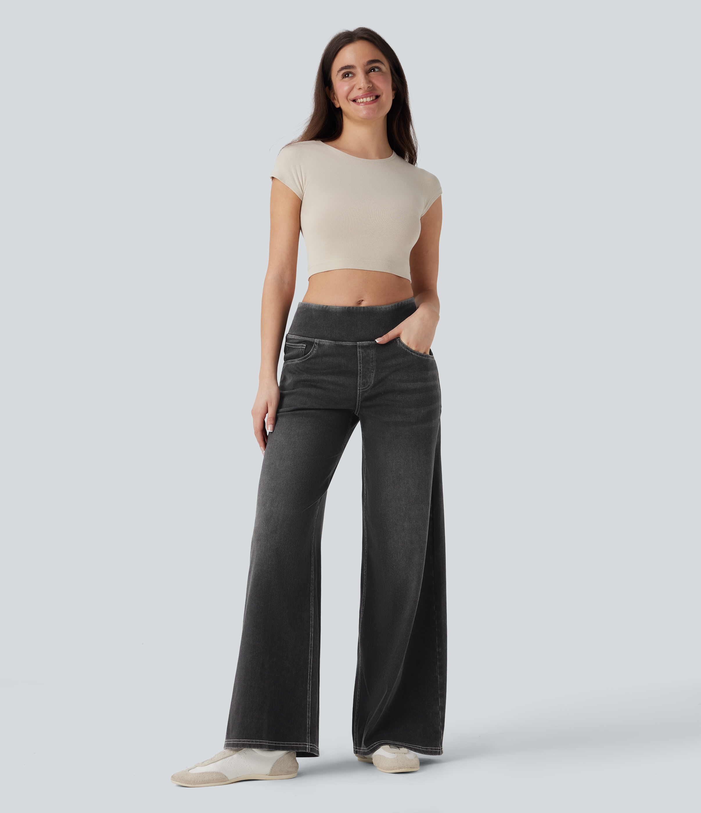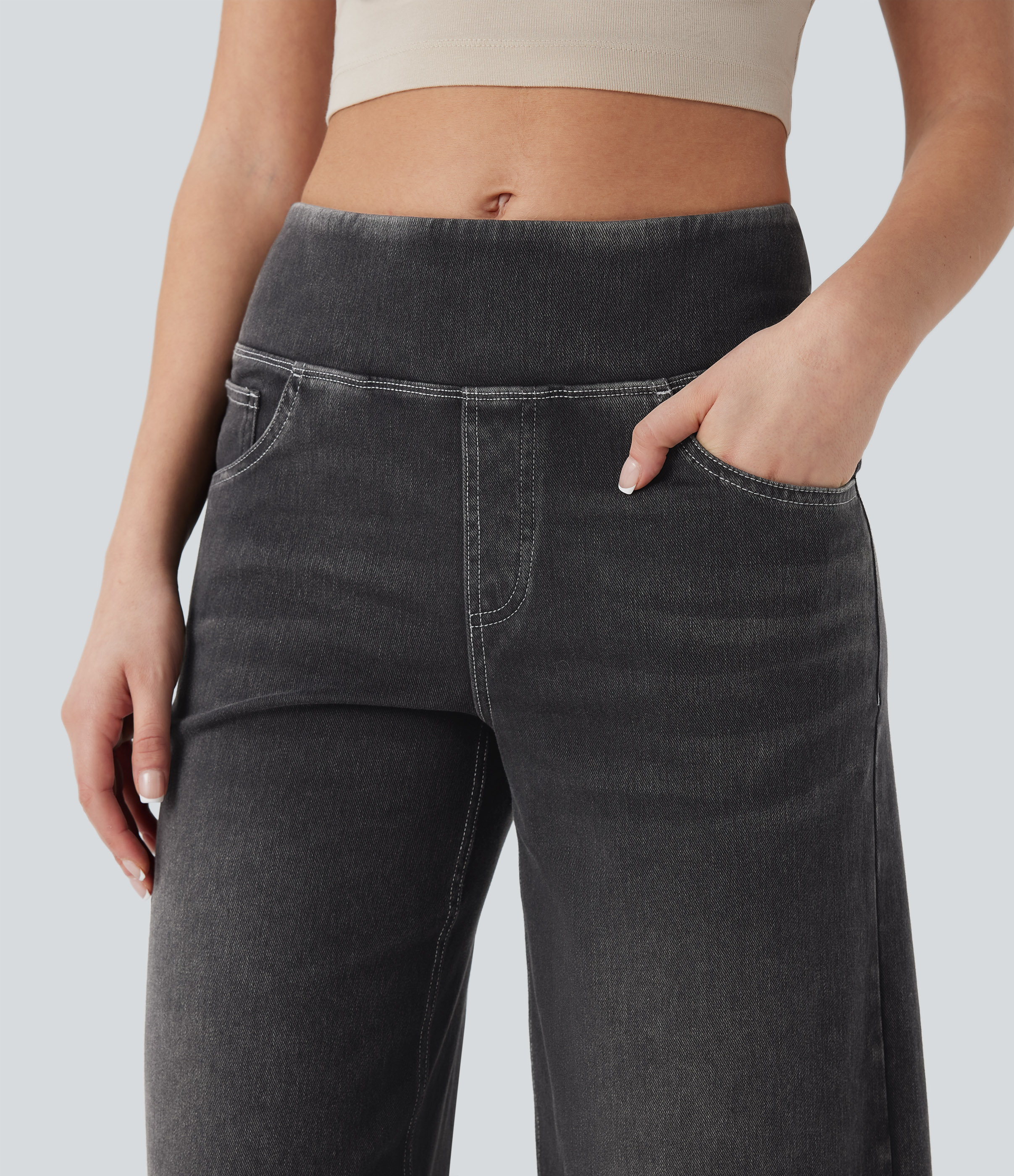Halara FlexTM SoCinched Mid Rise Tummy Control Casual Baggy Jeans with Pockets