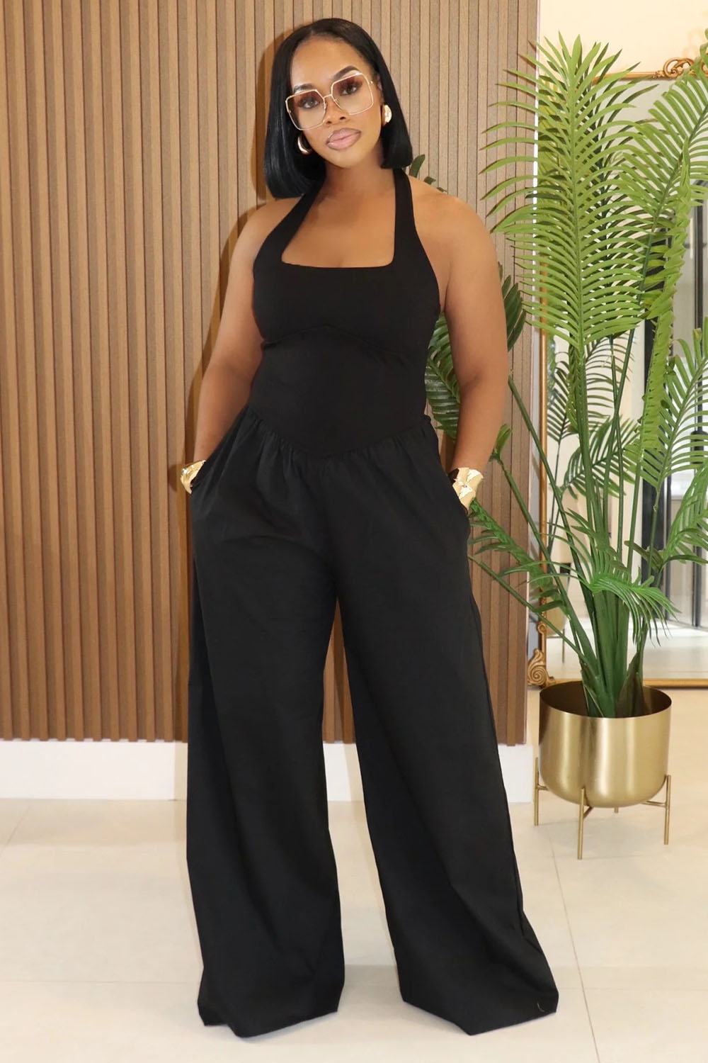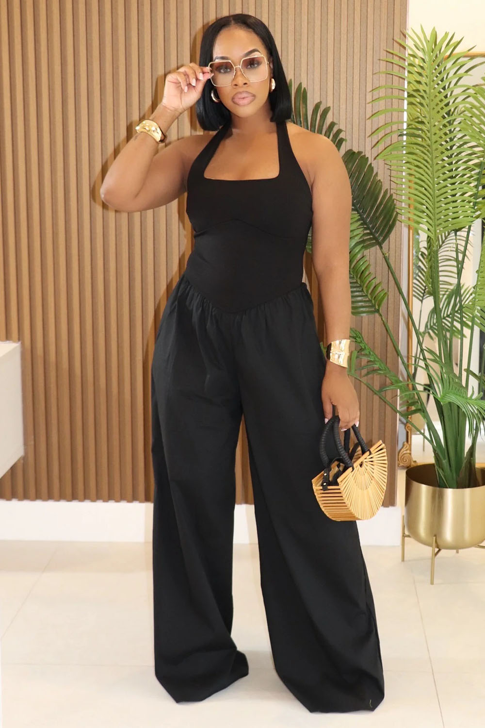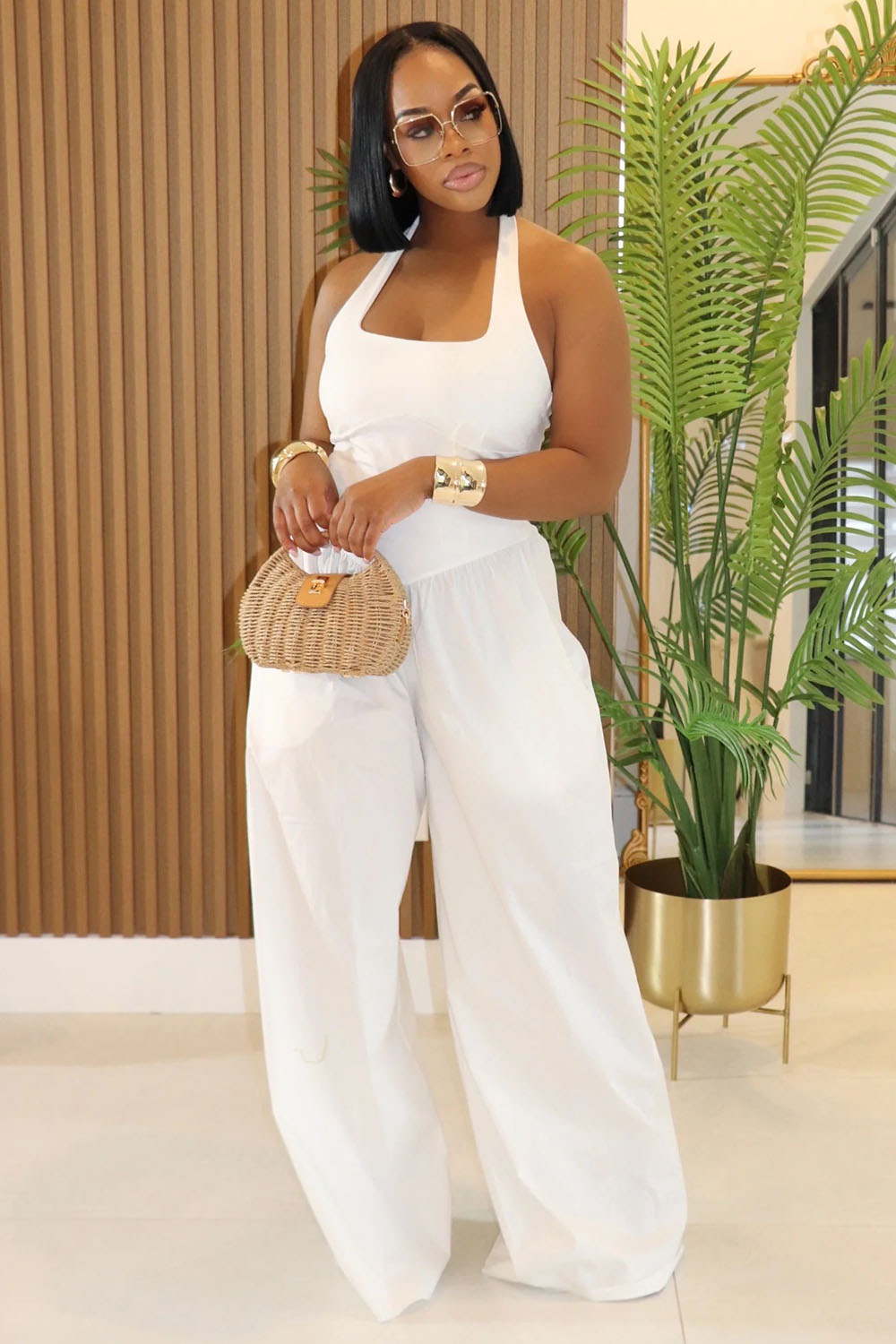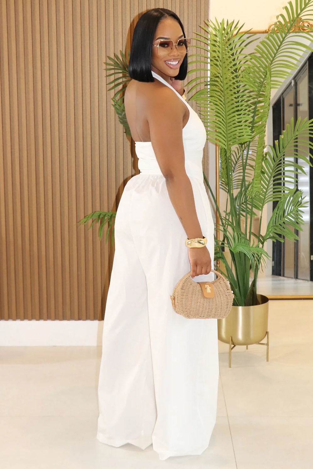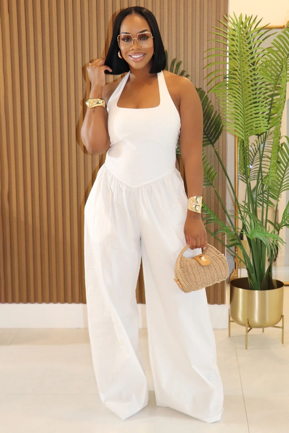 Halter Square Neck Backless Top Wide Leg Pants Jumpsuits-White