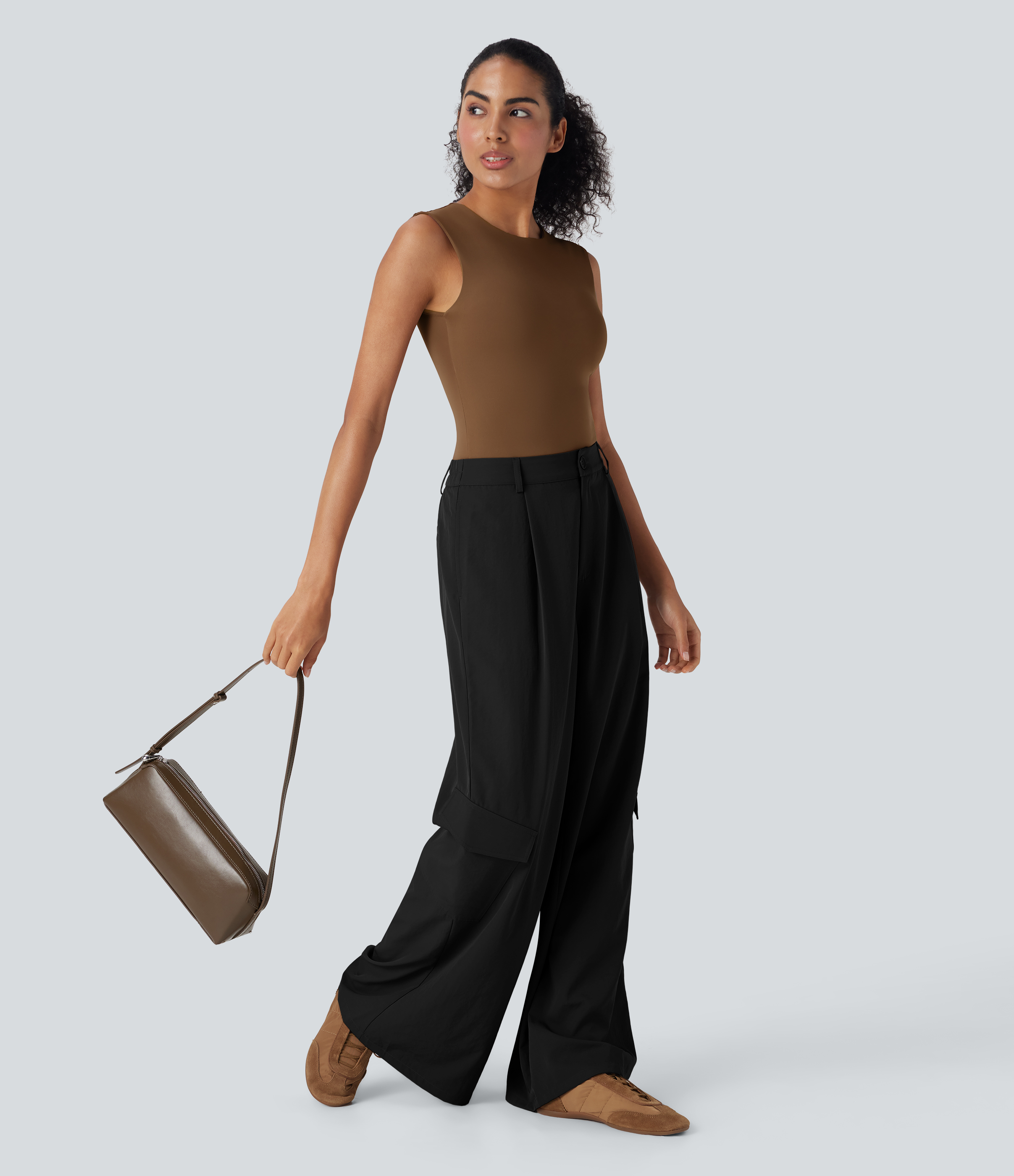 - Wide leg style gives a timeless look, while providing comfortable wear.