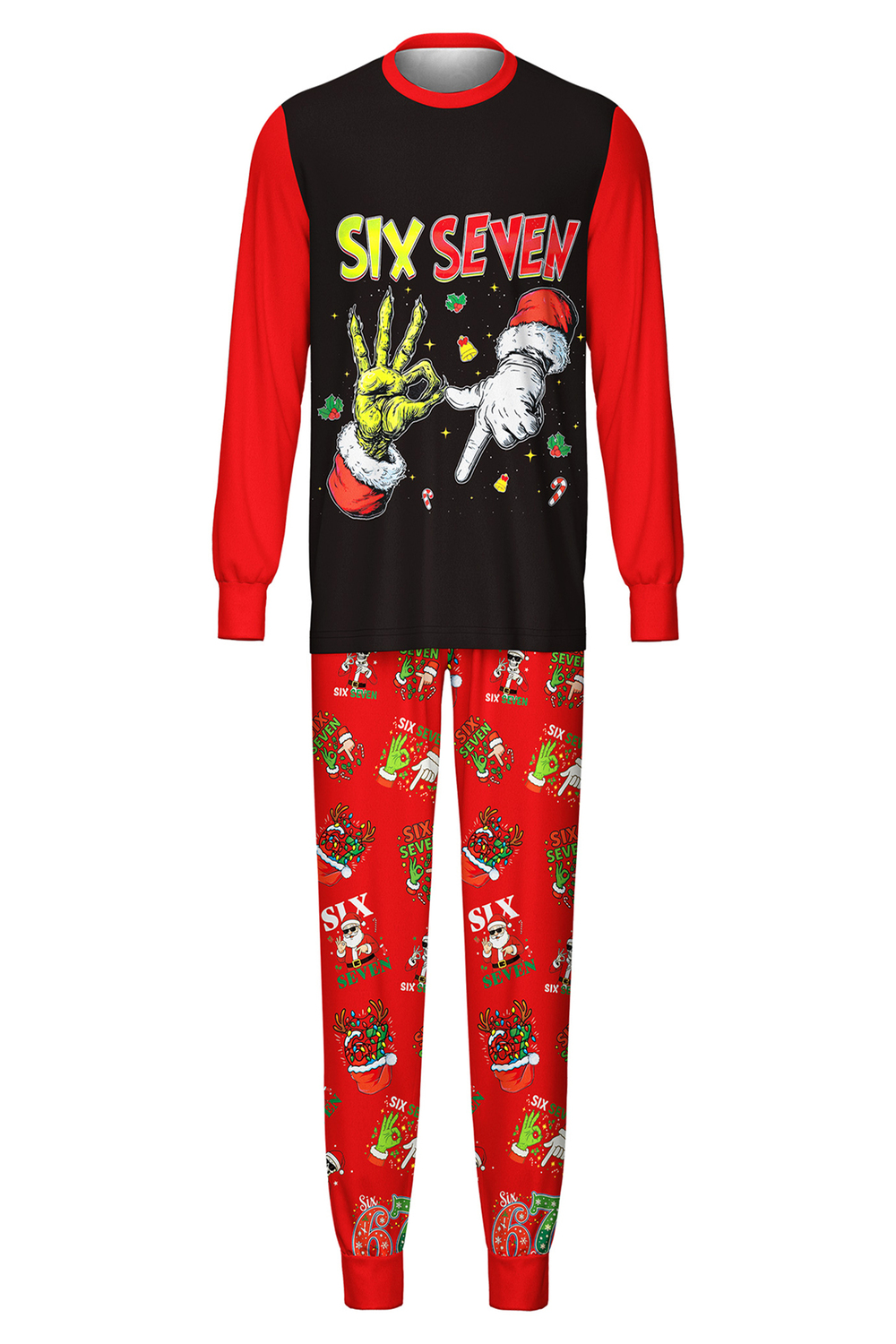 Featuring bold festive prints and the iconic Santa high-five graphic, these cozy PJs are perfect for Christmas morning photos, cozy nights by the fireplace, or hosting friends and family in style. These unique SIX SEVEN pajamas make the ultimate holiday gift.