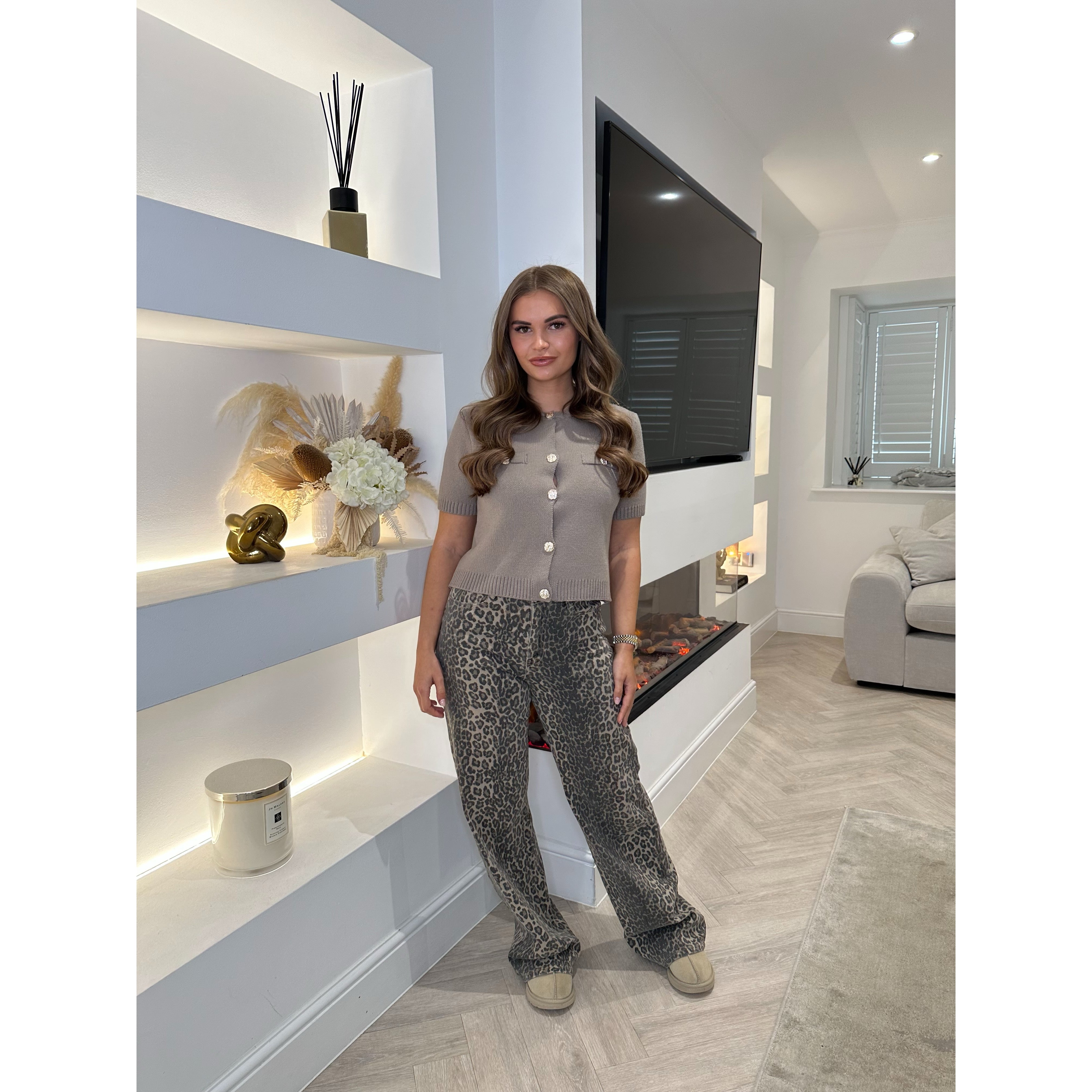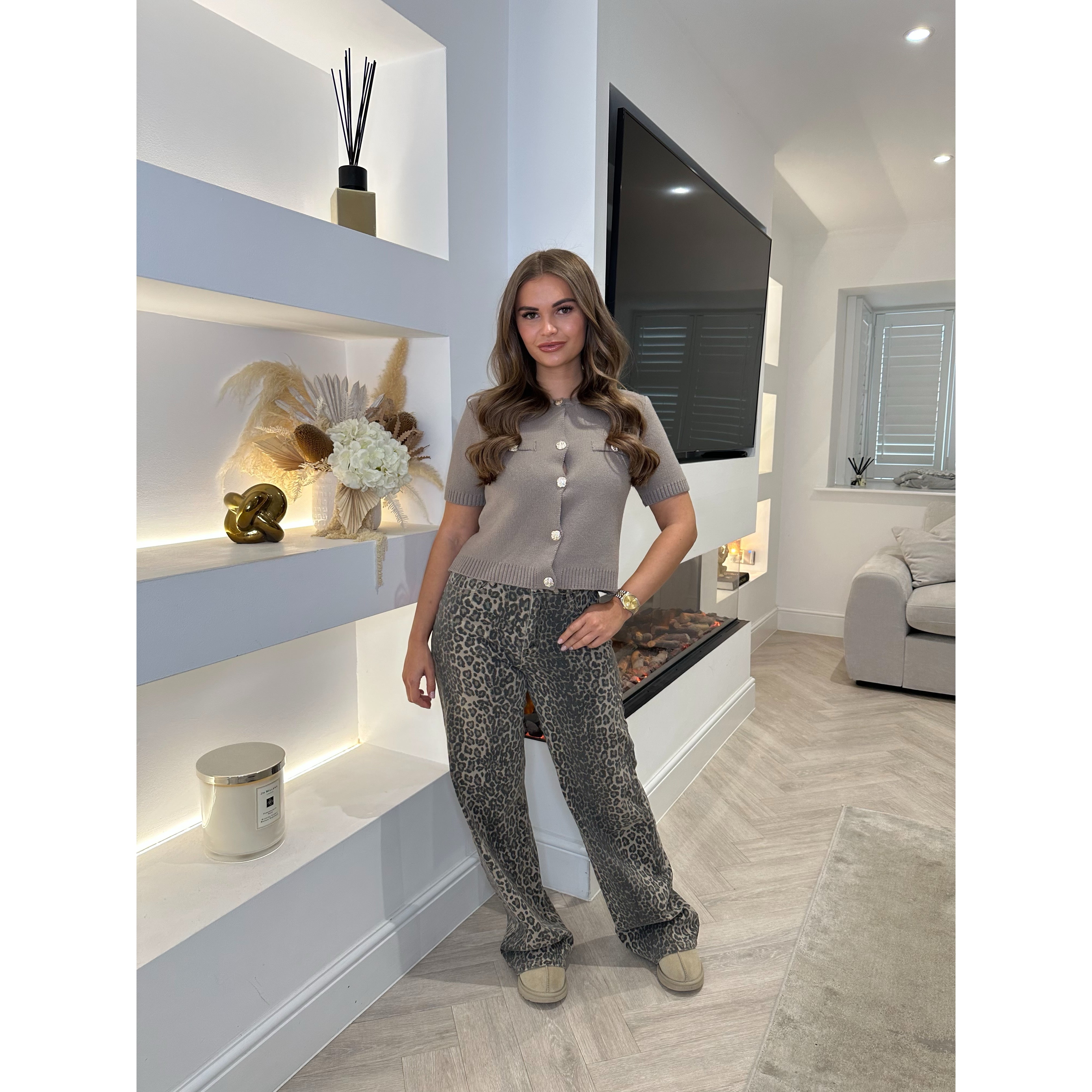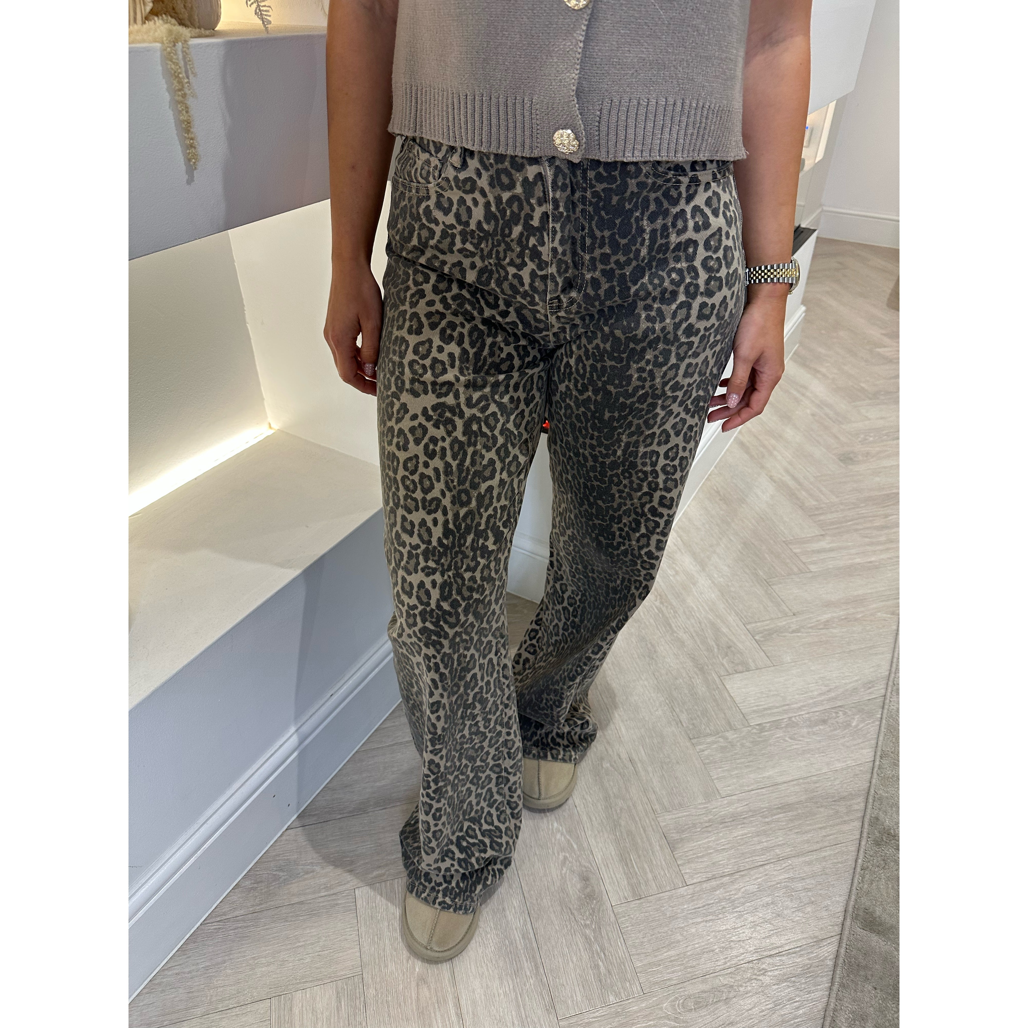 Leopard Print Straight Leg Jeans