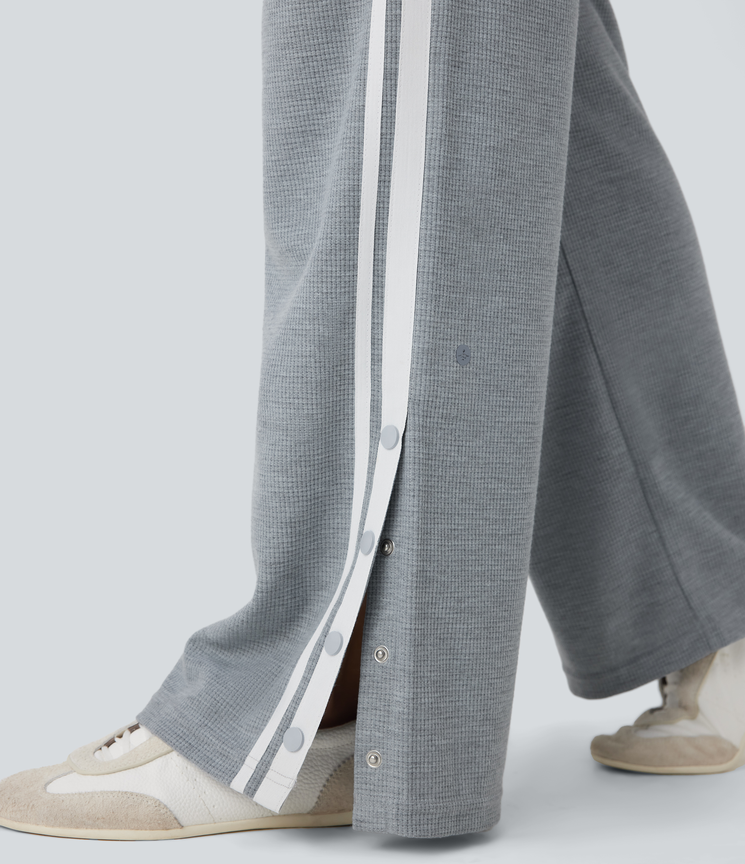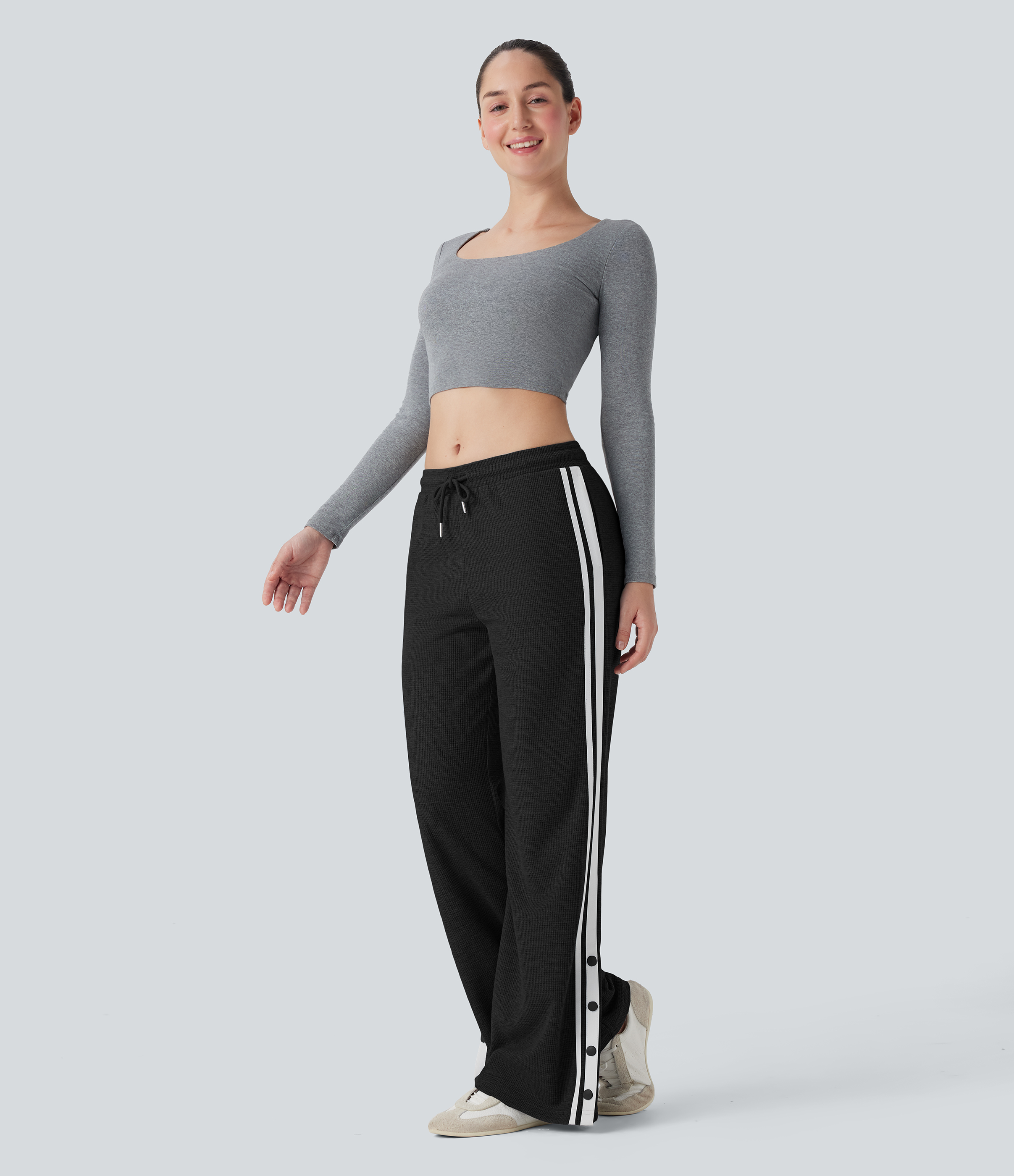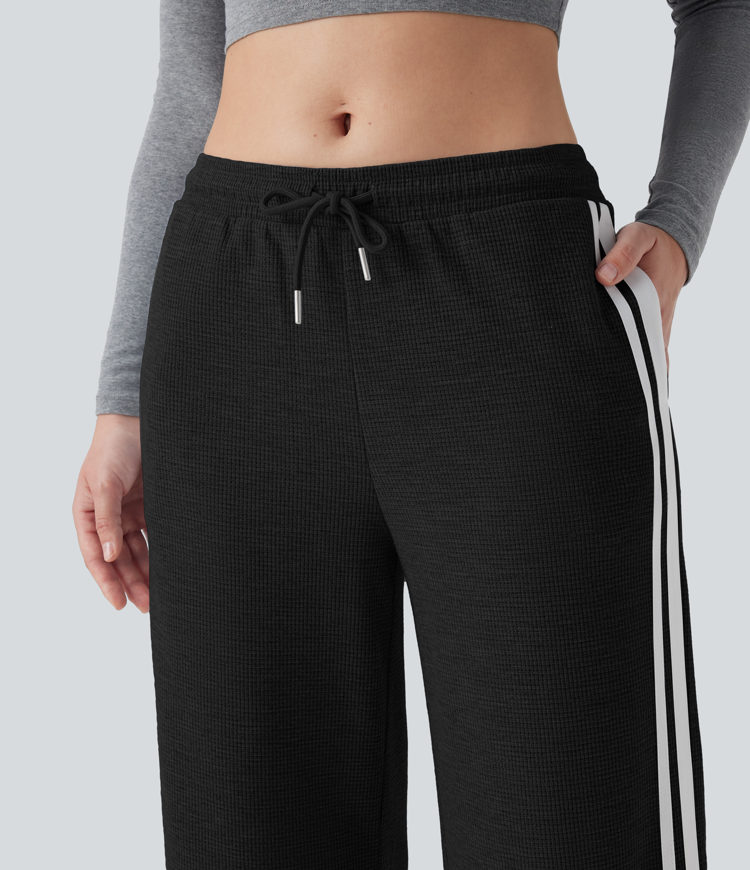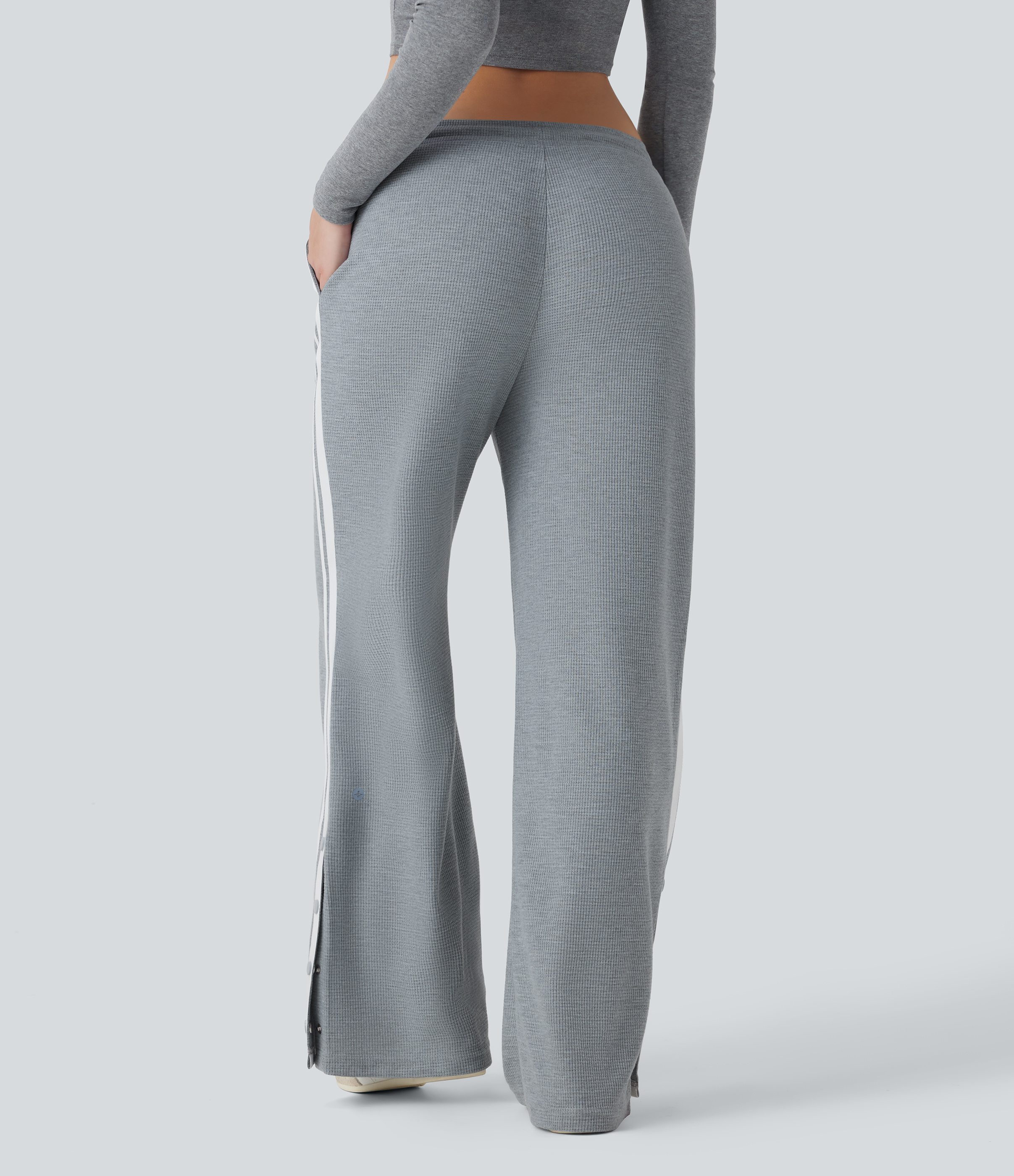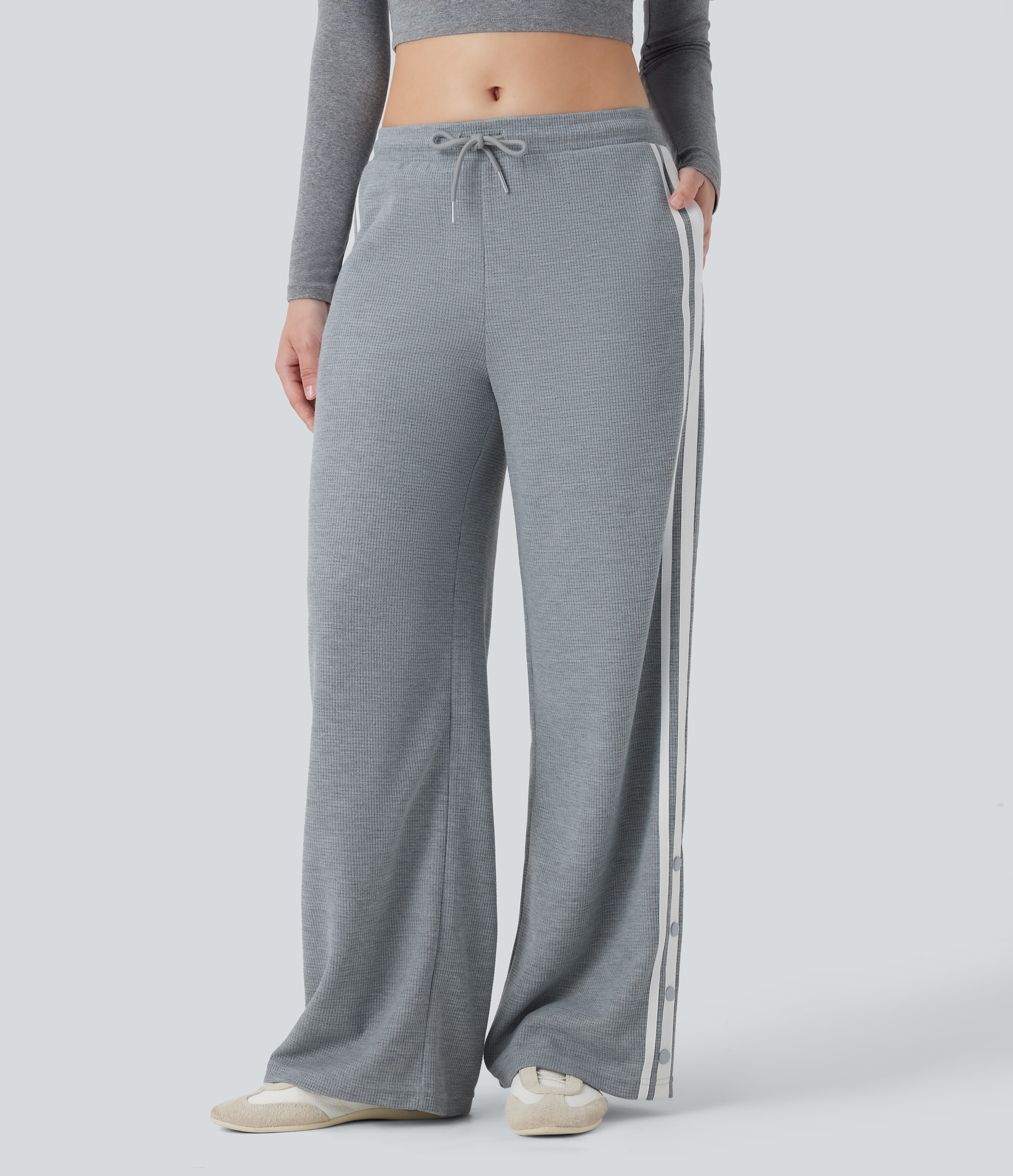 Low Rise Drawstring Color Block Snap Waffle Casual Wide Leg Pants with Pockets