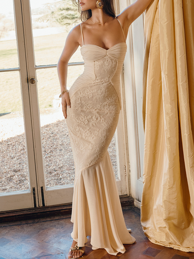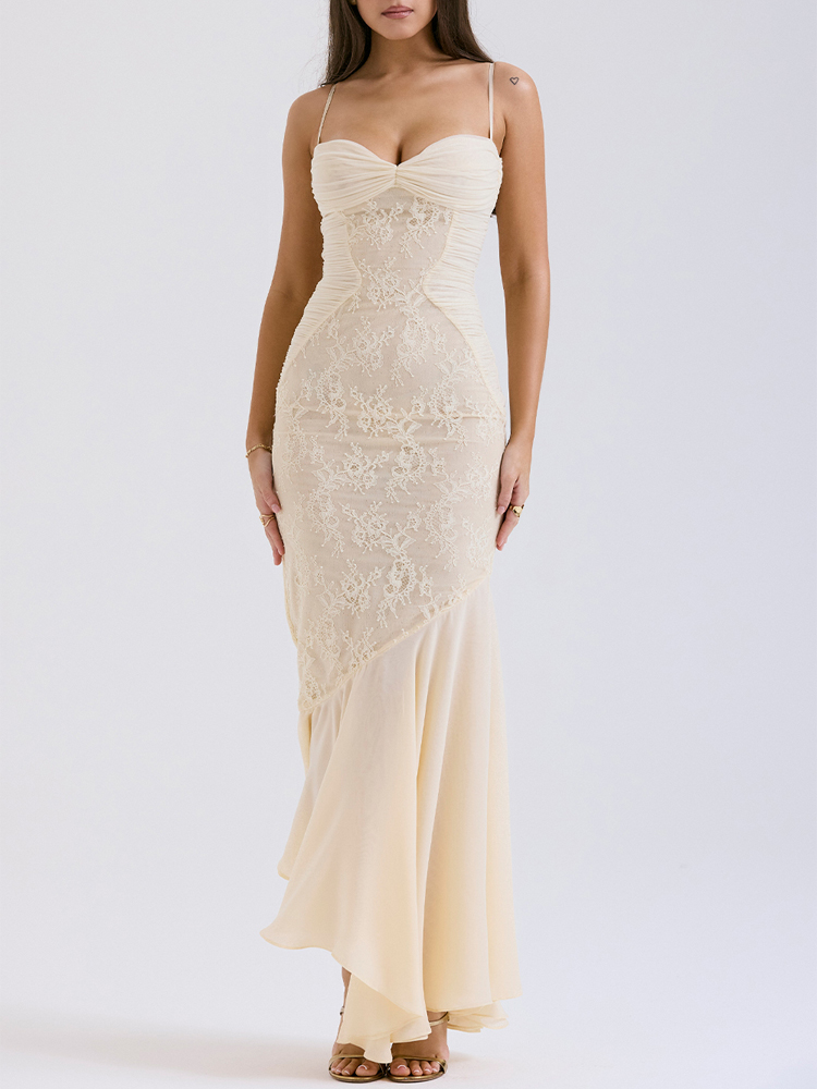 Mesh Lace Splicing Bodycon Mermaid Maxi Dress