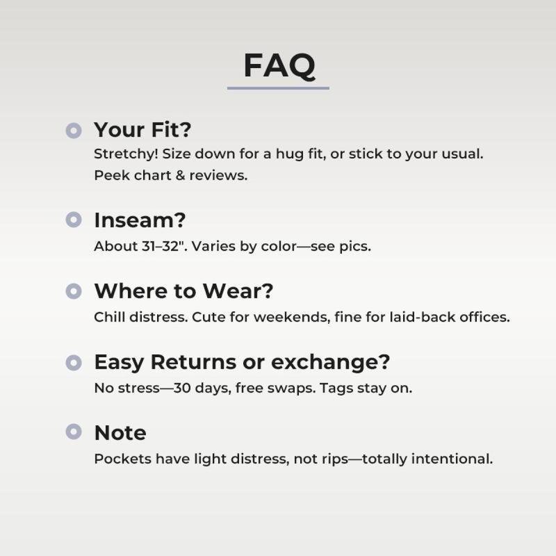 ● Fabric:LIGHTBLUE/DARK BLUE: 70%COTTON, 25%POLYESTER, 3%RAYON, 2%SPANDEXLEOPARD PRINT/Ombrae Light Blue & White: 98%COTTON, 2%SPANDEX● Front rise: 8.5"-12"(corresponding to different sizes)● Inseam: 31''-32"● The jeans has very strong elastic fabric. We recommend sizing down one size.● Please note the inseam length for these jeans. They are long so you may need to hem them or cut off the access length for the stylish frayed look.● The rise length is at the critical point of medium and low rise. Please carefully check the content of the size chart and refer to the rise lenght display of the model and in the video.● This mid-low rise jeans is a perfect blend of fashion and comfort. The design shows your waistline and highlights your figure. It has a casual fashion sense and classic denim style, making you stand out.