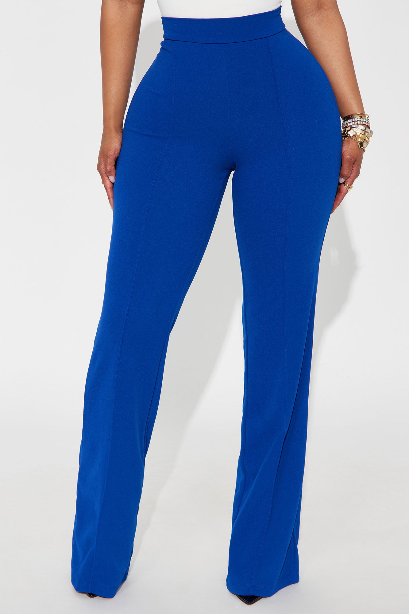 Available In Black, Charcoal, Chocolate, Navy, Red, Royal, Taupe And White.Available in Regular, Tall, and Petite InseamsPetite: 32" InseamHigh RisePintuck FrontHidden Back ZipperStretch95% Polyester 5% SpandexImported
