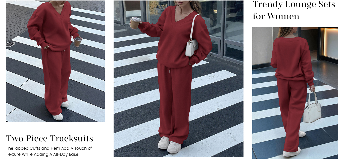 - FEATURES:The Lounge Sets for Women Feature A Trendy V Neck Pullover That Adds A Touch of Elegance to Womens Casual Look.Women's Athletic Clothing Sets Are Sweatshirt Paired with Loose Wide Leg Sweatpants Women,Offering Both Comfort and Fashion