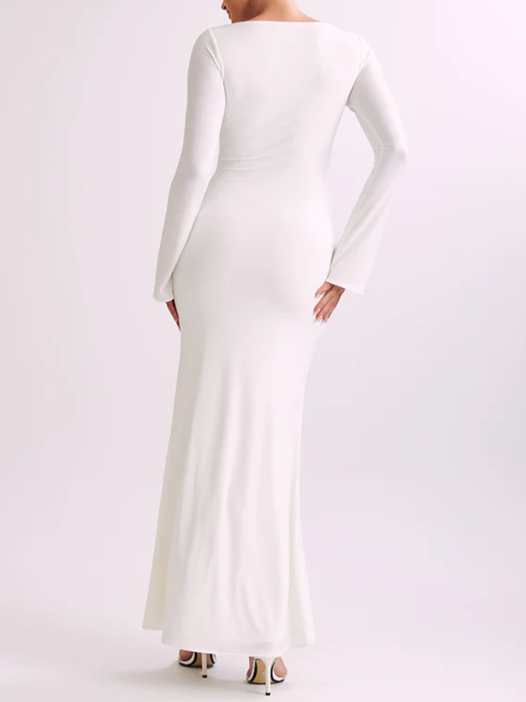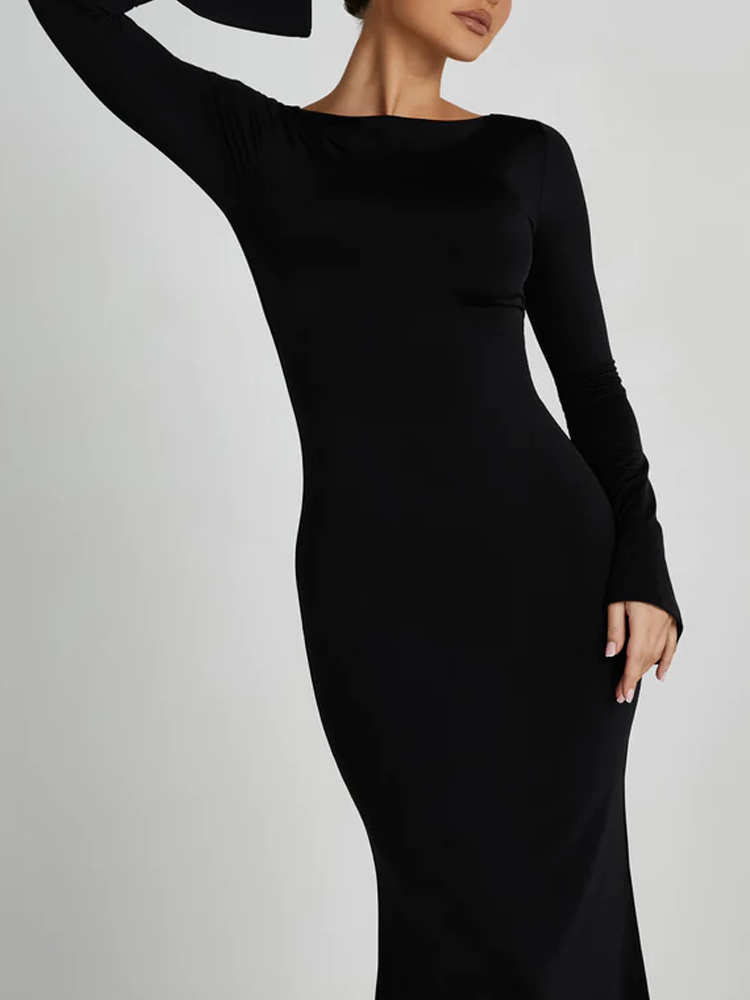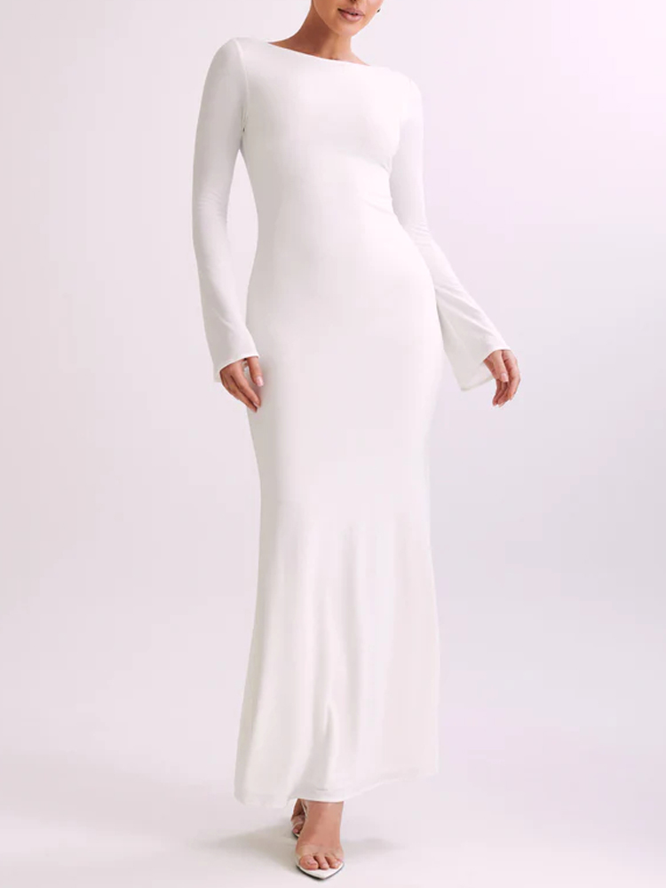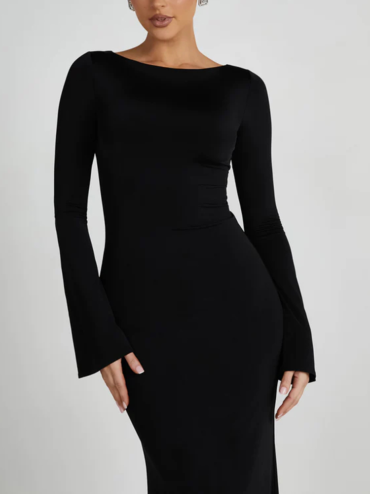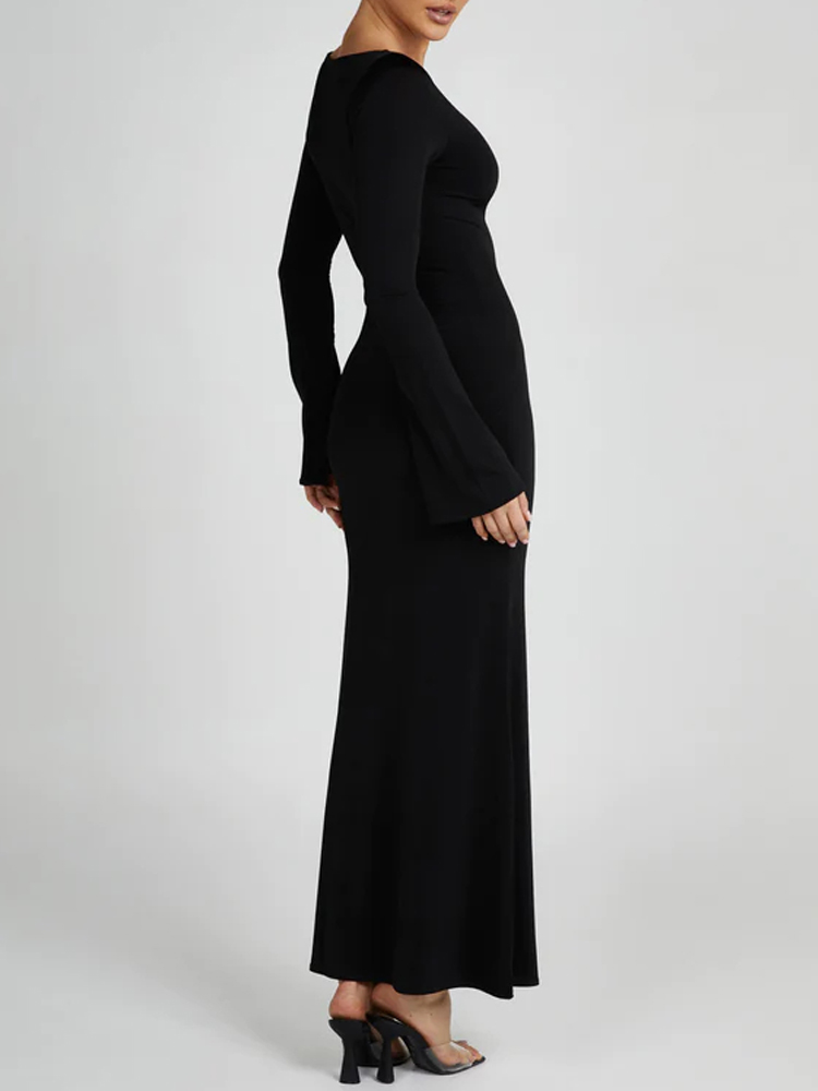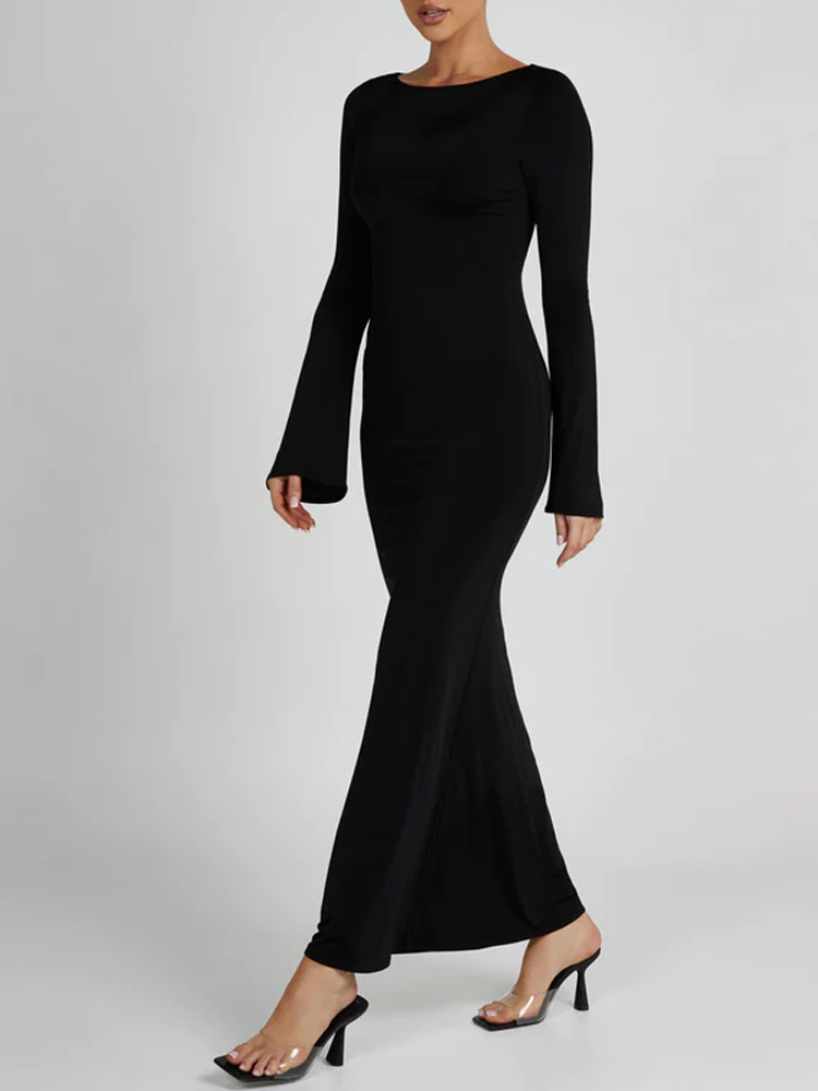 This maxi dress features a flattering round neckline and elegant flared sleeves, perfect for any party occasion. Its mermaid silhouette adds a touch of sophistication, while the soft fabric ensures comfort and style all night long. Style it with statement accessories for a polished look.