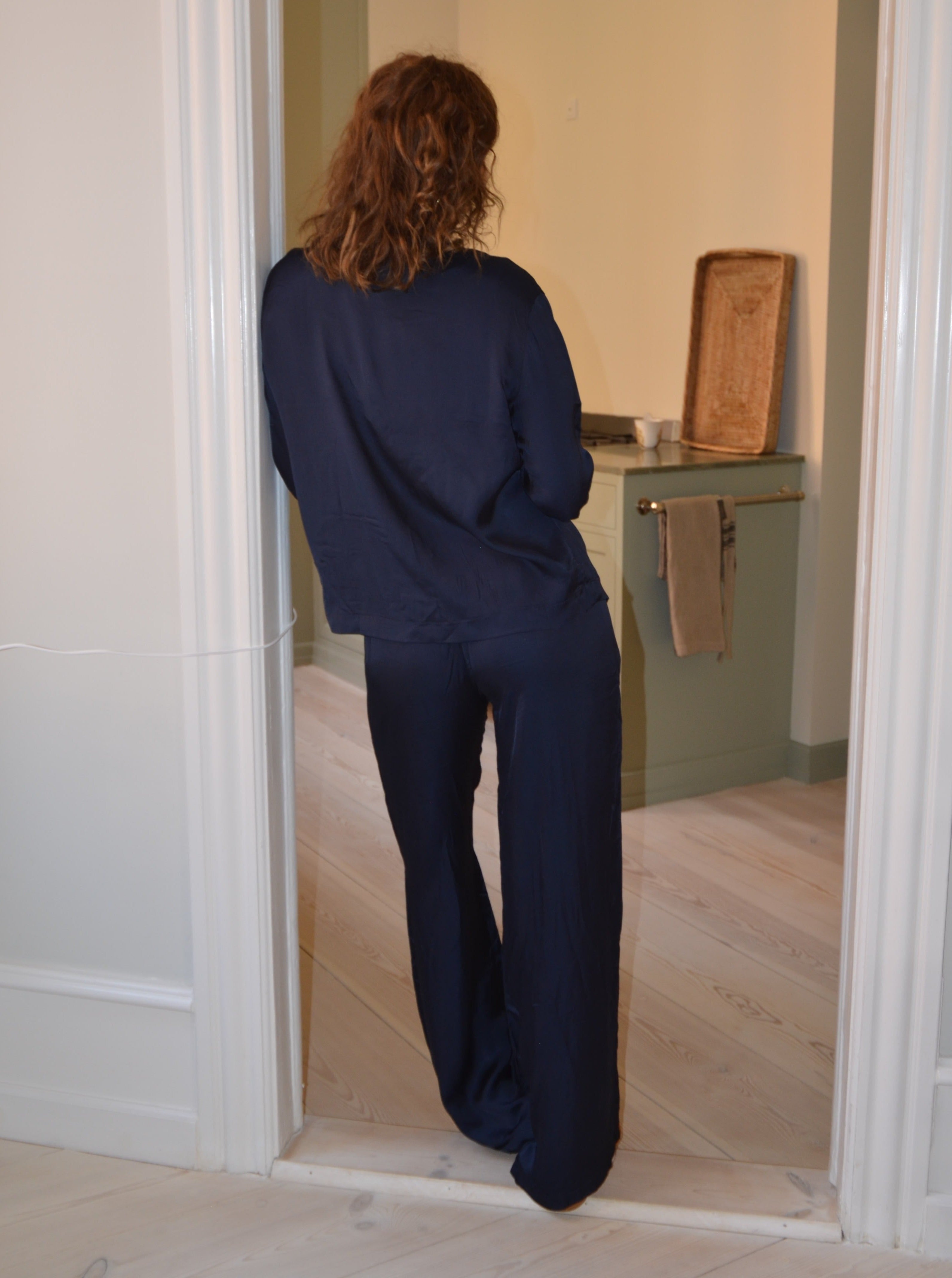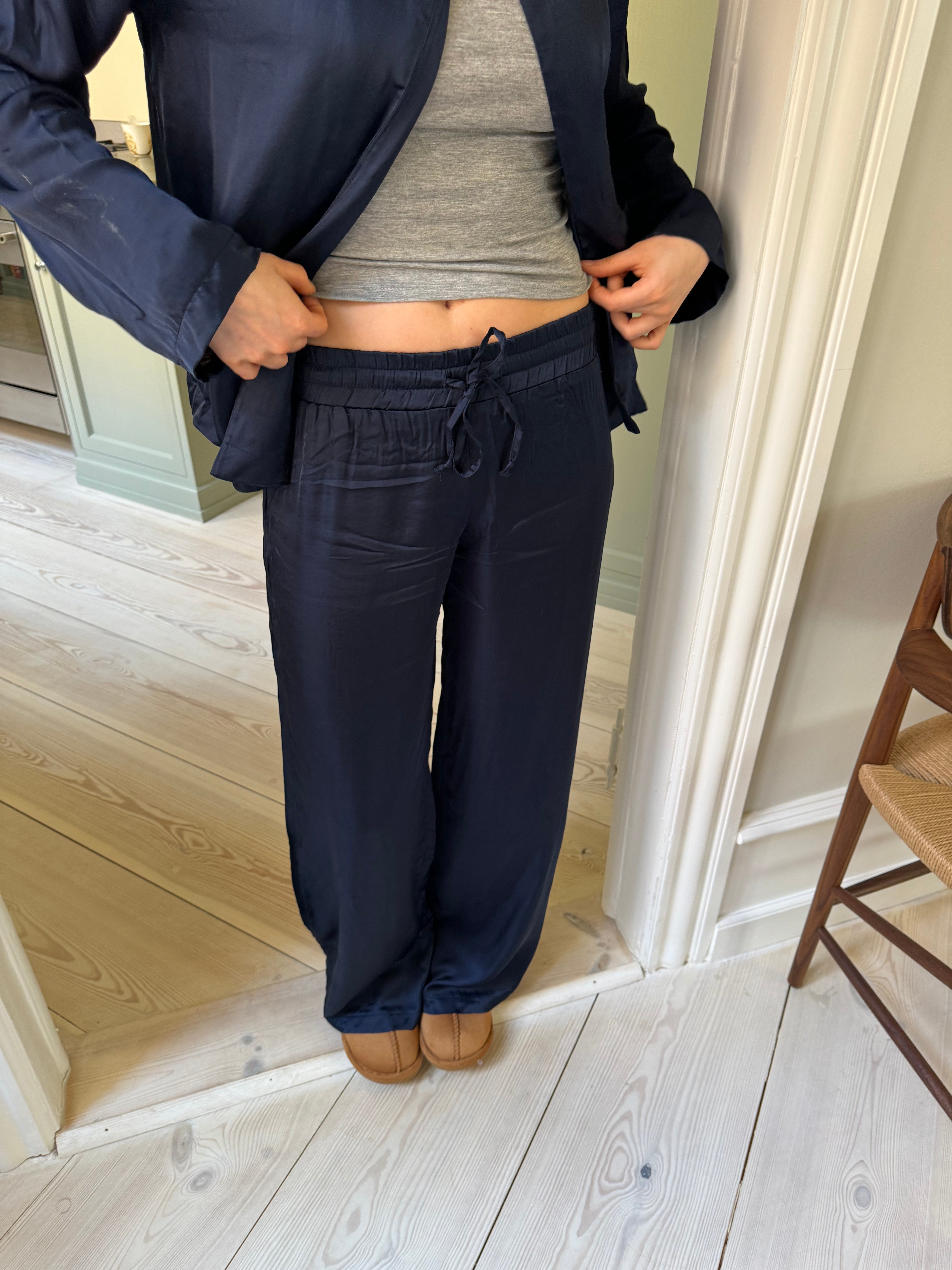 These pants are made from the softest satin material and have a loose fit. The pants have an elastic waist, which makes them super comfortable. They can be used at home as pajama pants or for everyday use. It fits perfectly with our Callie satin cardigan.