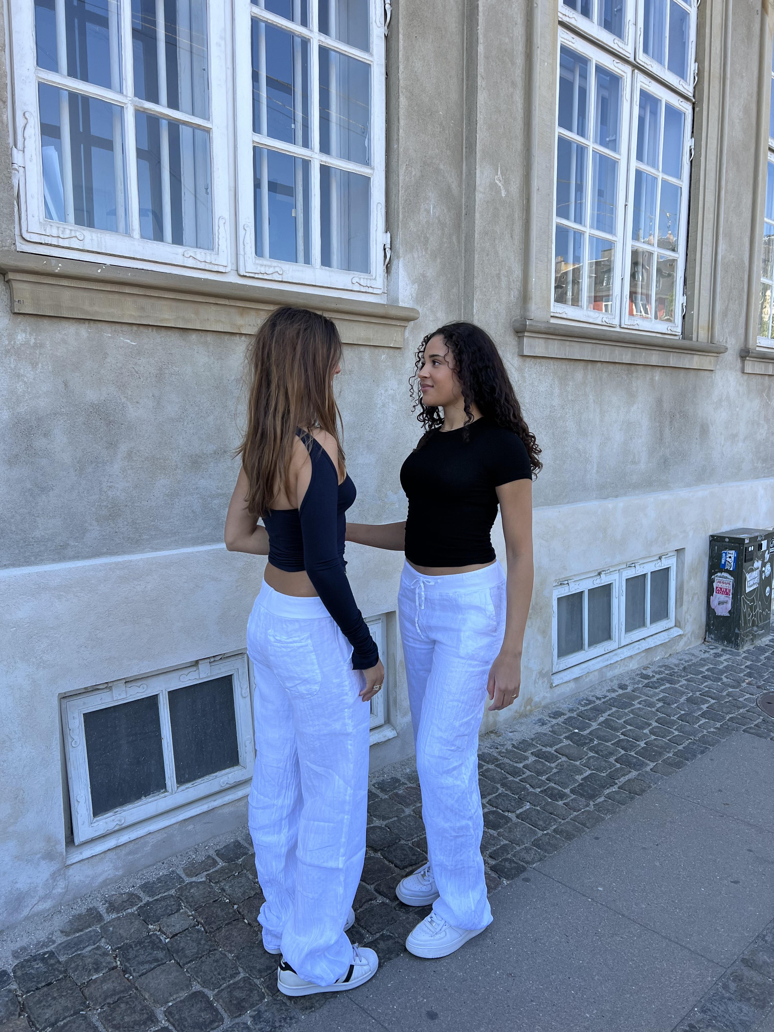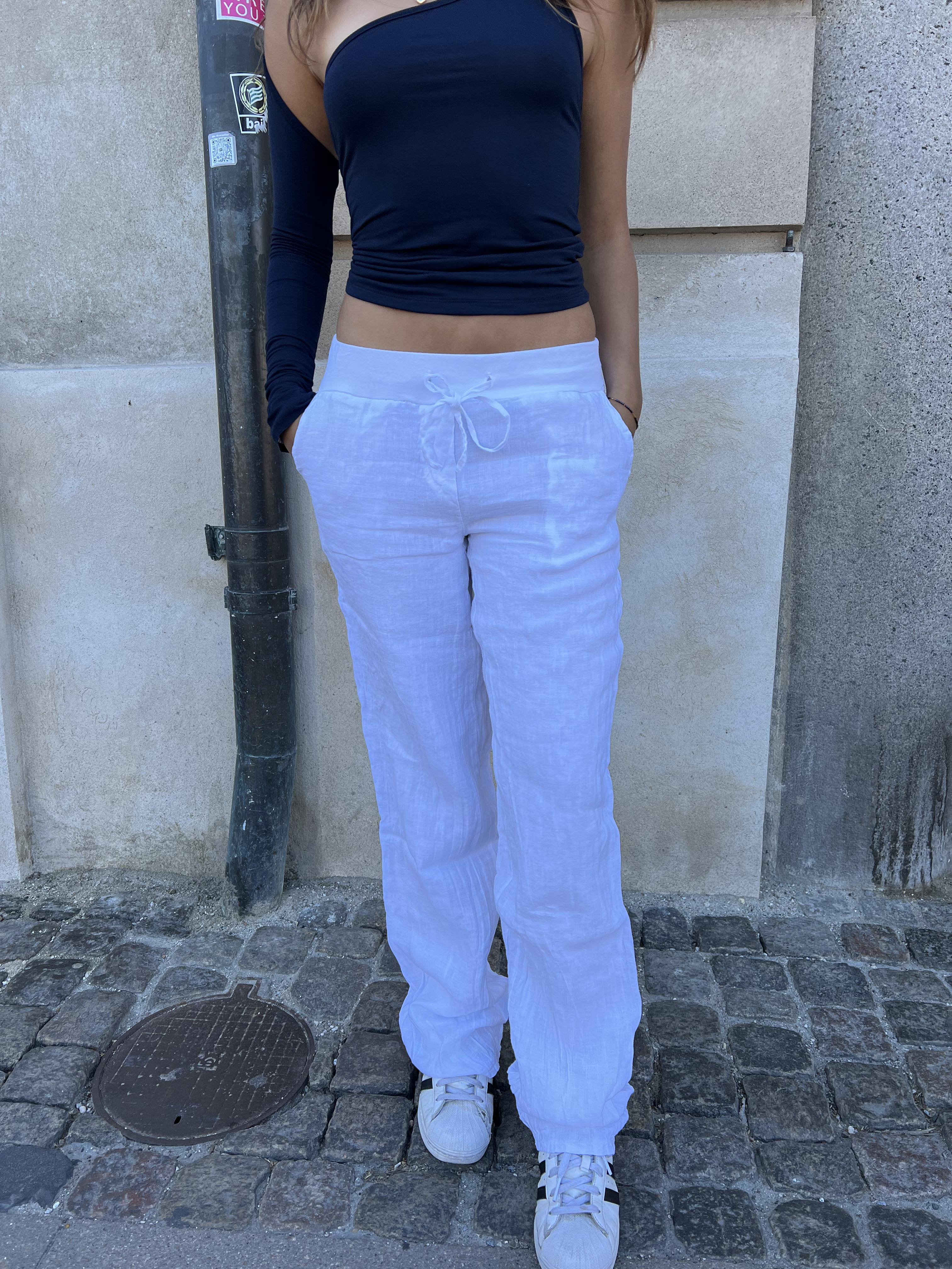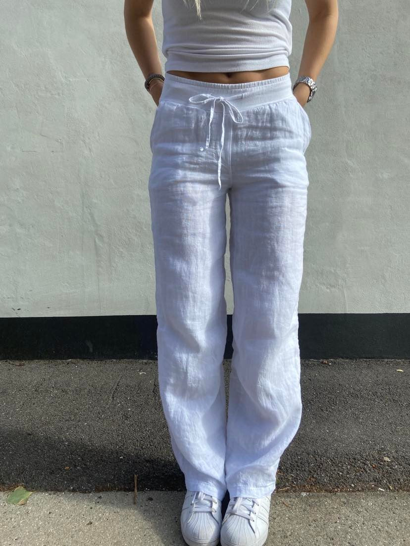 Straight fit linen pants with a double layer. We've added pockets on the sides and back for a unique look. In addition, our Angel pants have an elastic waistband hidden by cotton fabric and a drawstring for size adjustment. The perfect lightweight pants that can be styled up or down and both mid and low-waist!