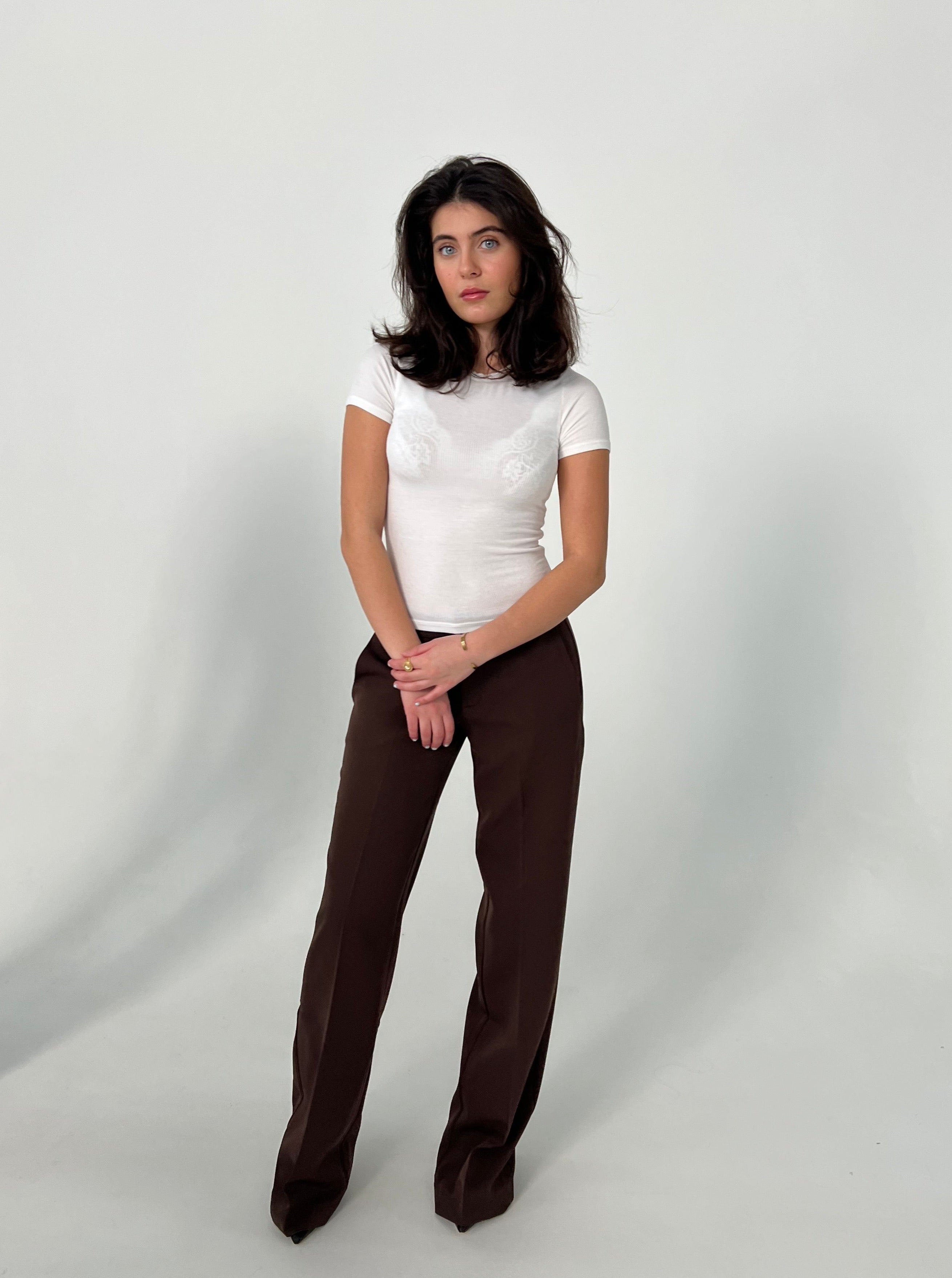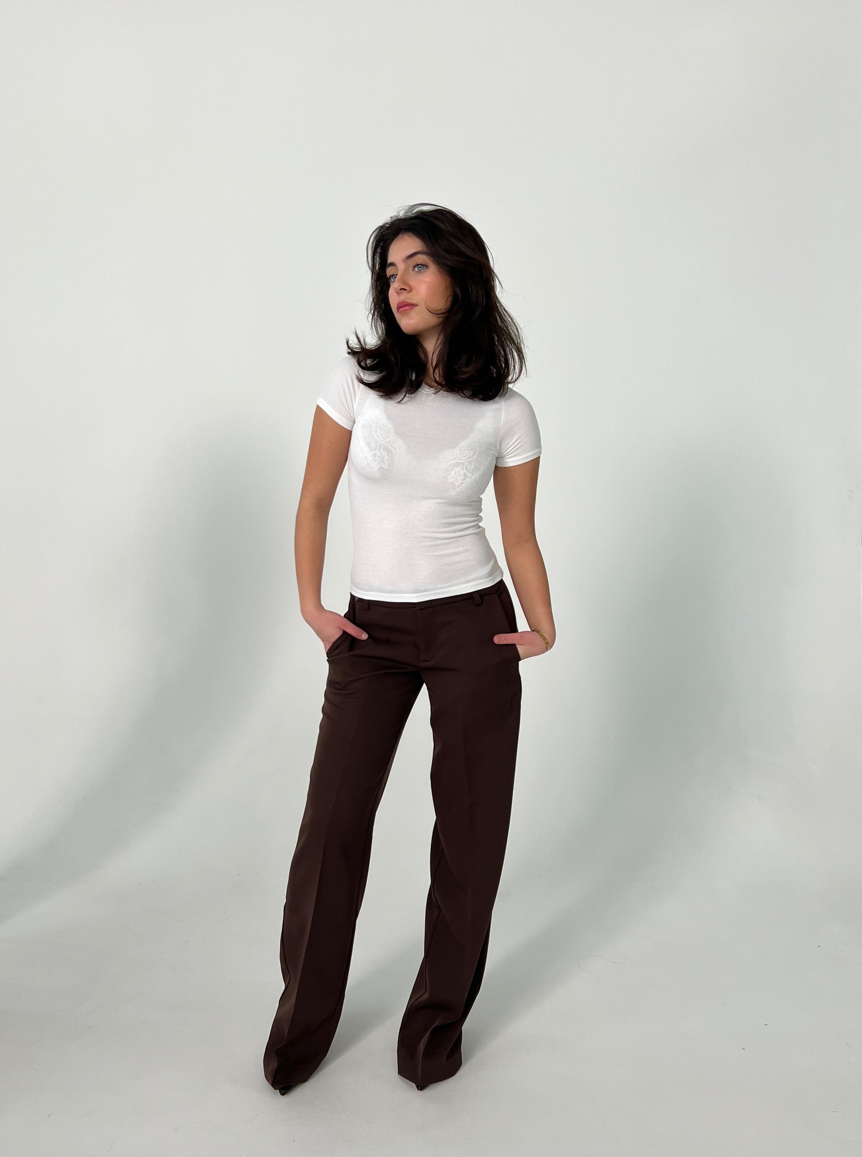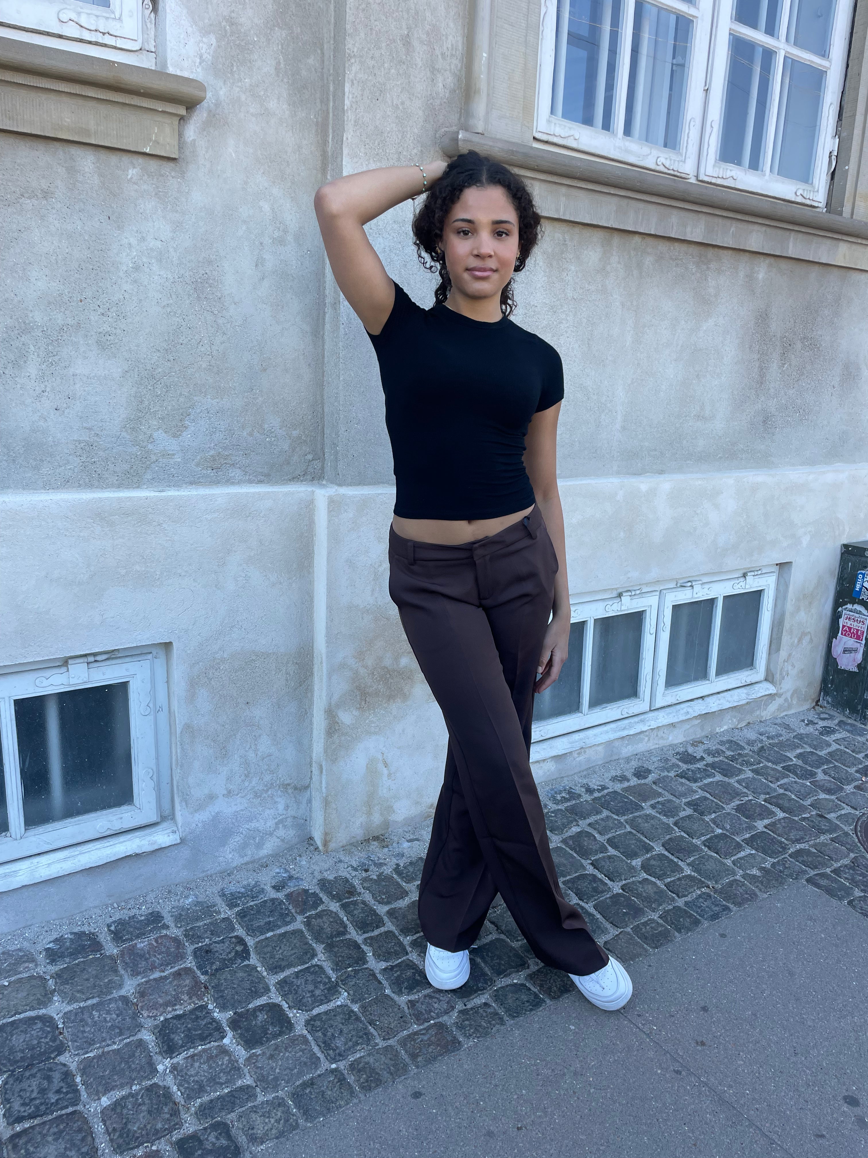 These low-waisted suit pants are the perfect pants for both everyday and a night out. The pants have a straight fit and a low waist. The pants have decorative pockets at the back with buttons and classic pockets on each leg.