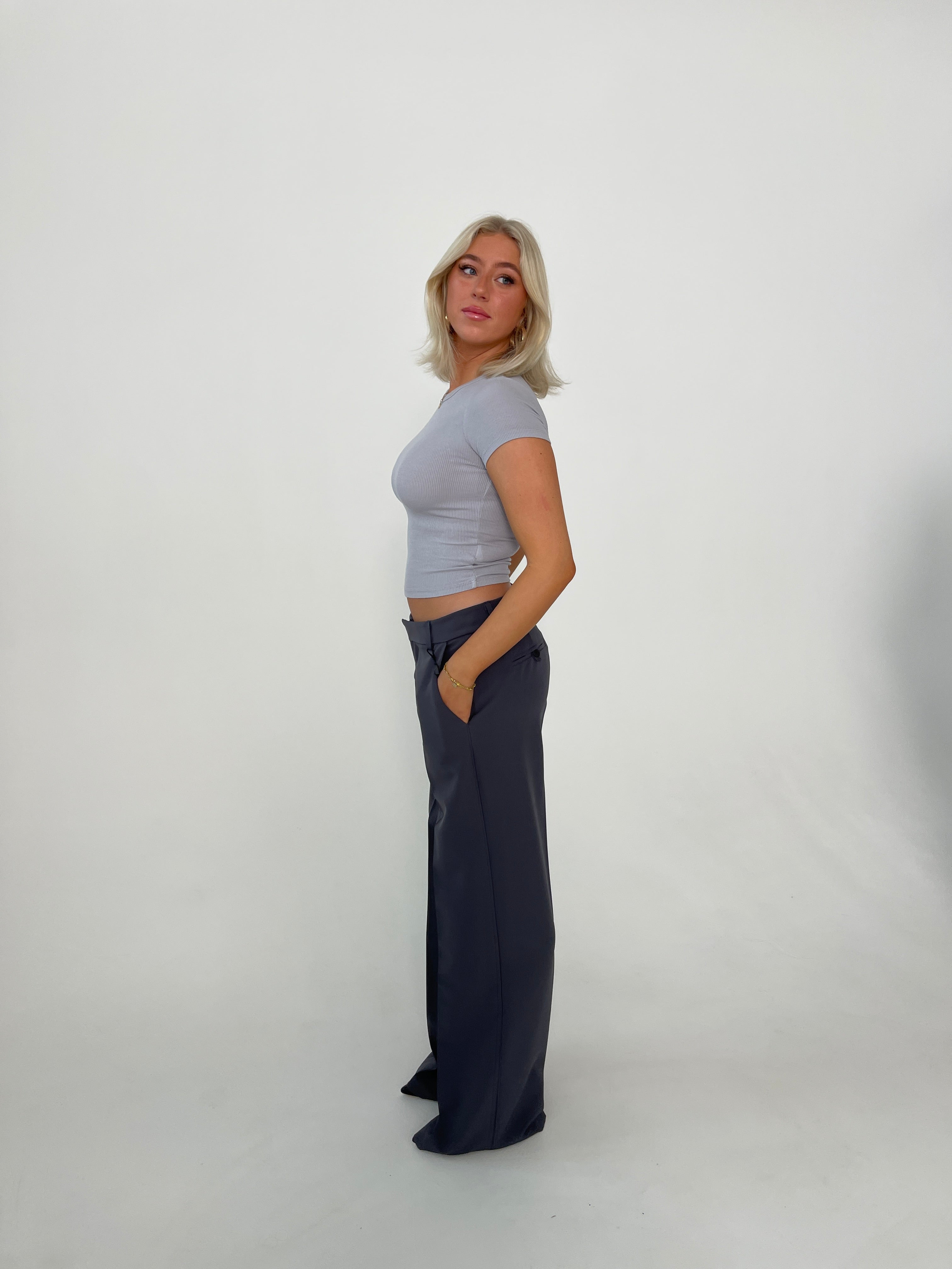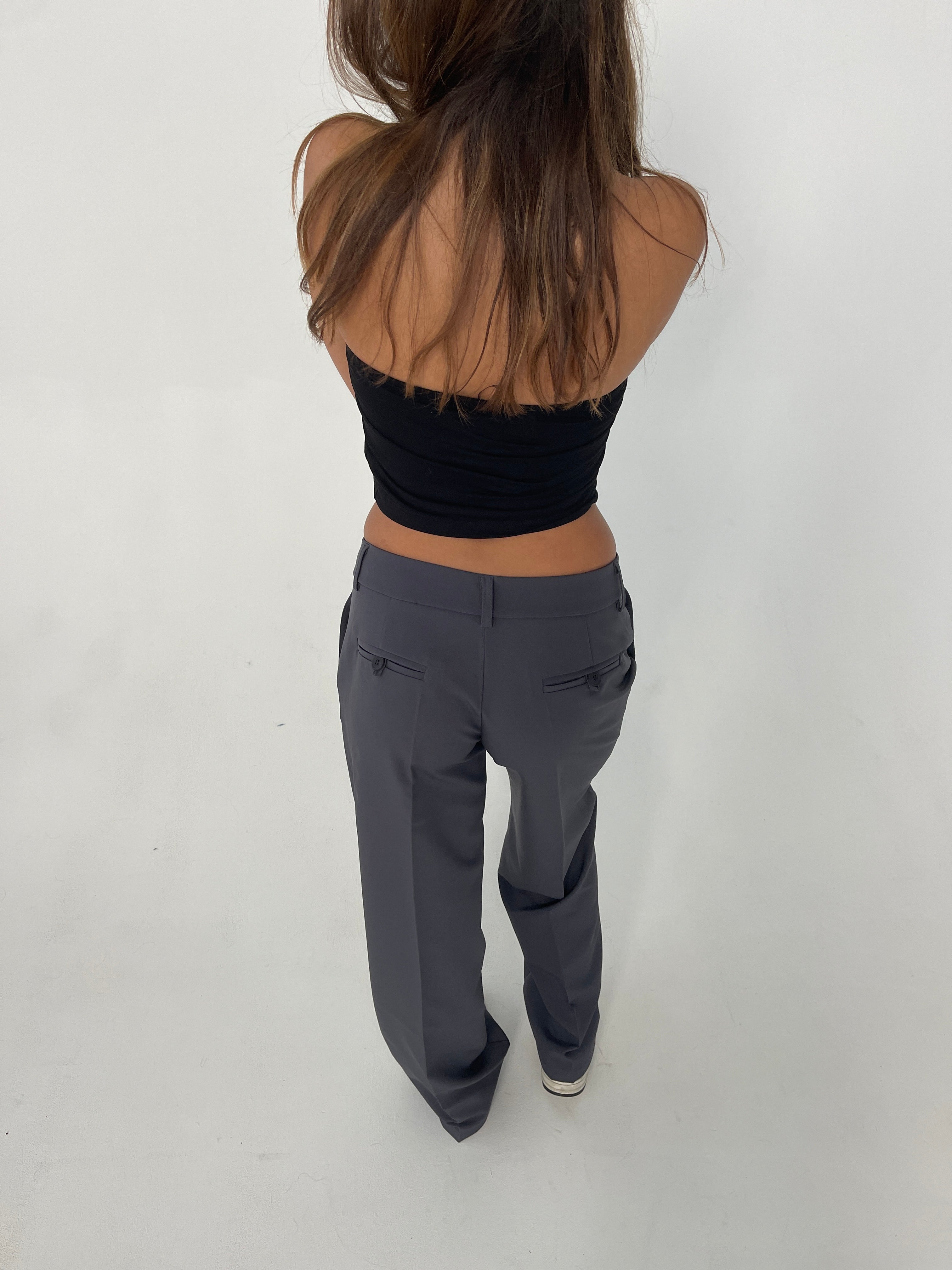 These low-waisted suit pants are the perfect pants for both everyday and a night out. The pants have a straight fit and a low waist. The pants have decorative pockets at the back with buttons and classic pockets on each leg.