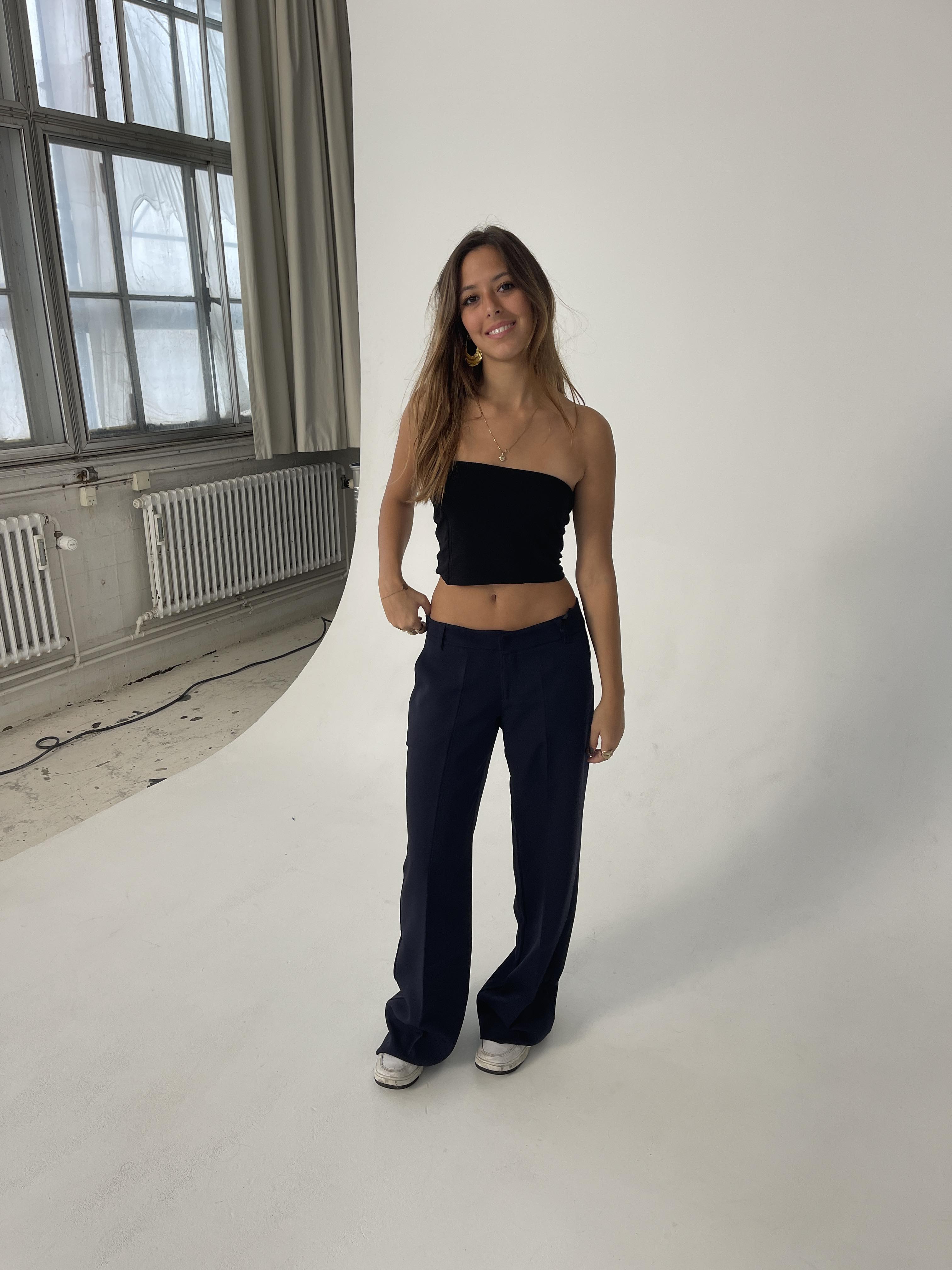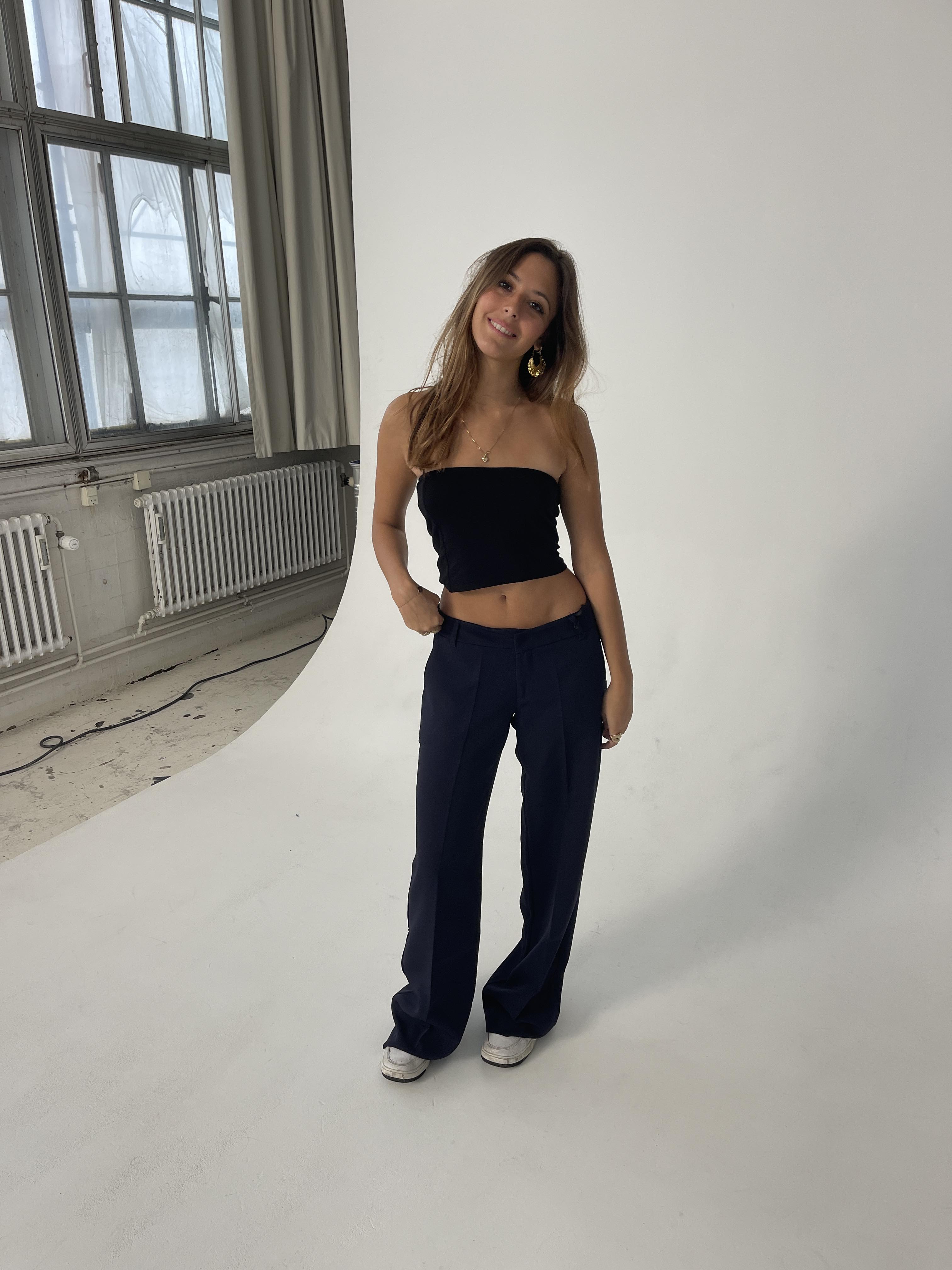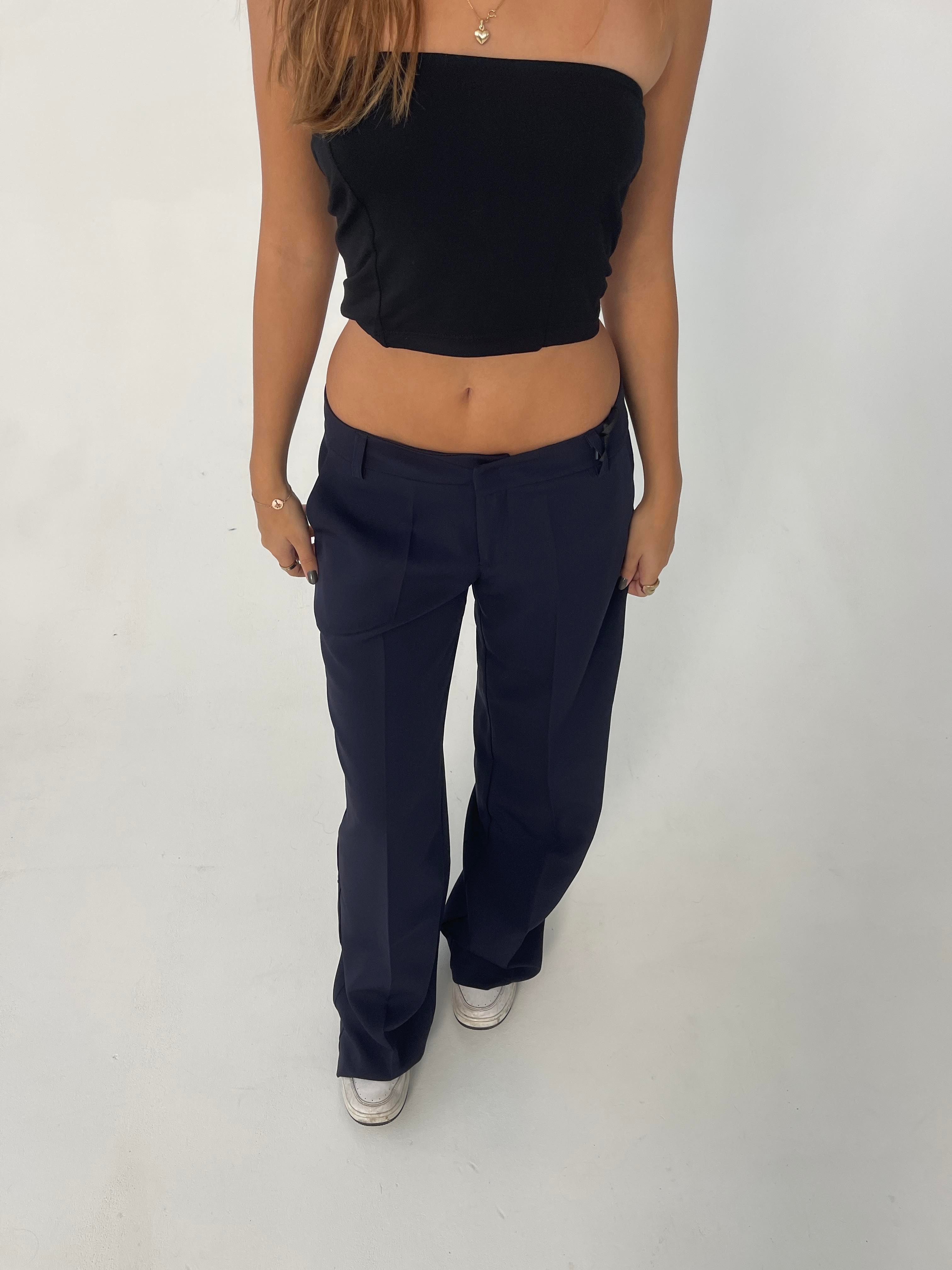 These low-waisted suit pants are the perfect pants for both everyday and a night out. The pants have a straight fit and a low waist. The pants have decorative pockets at the back with buttons and classic pockets on each leg.