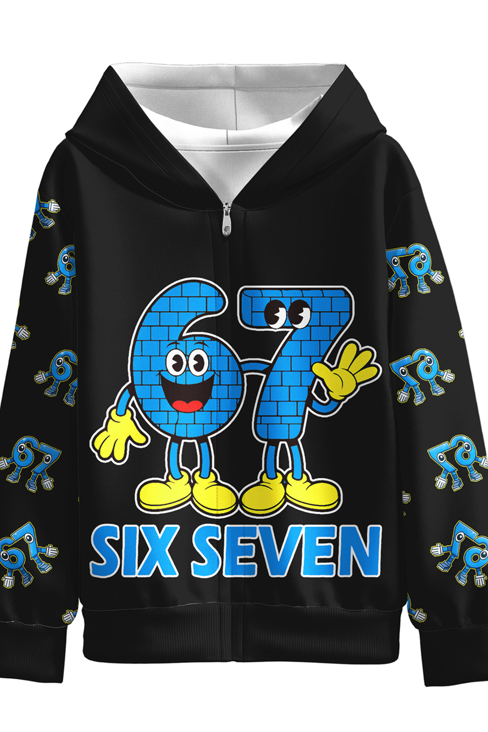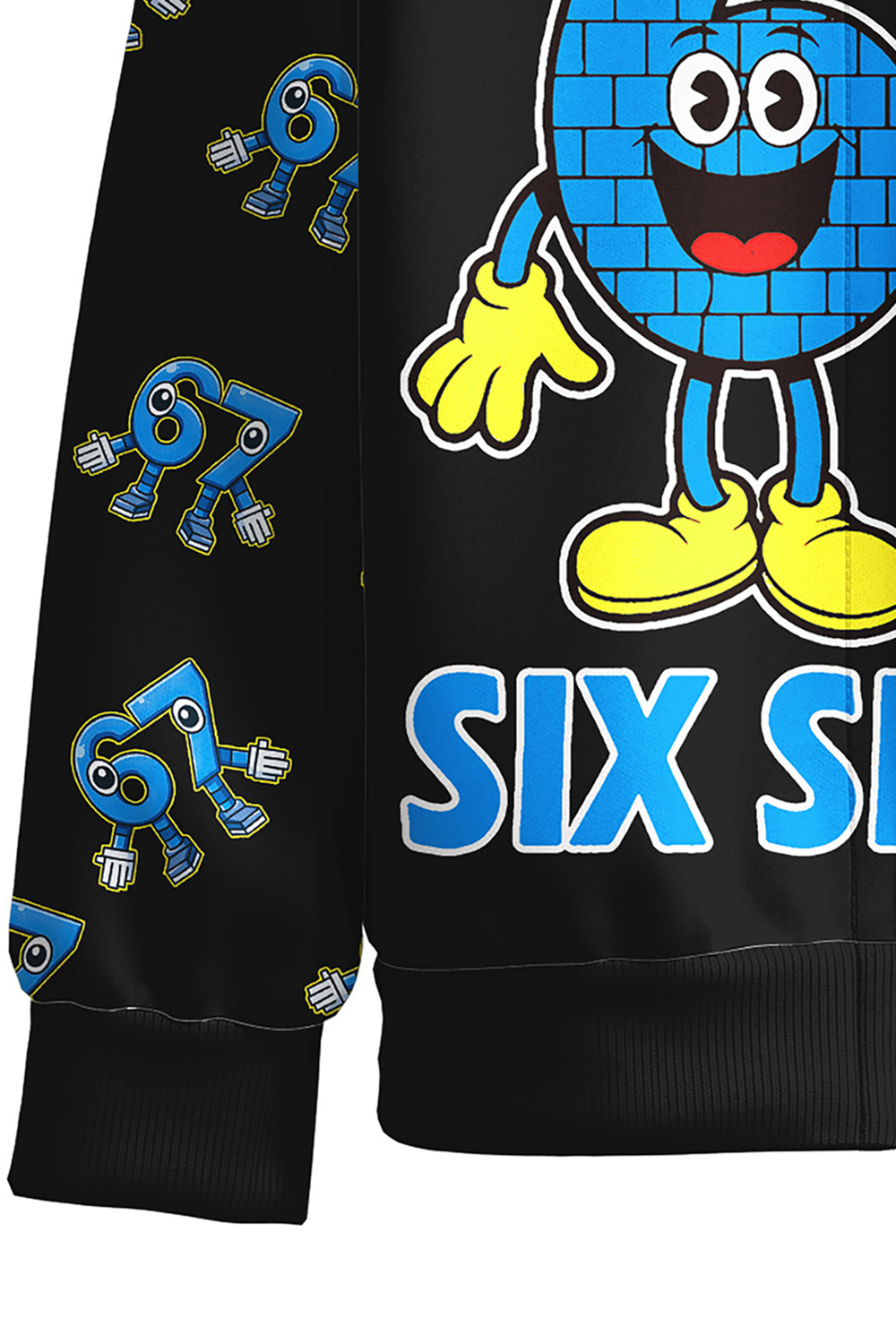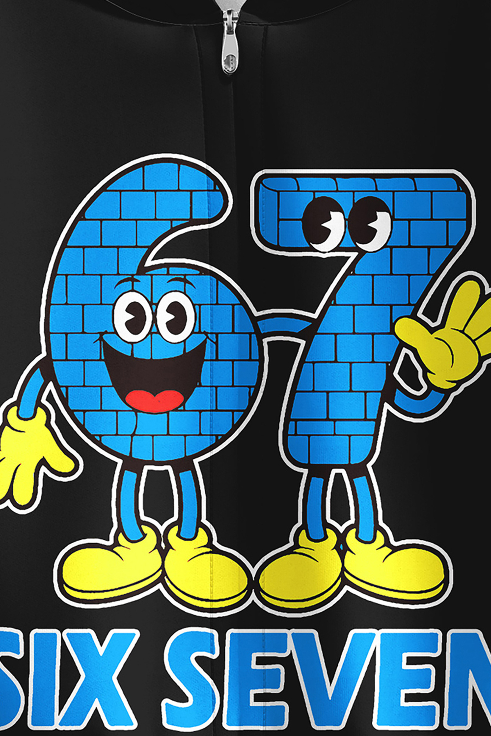 Featuring the iconic blue-brick numbers 6 and 7 with fun googly eyes and bold yellow gloves, this black hoodie is a total vibe. Perfect for everyday adventures, playground hangs, or just looking extra fresh. These unique SIX SEVEN hoodies make the ultimate holiday gift.