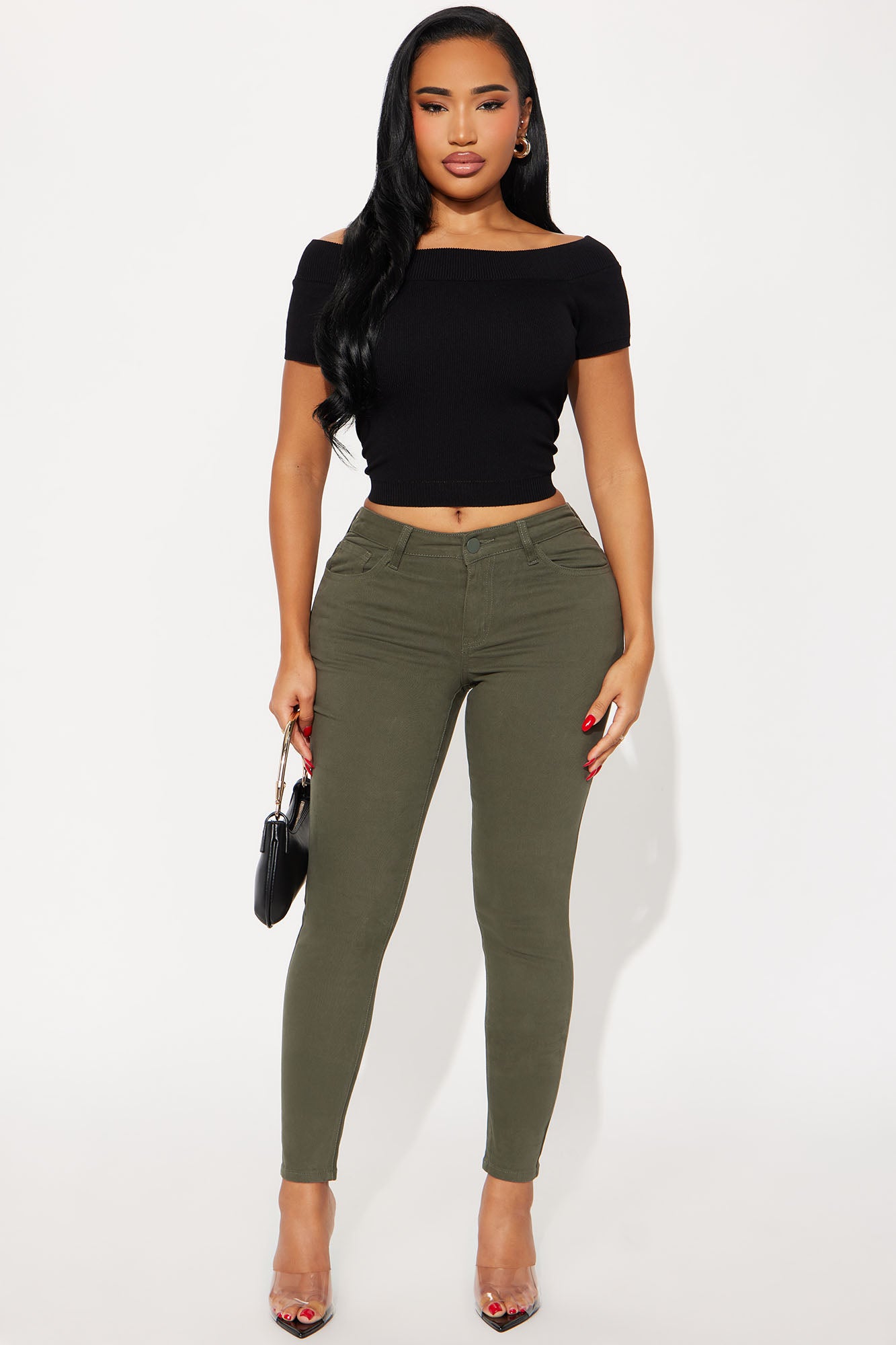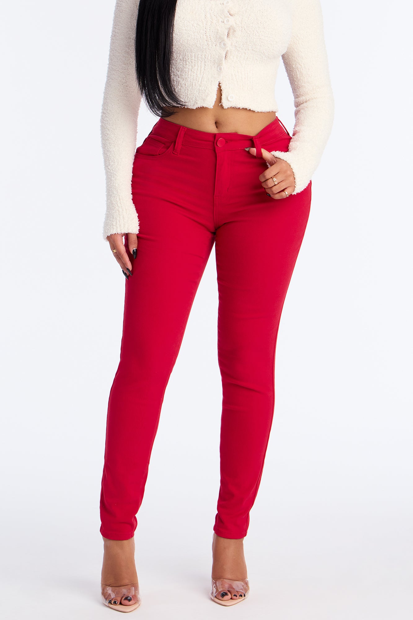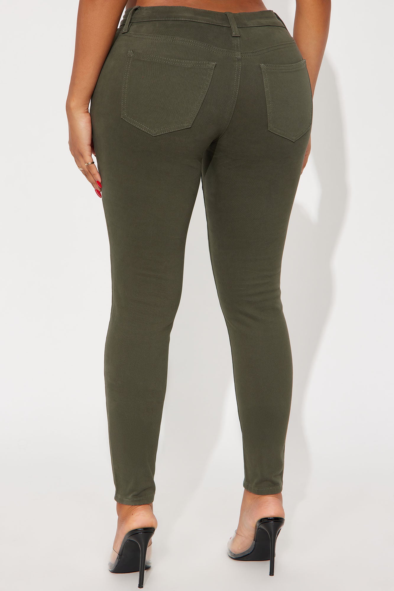 Available In Black, Burgundy, Coco, Khaki, Military Green, Navy, Red And Rust.Skinny Leg PantMid Rise5 Pocket DesignStretch MaterialDisclaimer: Due To The Specialized Wash Process, Each garment Is Unique98% Cotton 2% SpandexImported