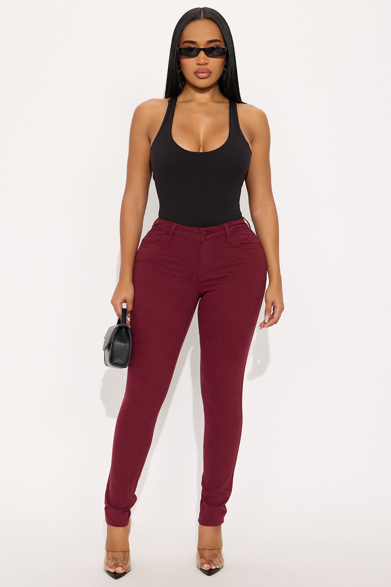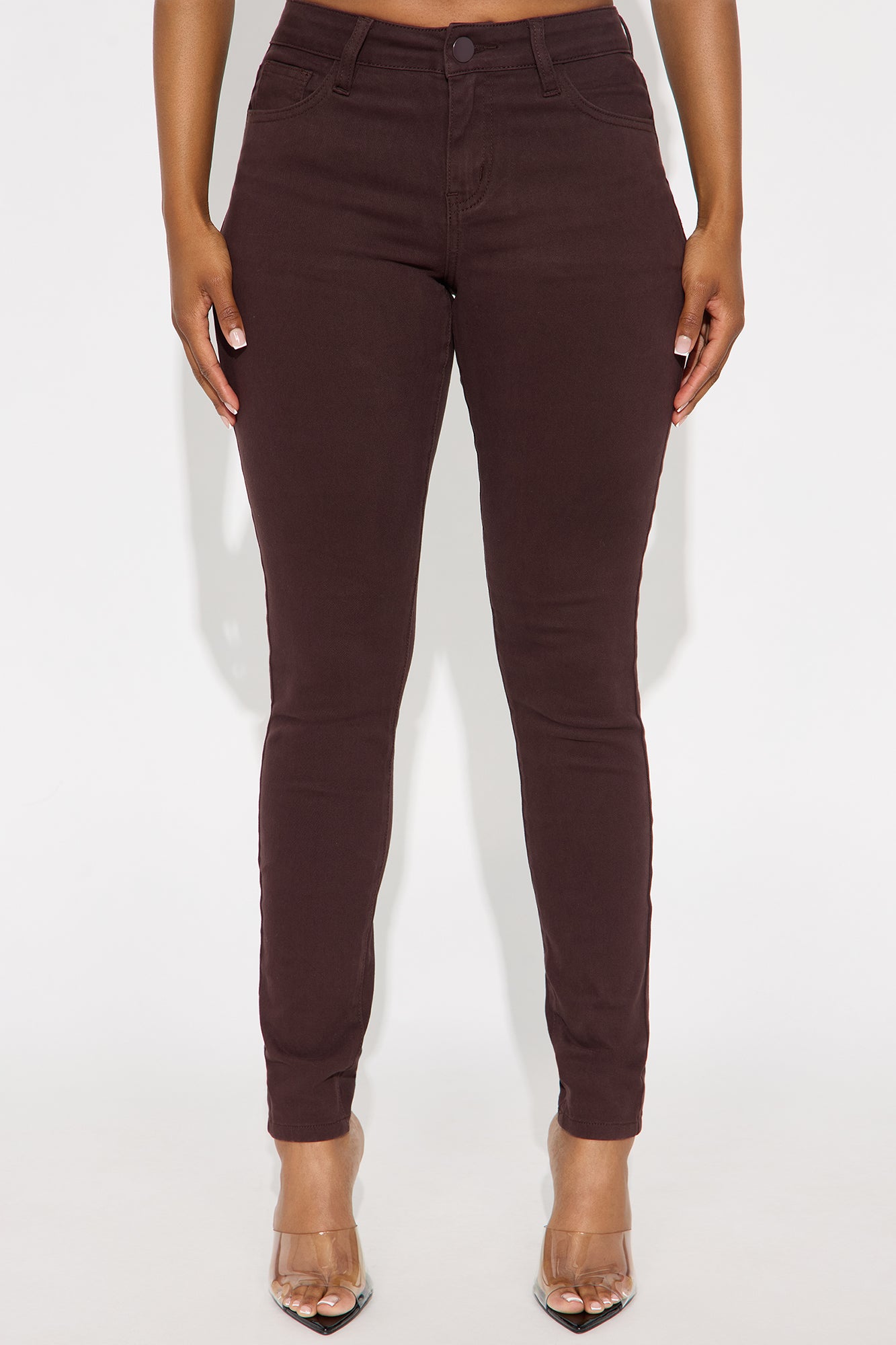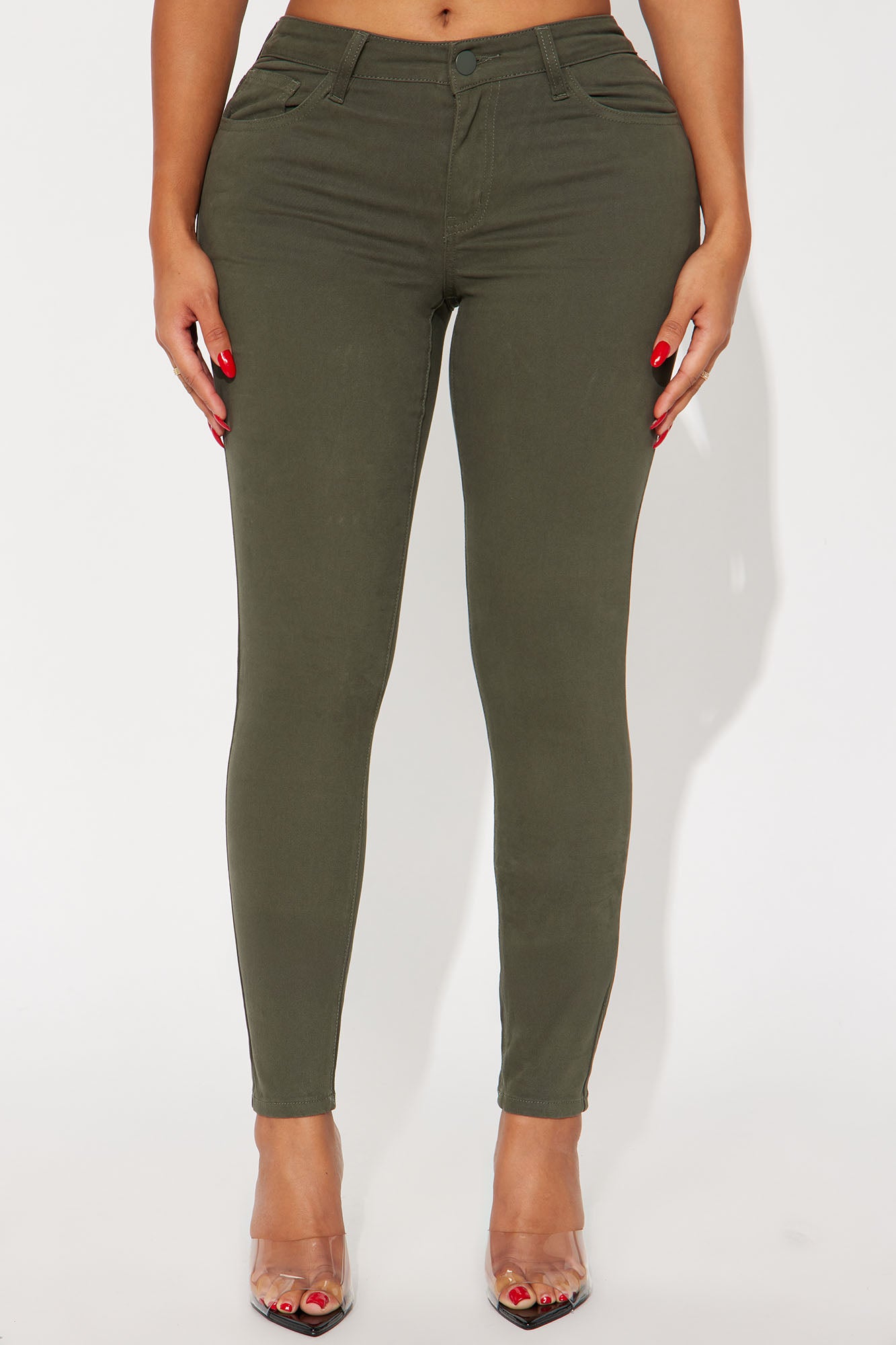 Available In Black, Burgundy, Coco, Khaki, Military Green, Navy, Red And Rust.Skinny Leg PantMid Rise5 Pocket DesignStretch MaterialDisclaimer: Due To The Specialized Wash Process, Each garment Is Unique98% Cotton 2% SpandexImported