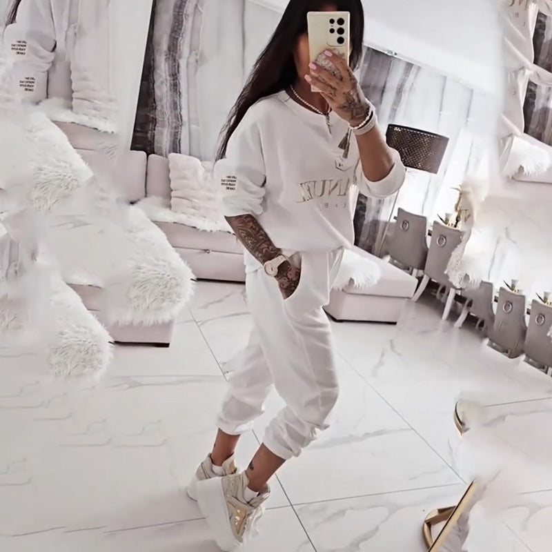 BOLD LETTER PRINT DESIGN - The standout letter prints add a touch of modern style and individuality to the set. These eye-catching details elevate the outfit, allowing you to express your unique fashion sense without overwhelming the overall look.