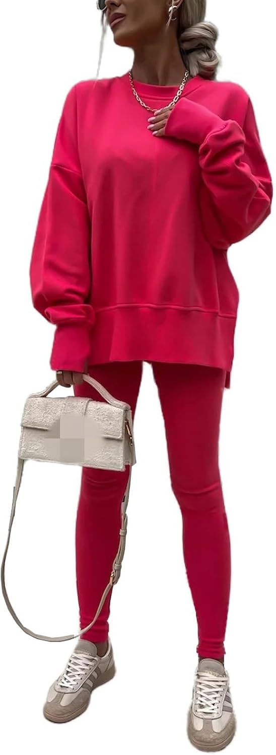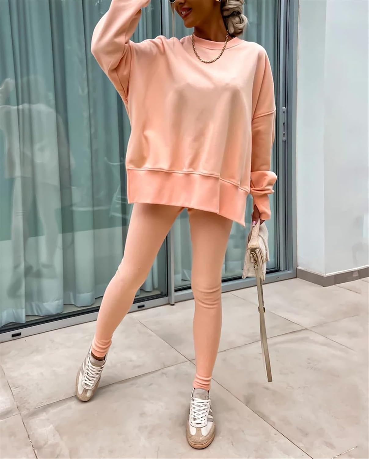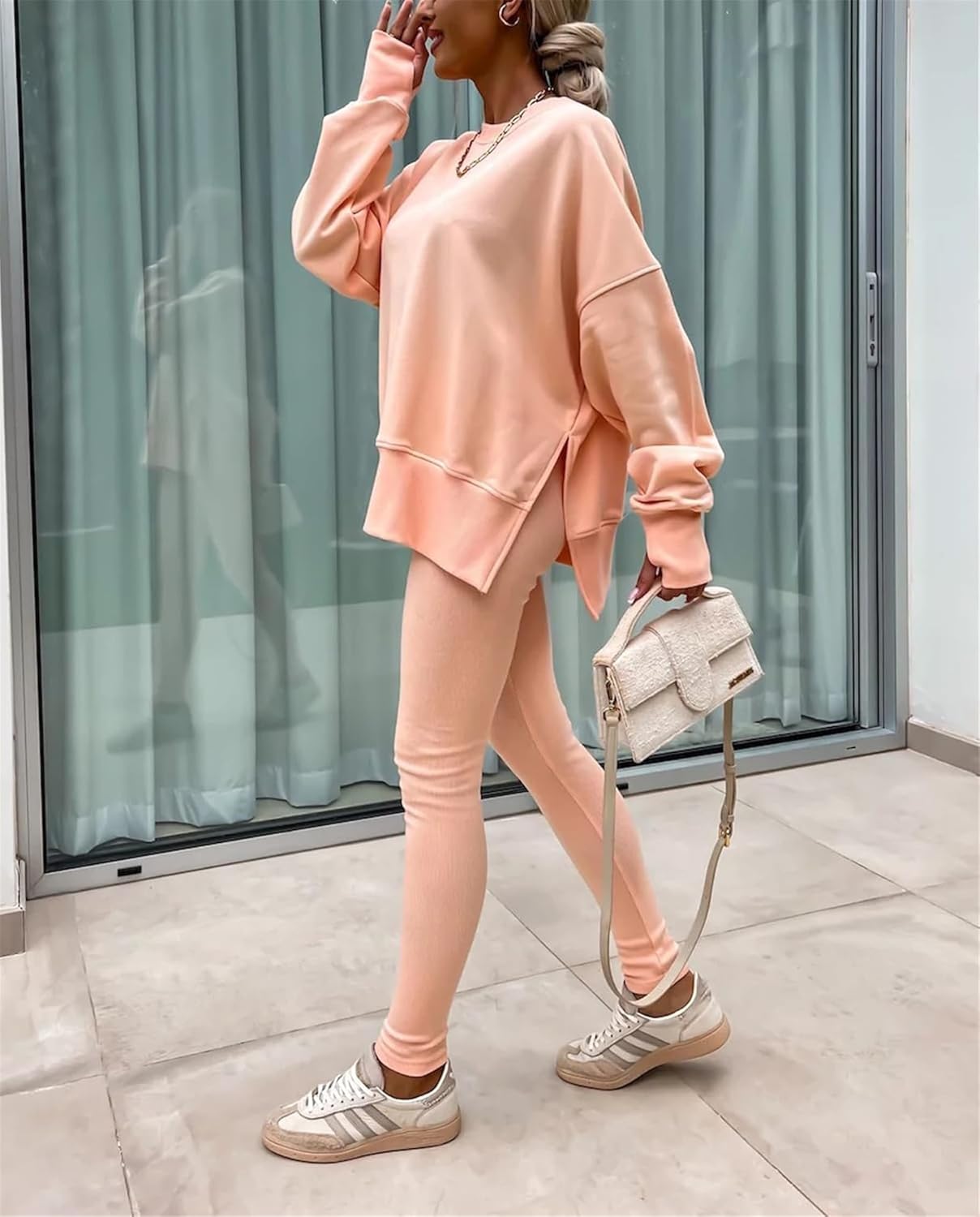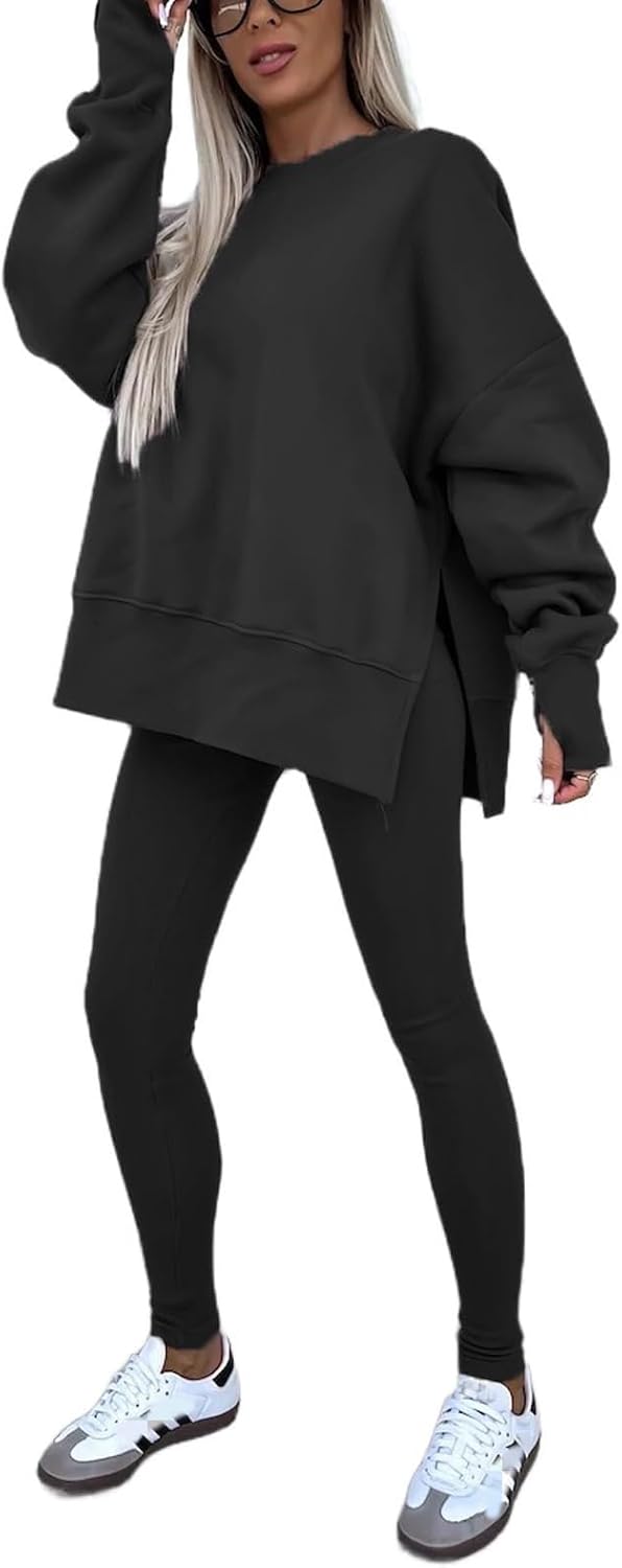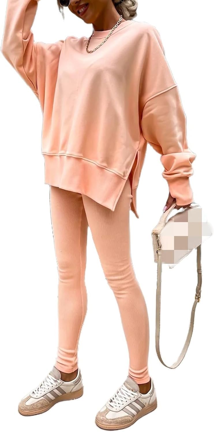 • Sweatshirt and Leggings Set for Womens 2 Piece Outfits, Outfits Side Split Oversized Sweatshirt set