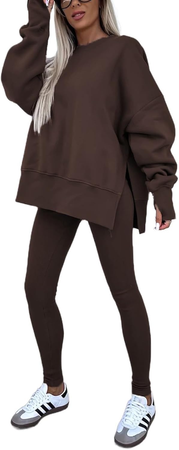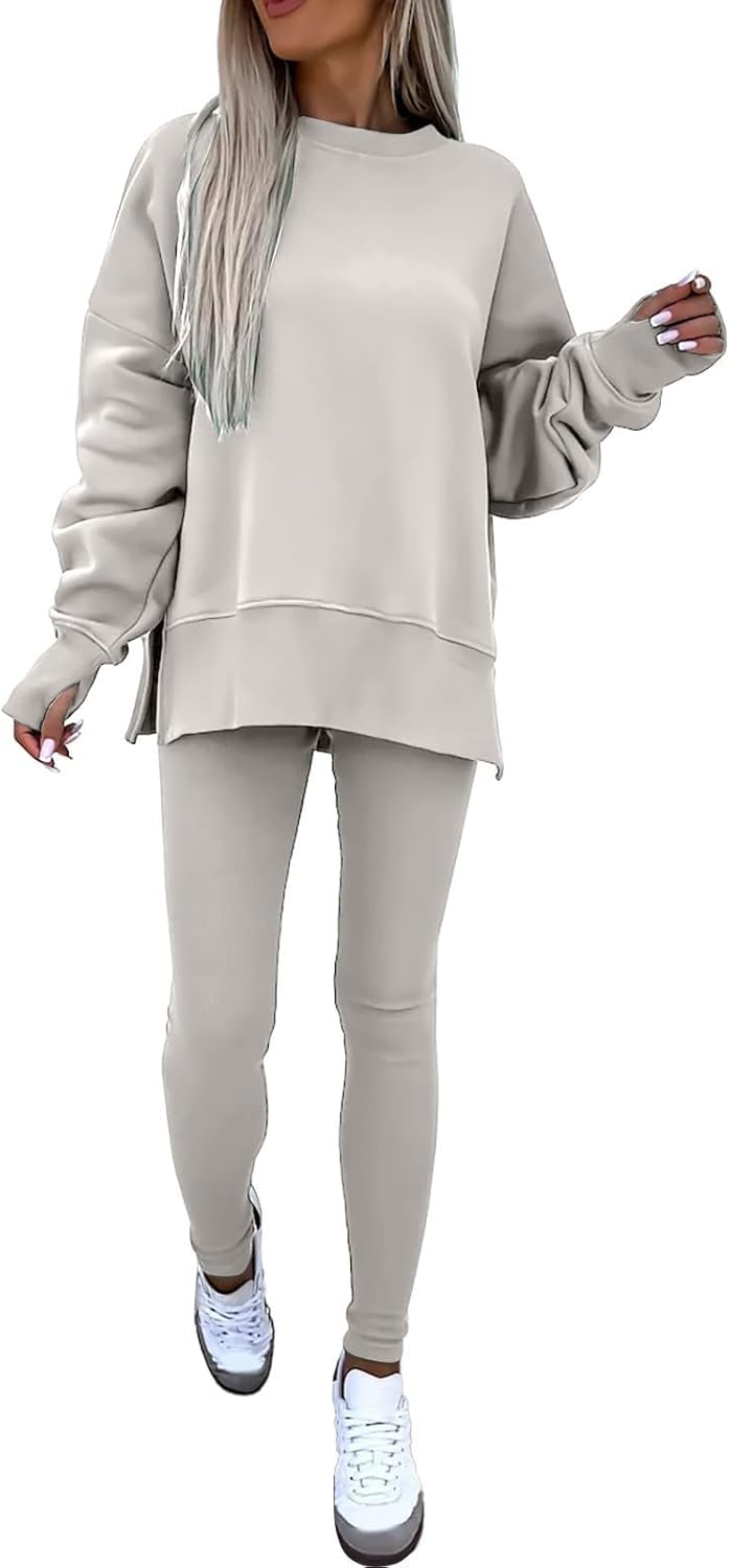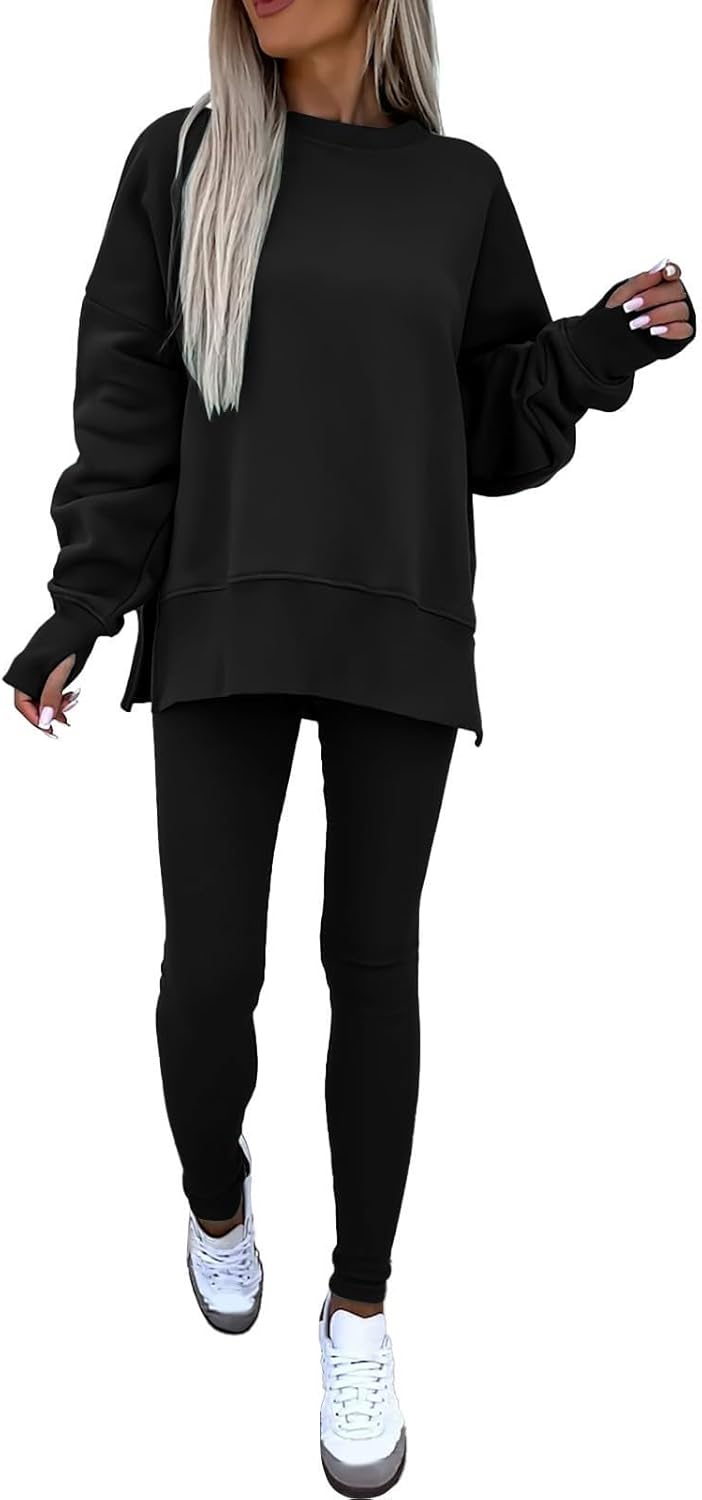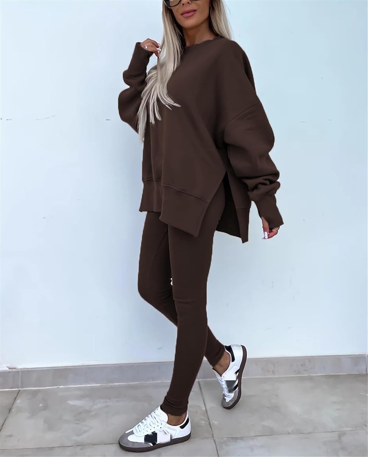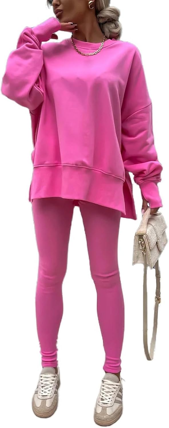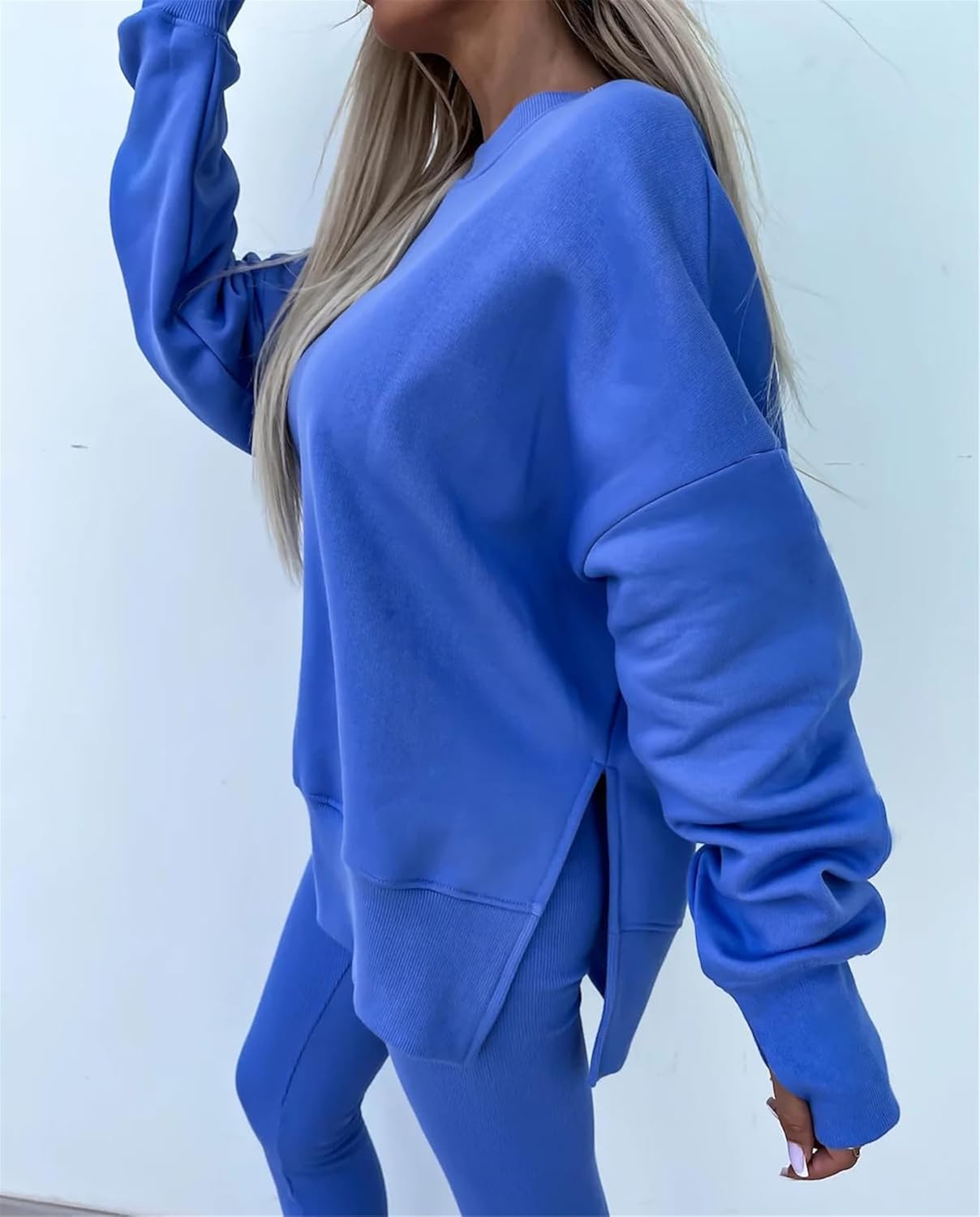 • Sweatshirt and Leggings Set for Womens 2 Piece Outfits, Outfits Side Split Oversized Sweatshirt set