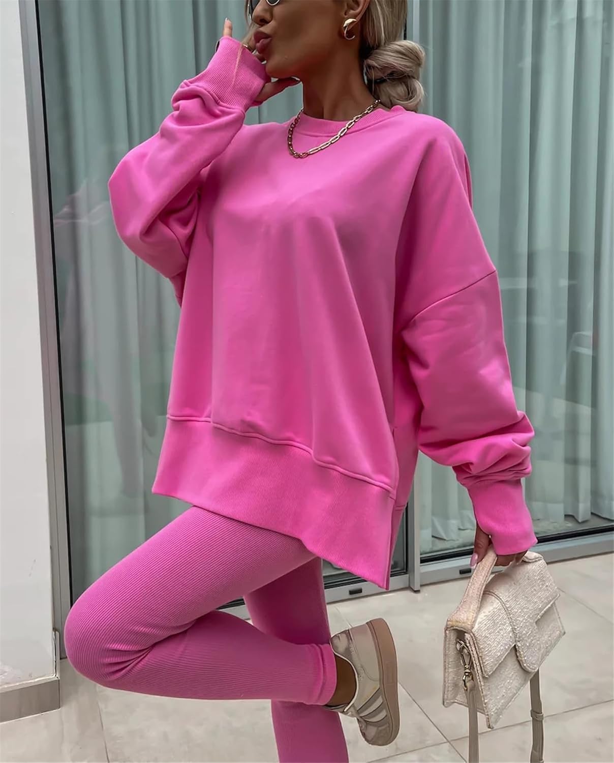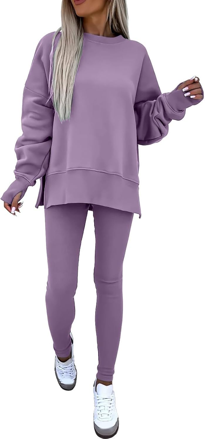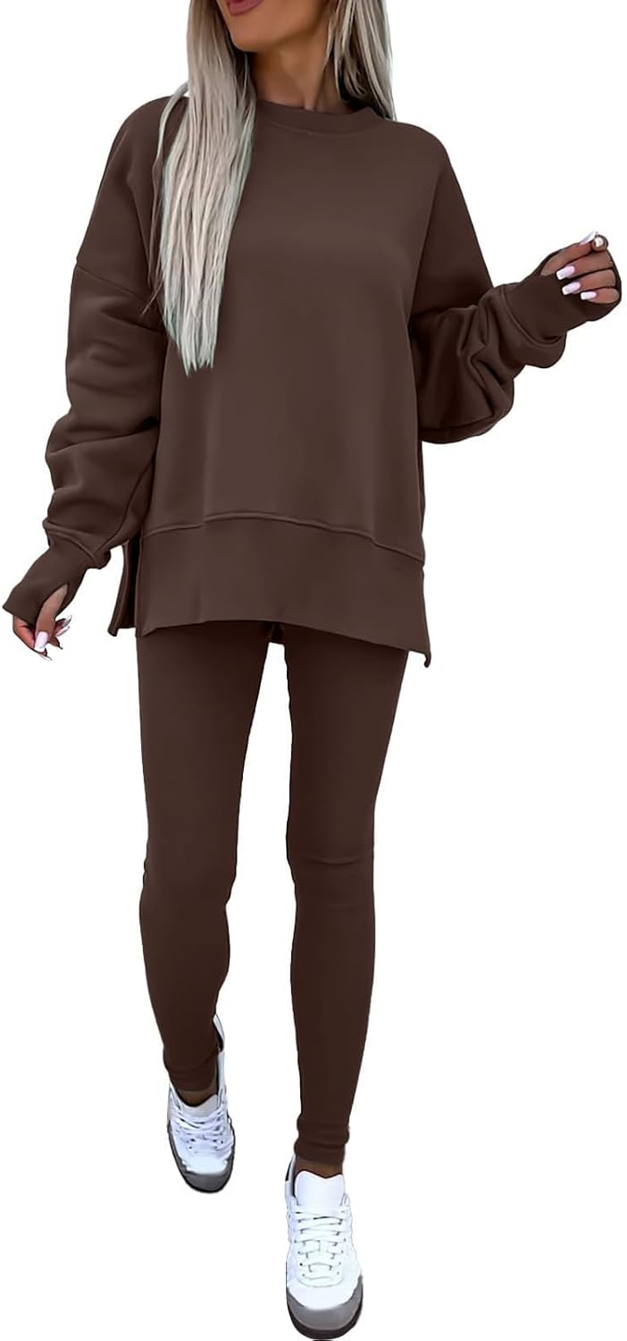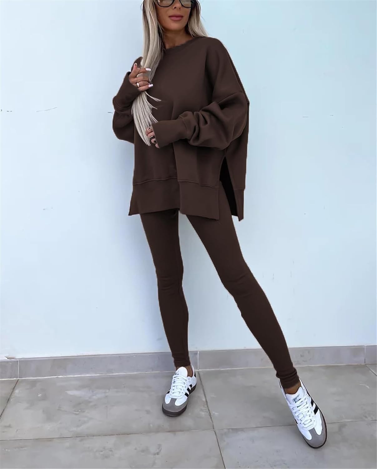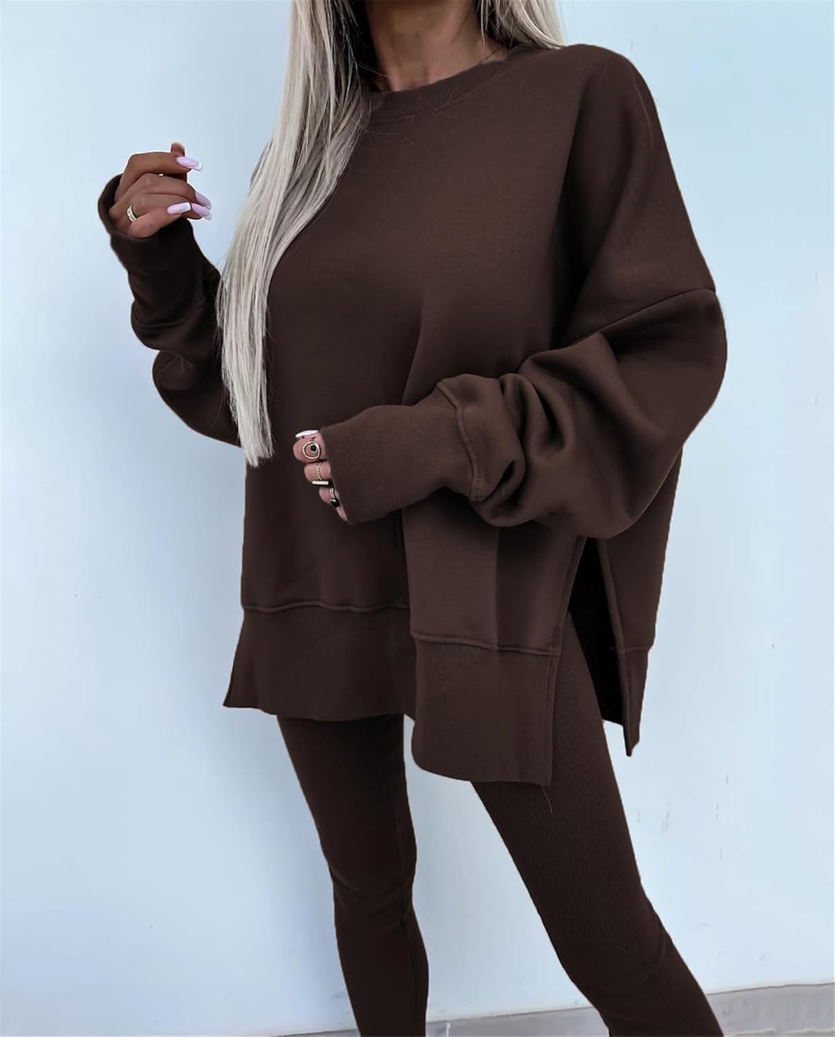 • Sweatshirt and Leggings Set for Womens 2 Piece Outfits, Outfits Side Split Oversized Sweatshirt set